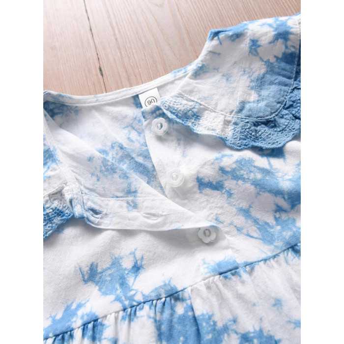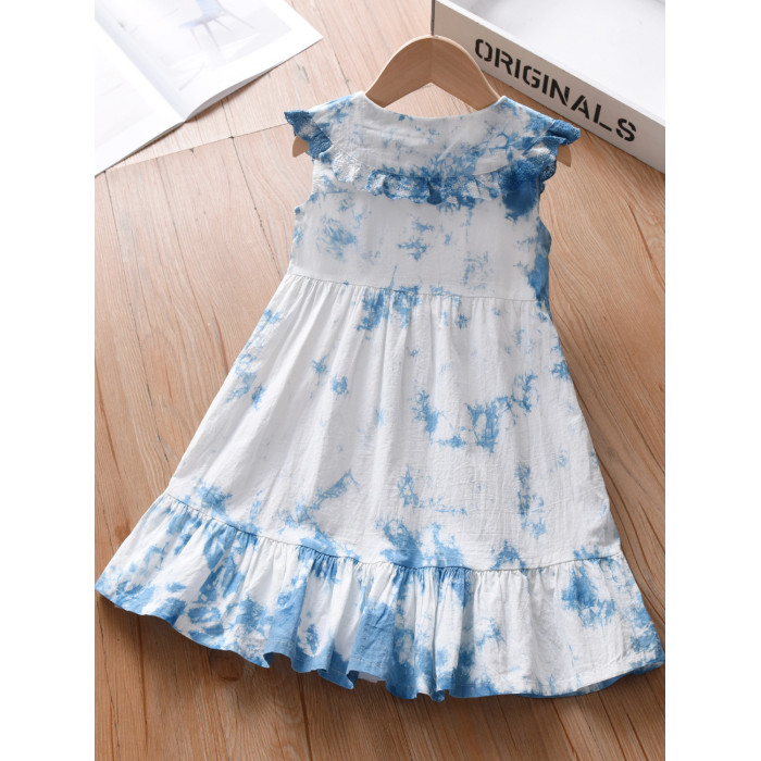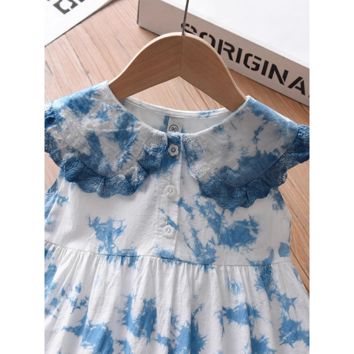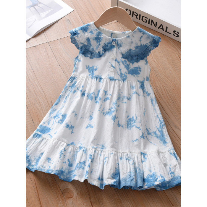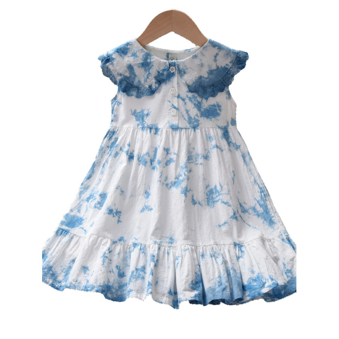 雲南古法紥染女童無袖背心裙新款夏季洋氣娃娃領連衣裙藍染襯衫