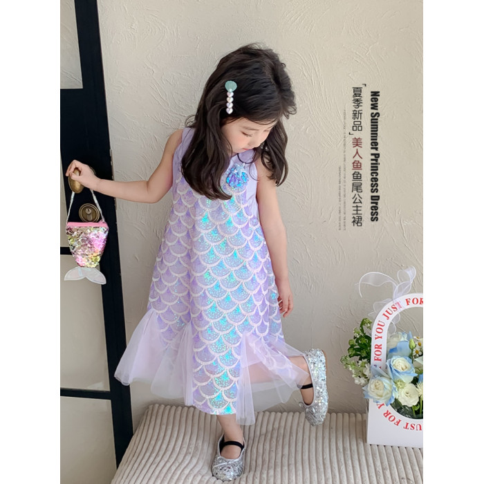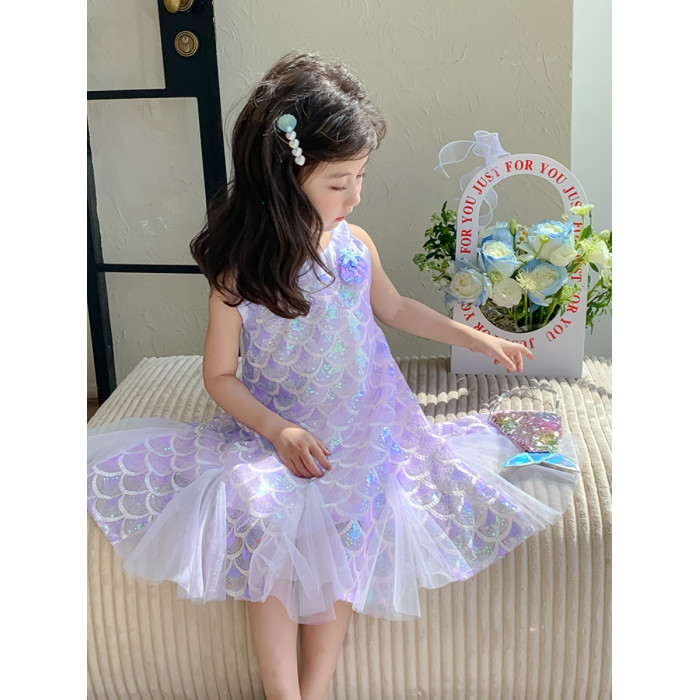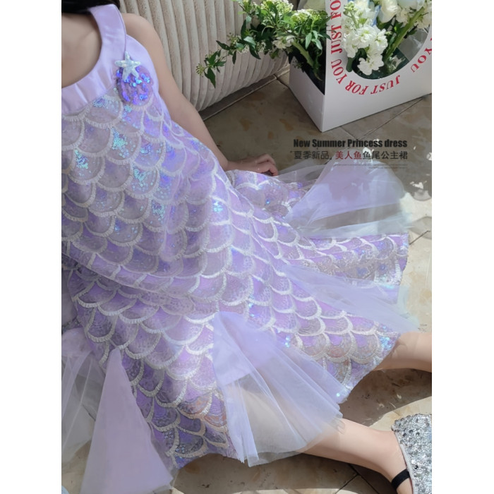 英國Next Svip兒童美人魚公主裙女童連衣裙夏季2025新款吊帶裙夏