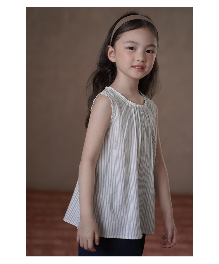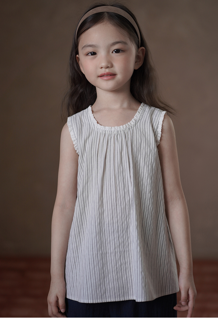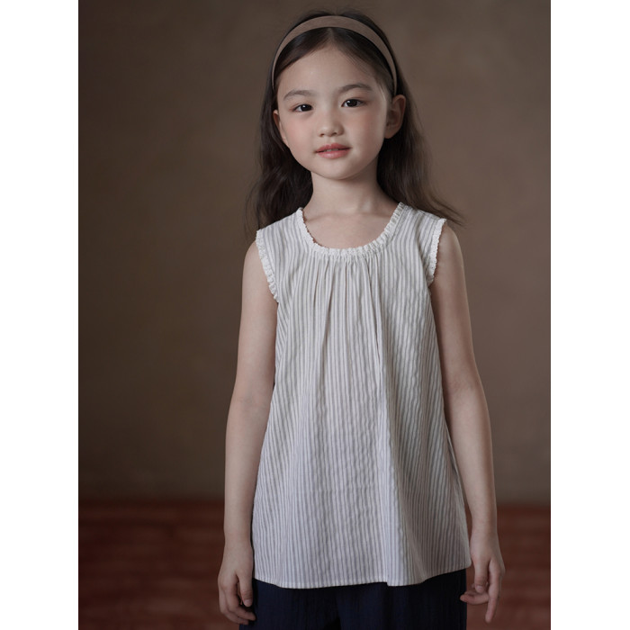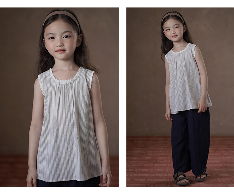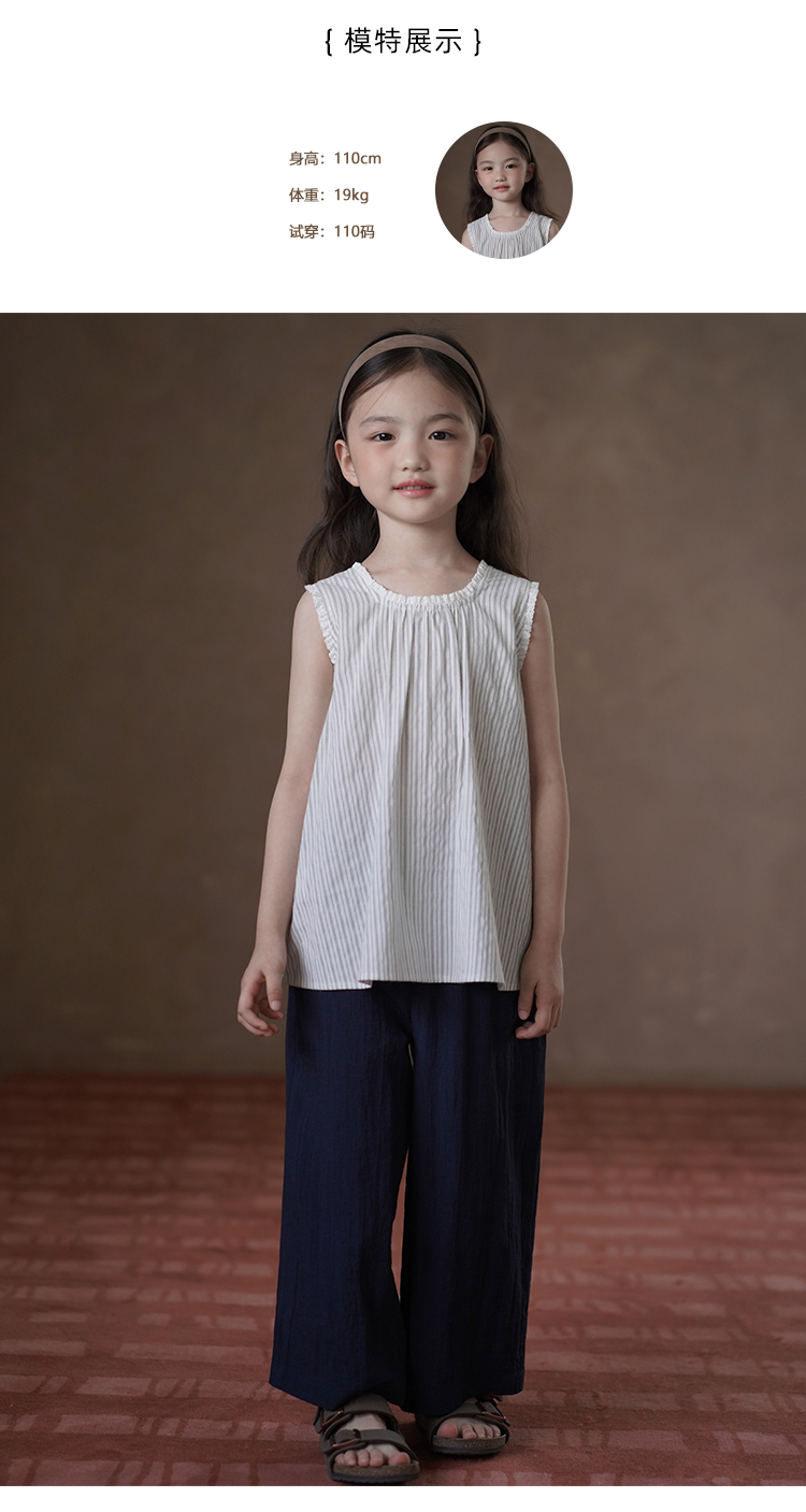 哈齒童裝夏季兒童韓版條紋背心女童無袖襯衫女孩打底衫親膚全棉