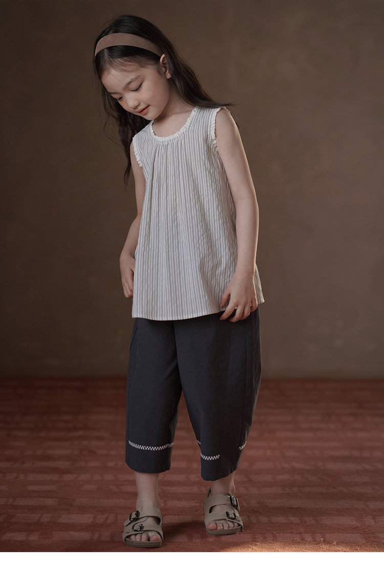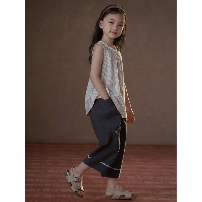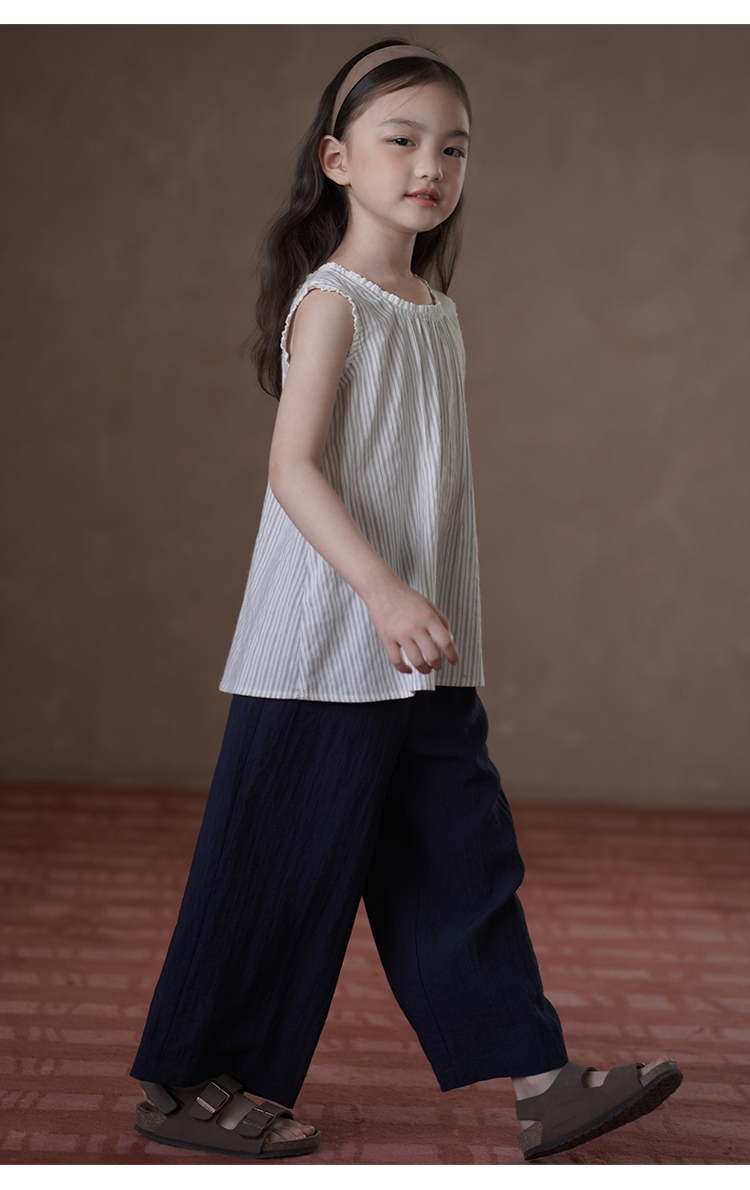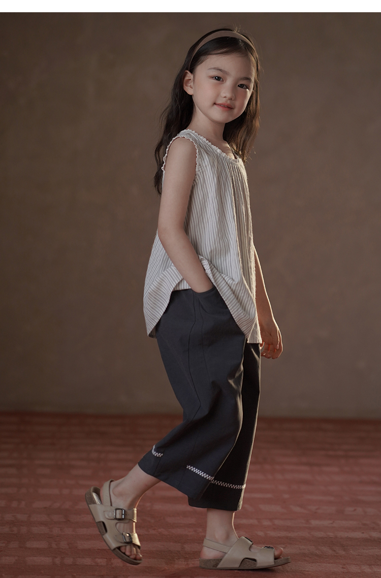 哈齒童裝夏季兒童韓版條紋背心女童無袖襯衫女孩打底衫親膚全棉