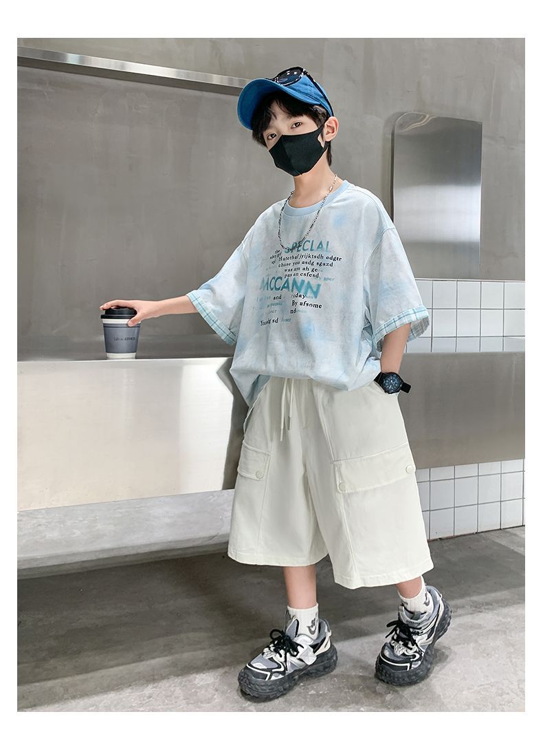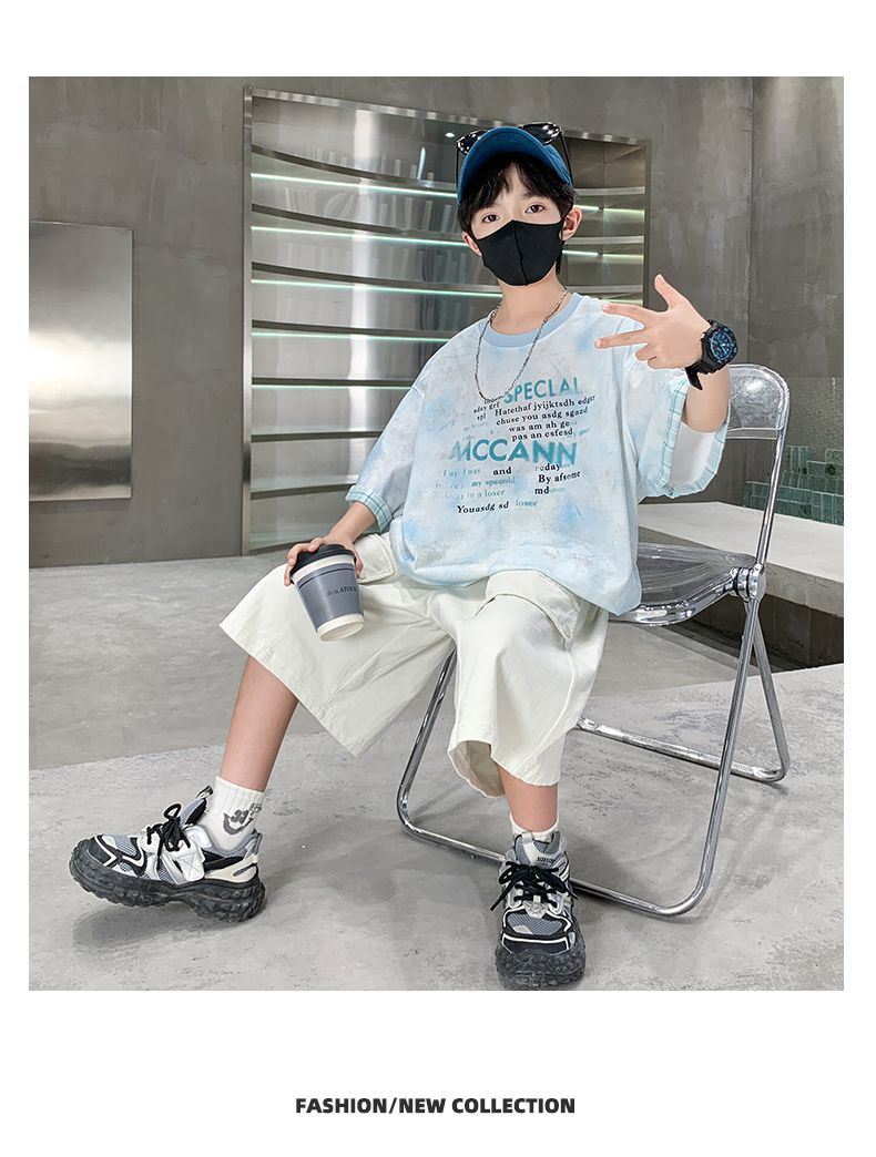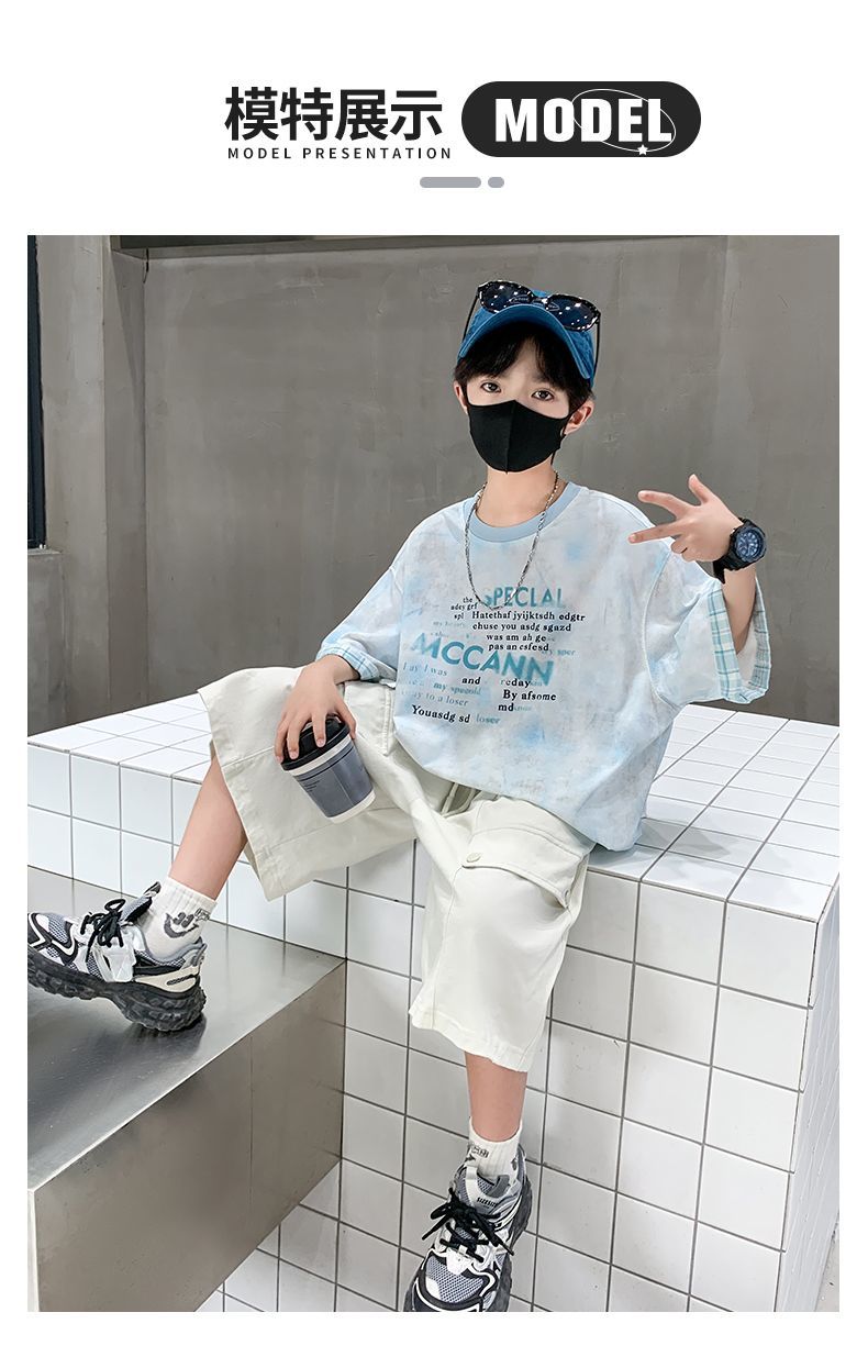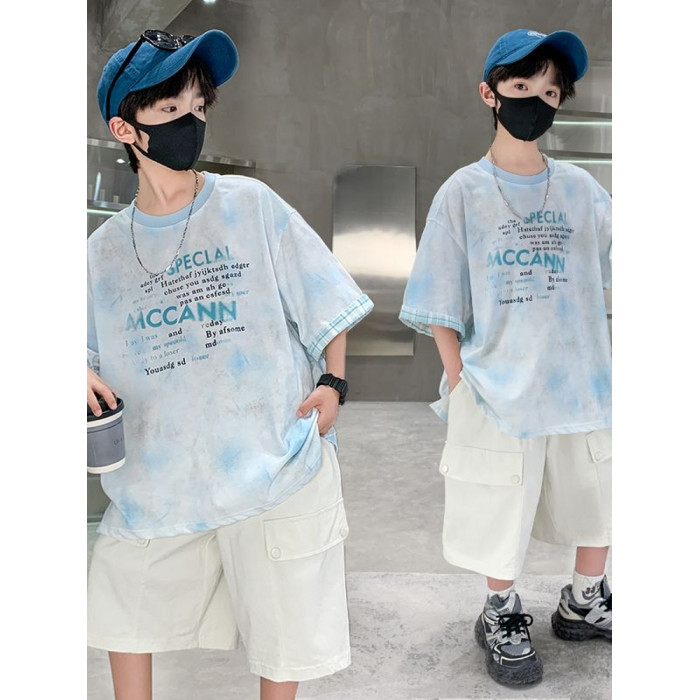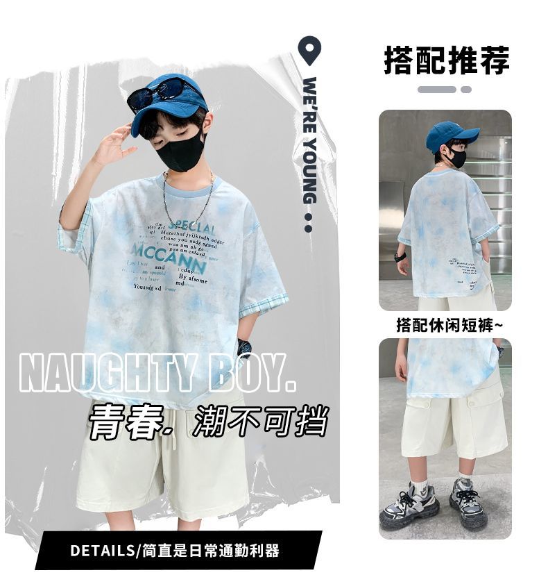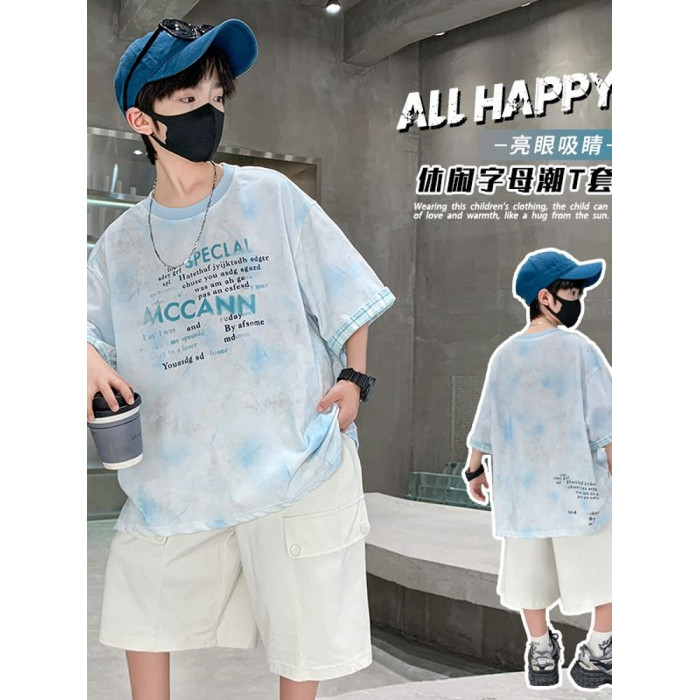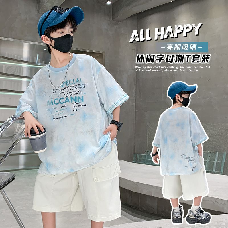 安哼安哼男童短袖夏款2025新款兒童T恤中大童休閒帥氣男孩上衣字