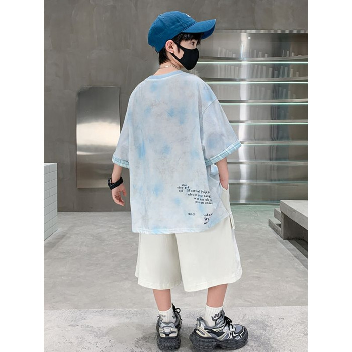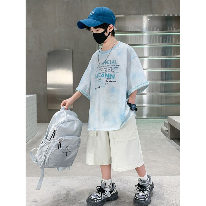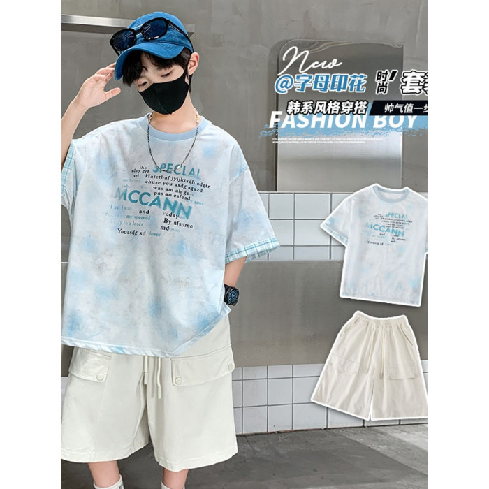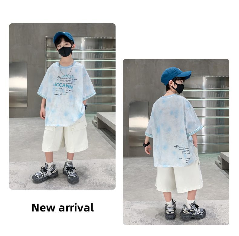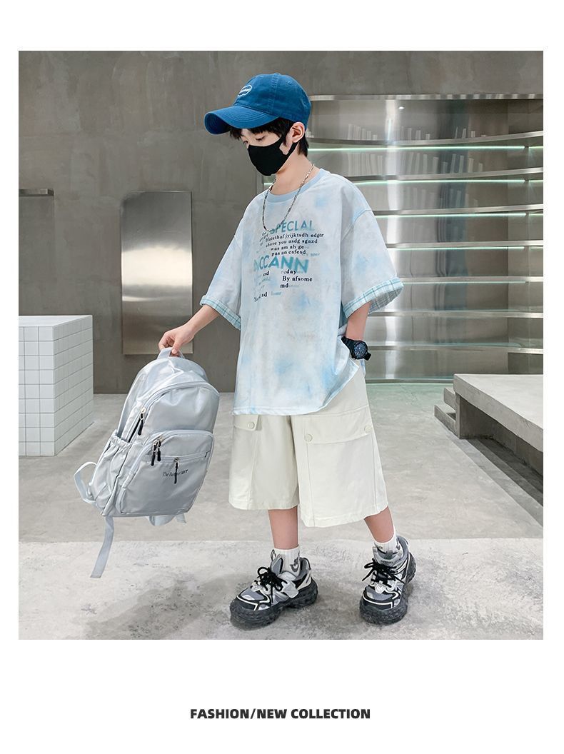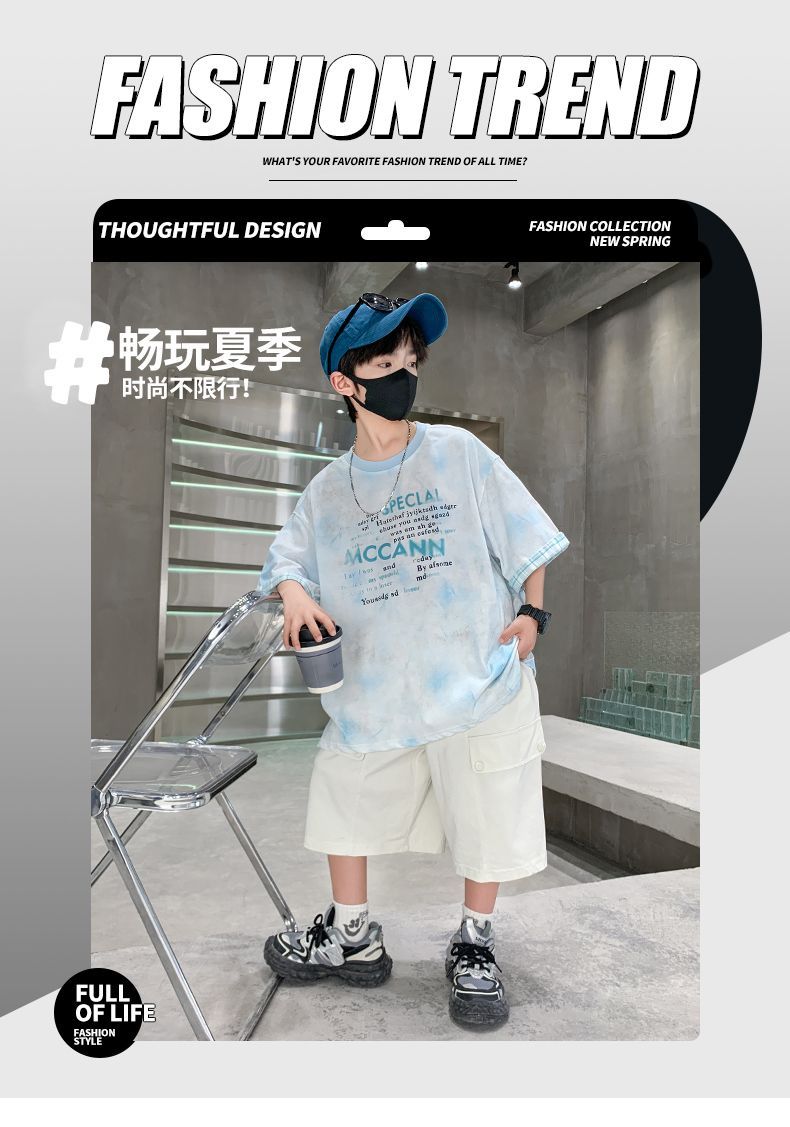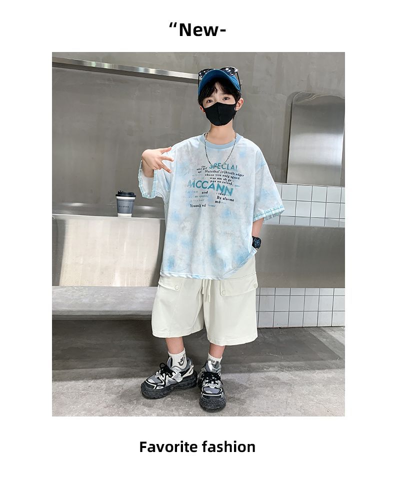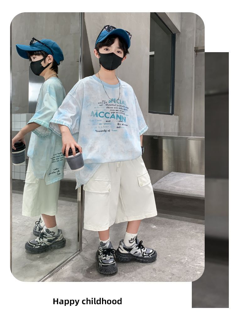 安哼安哼男童短袖夏款2025新款兒童T恤中大童休閒帥氣男孩上衣字