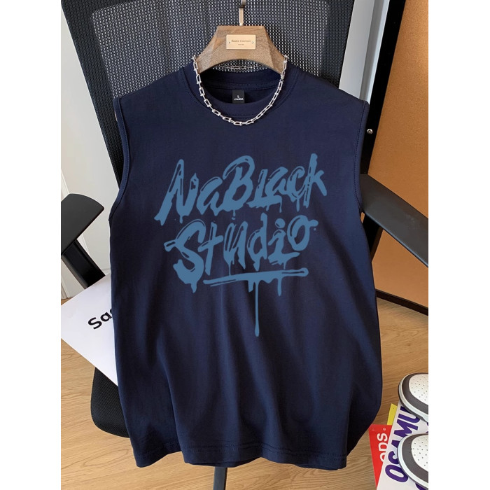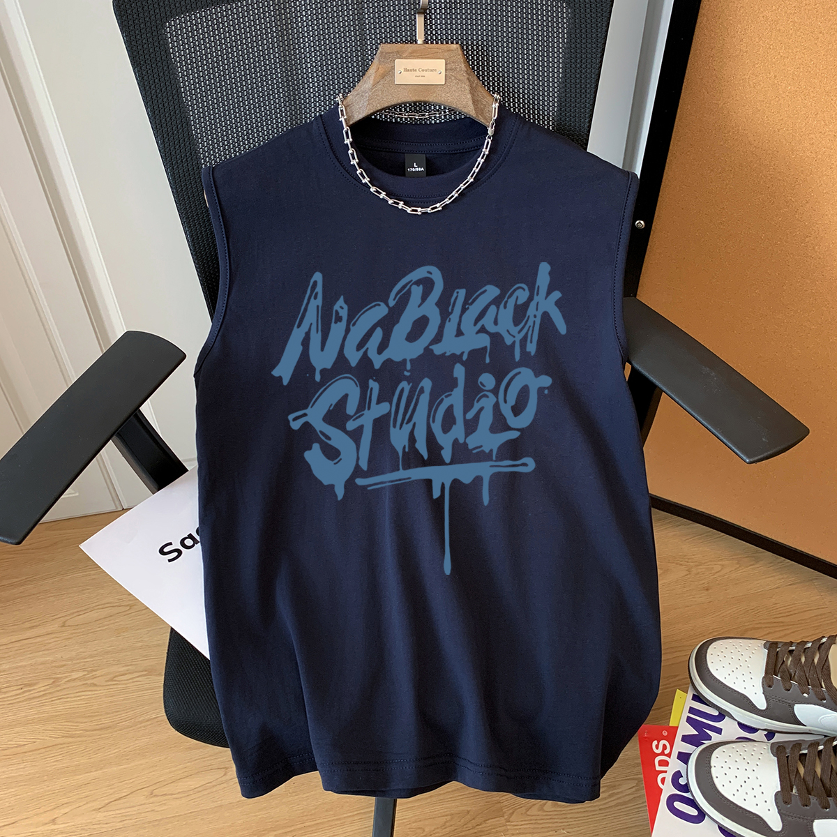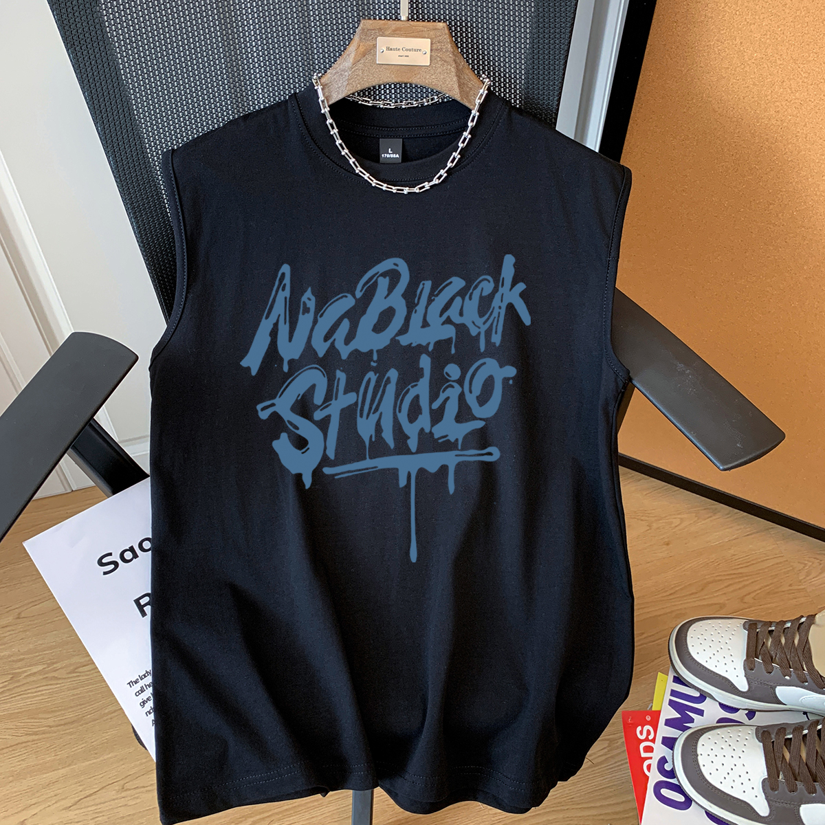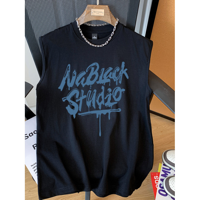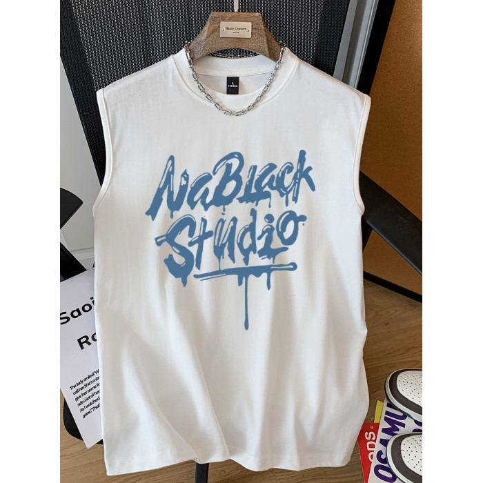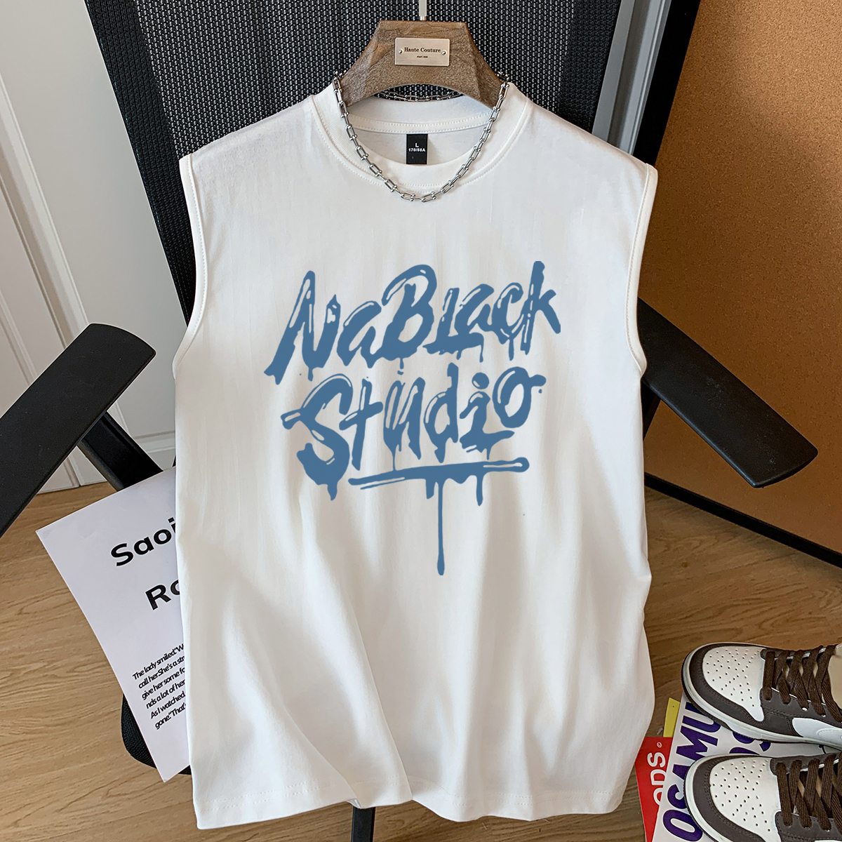 JIAF男生涼感雙紗無袖背心T恤痞帥百搭潮牌美式純棉寬松字母上衣