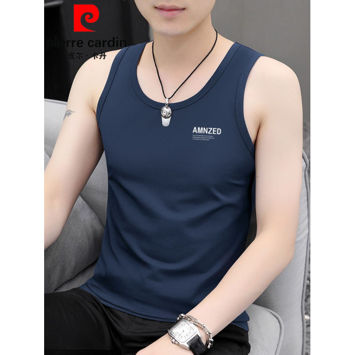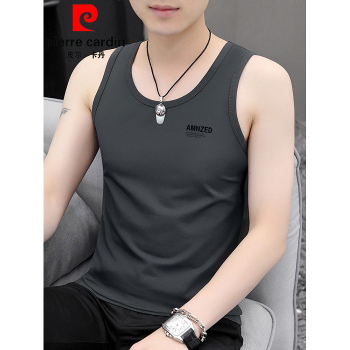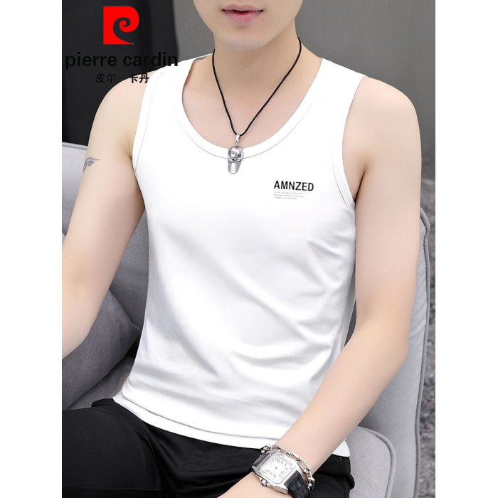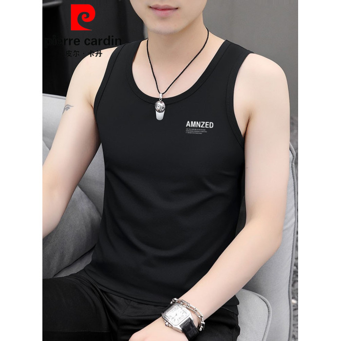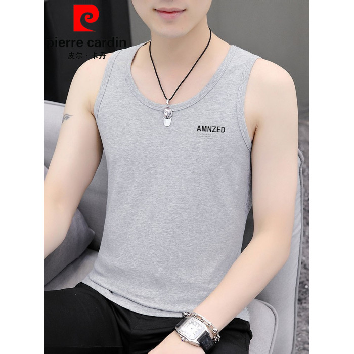 皮爾卡丹純棉圓領男士短袖運動背心2025夏季新款休閒純色無袖坎肩