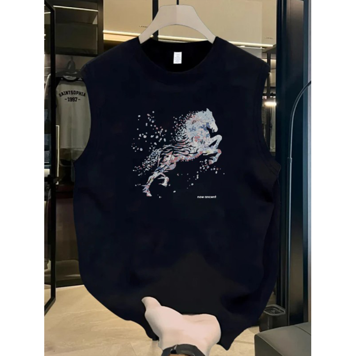香港CLG潮牌彩繪飛馬背心美式夏痞帥炸街T恤寬松純棉圓領汗衫坎肩