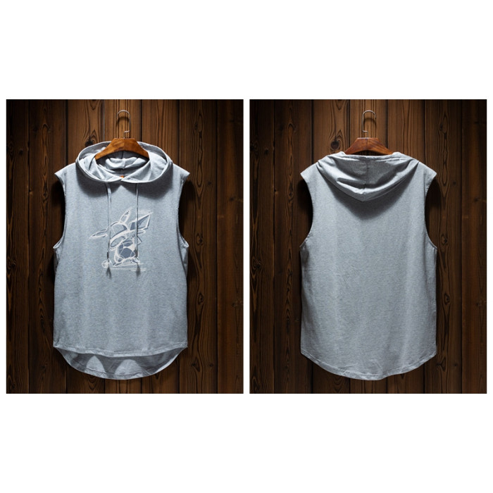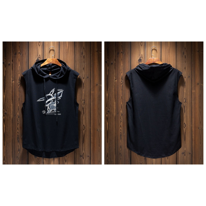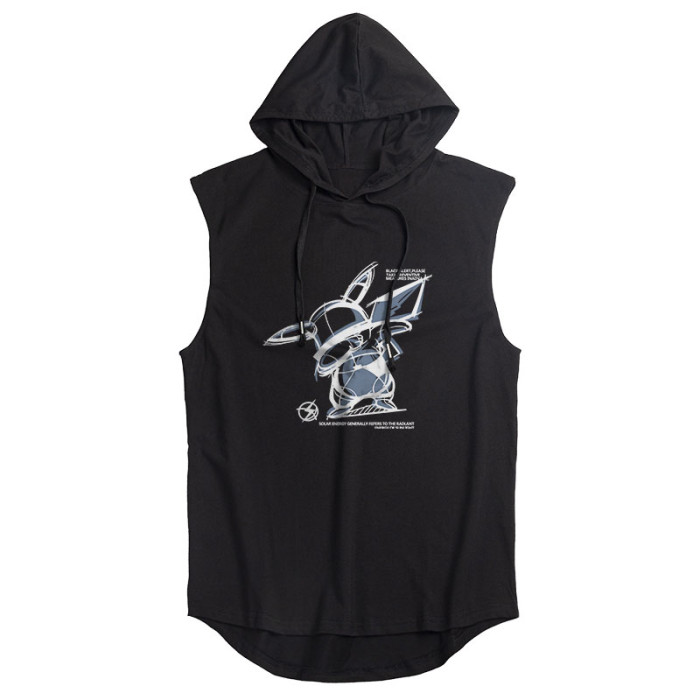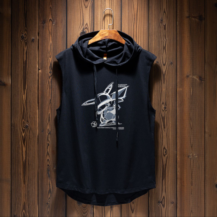 夏季潮流連帽背心拳擊運動訓練衣服寬松上衣搏擊男士無袖坎肩健身