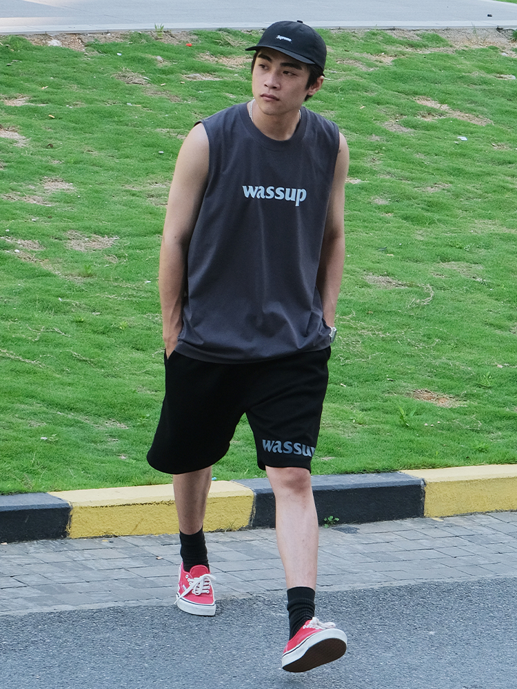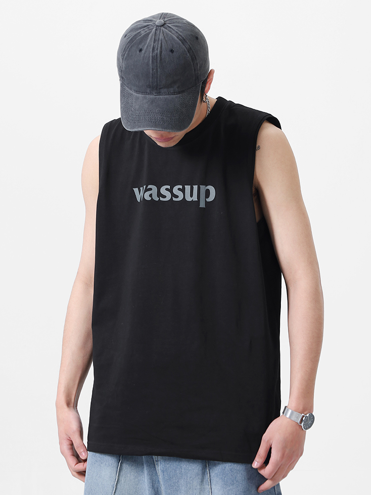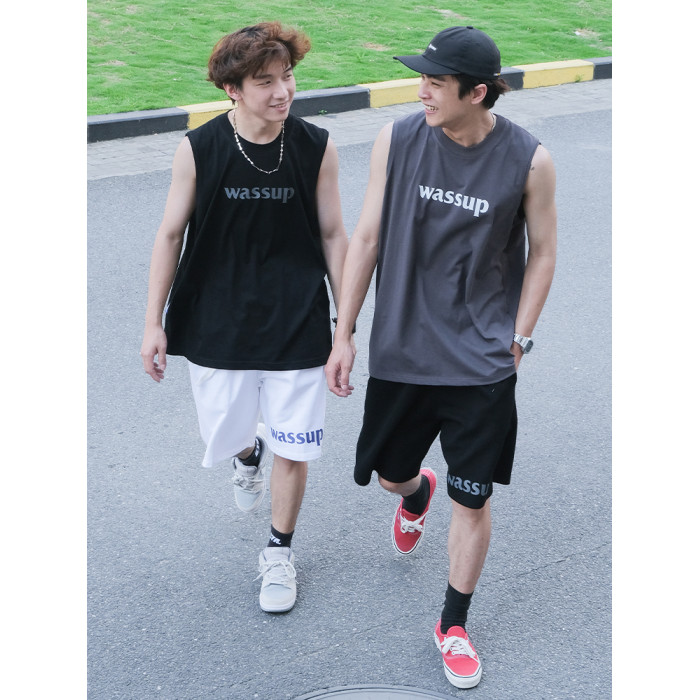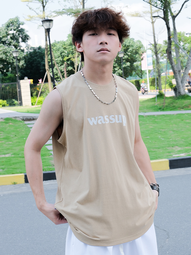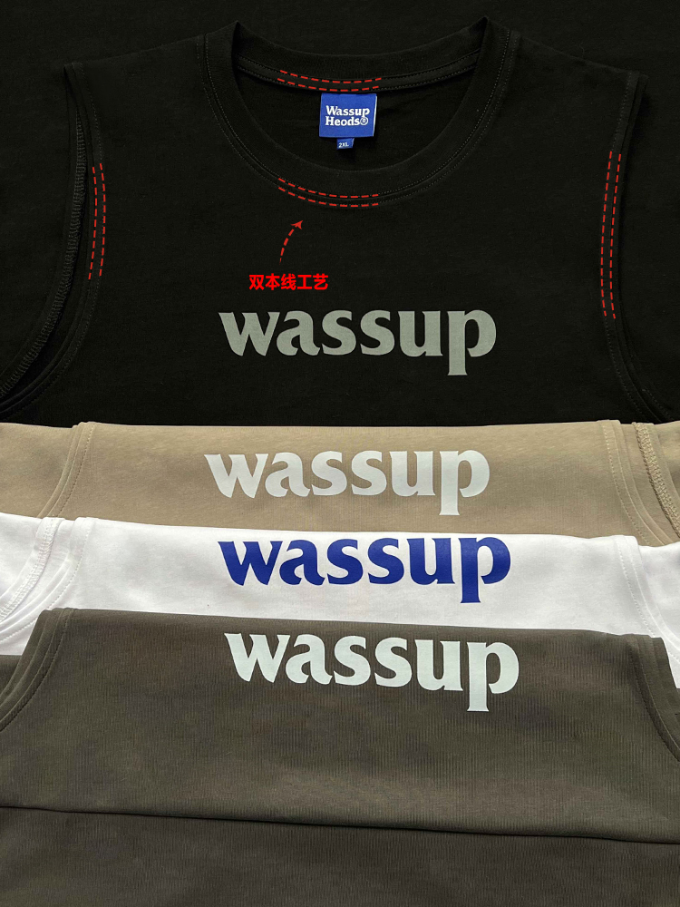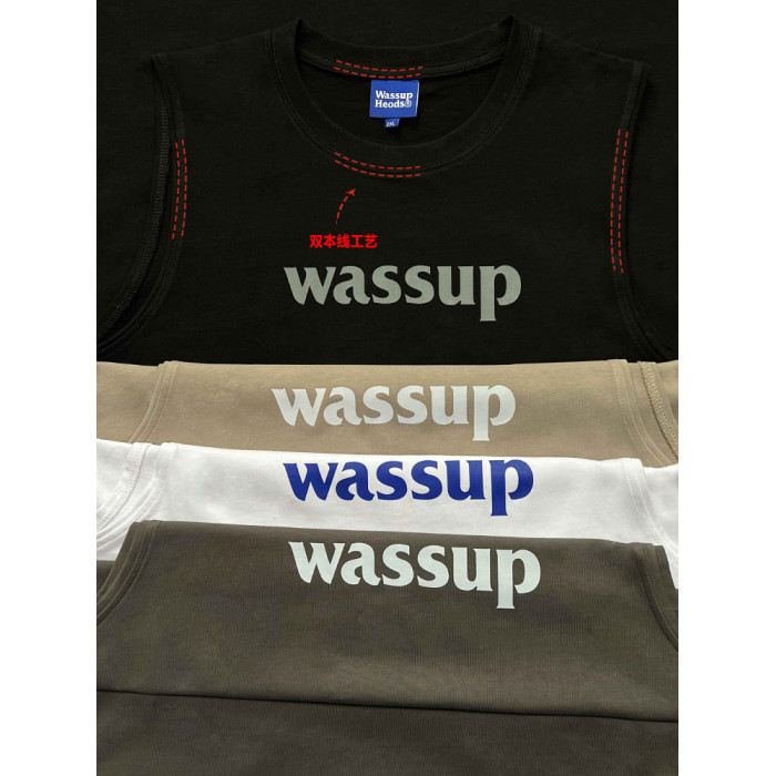WASSUP潮牌2025新款純棉字母上衣運動健身籃球無袖背心男女款夏季