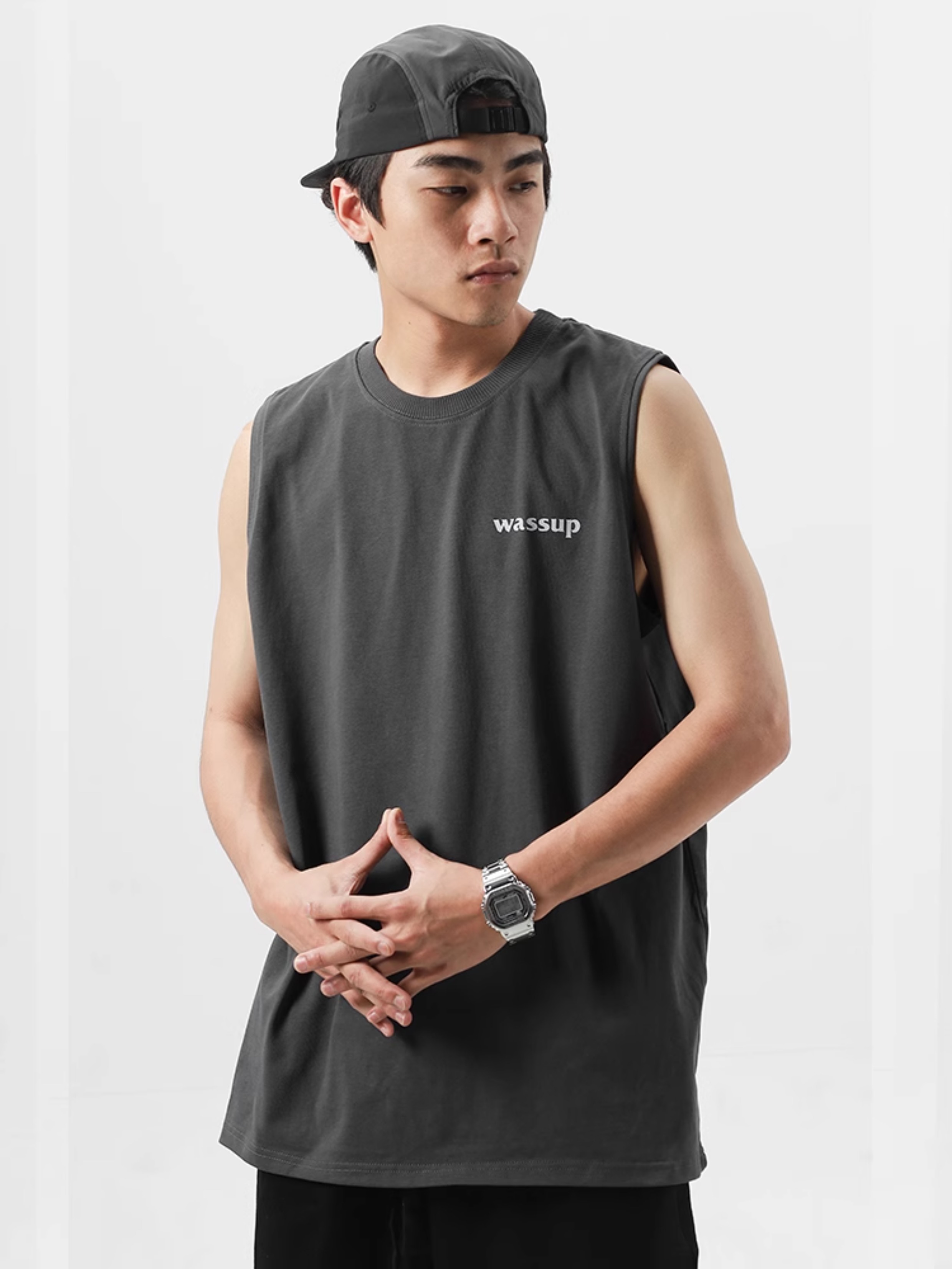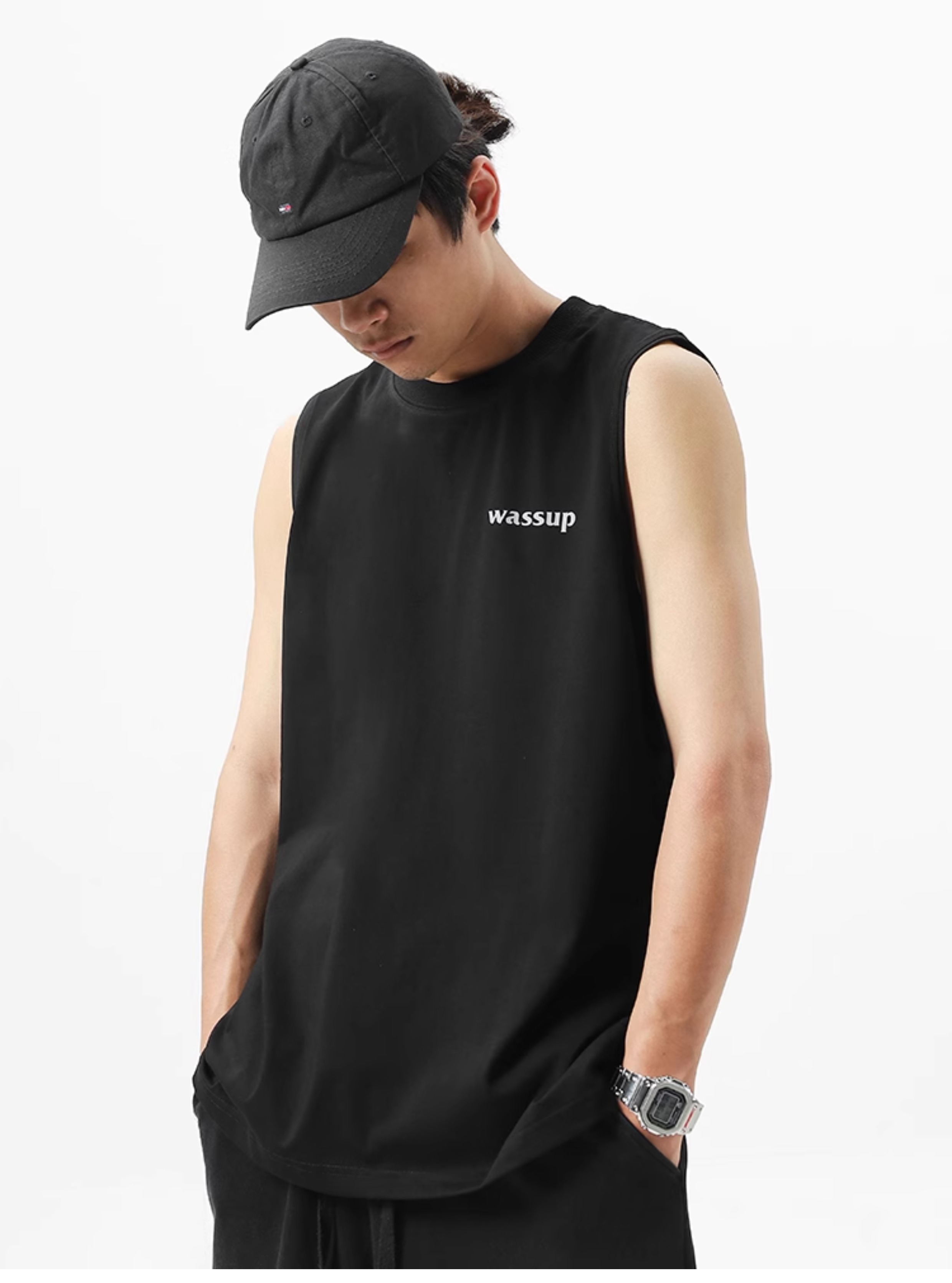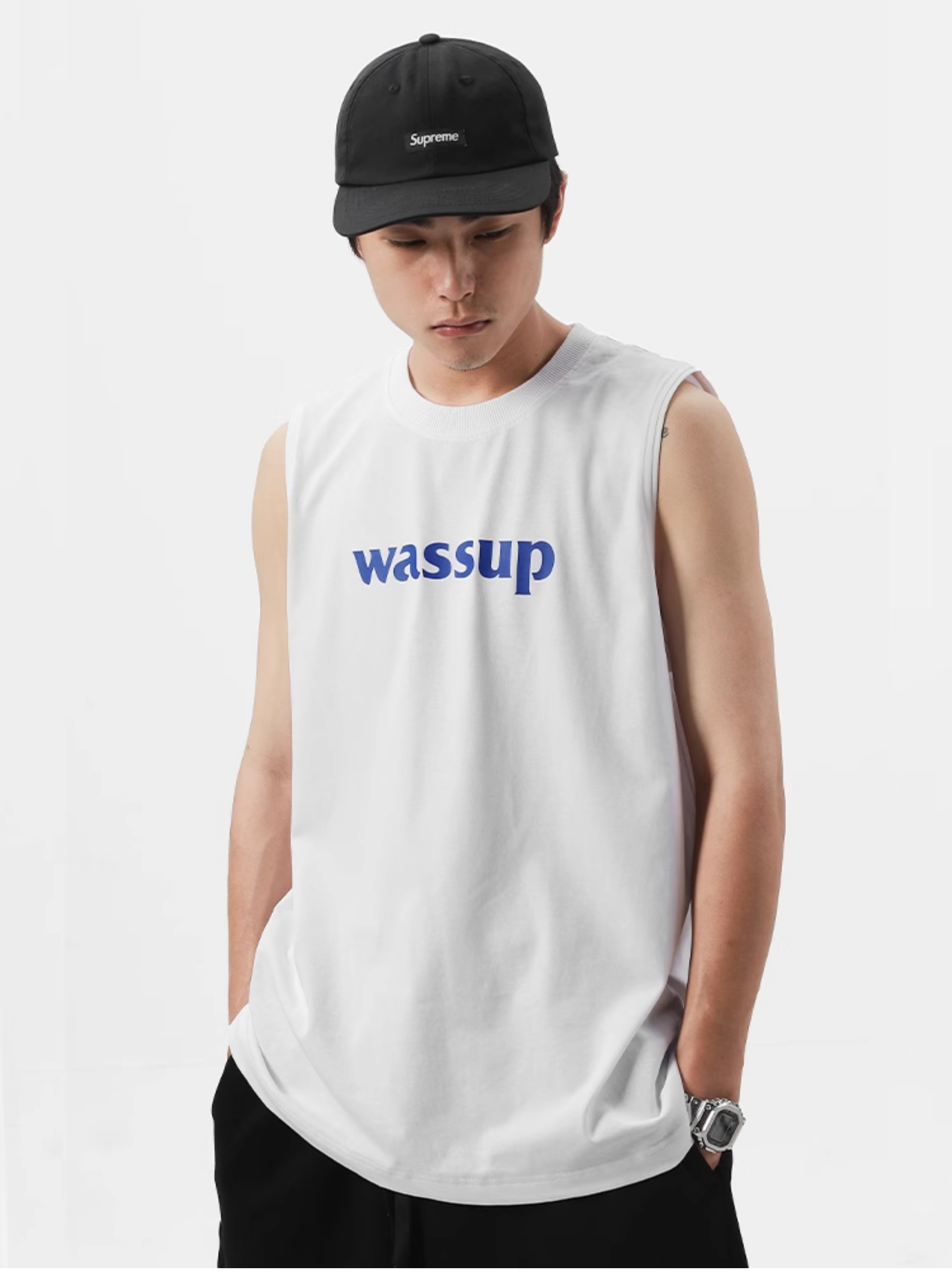 WASSUP潮牌2025新款純棉字母上衣運動健身籃球無袖背心男女款夏季