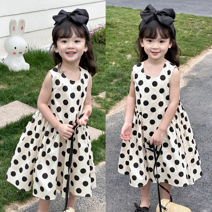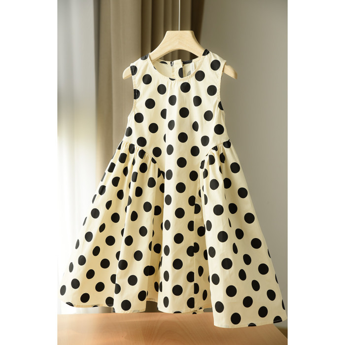 40支高支棉 兒童純棉背心裙 女童圓領波點無袖連衣裙 中大童夏款