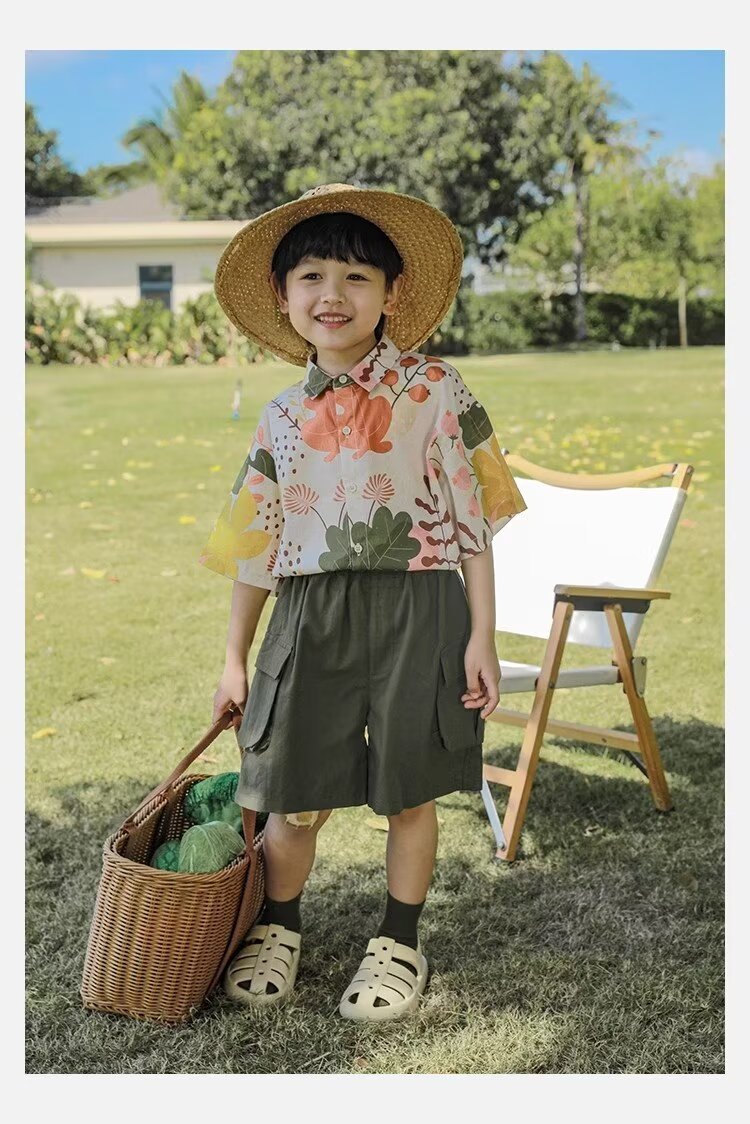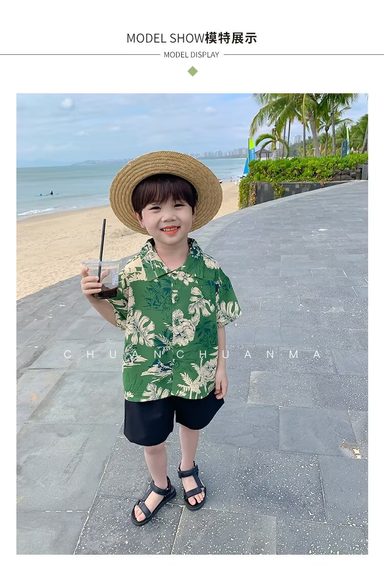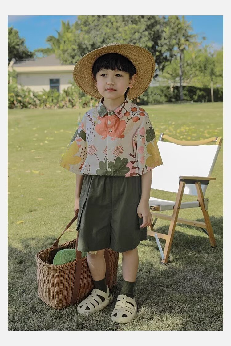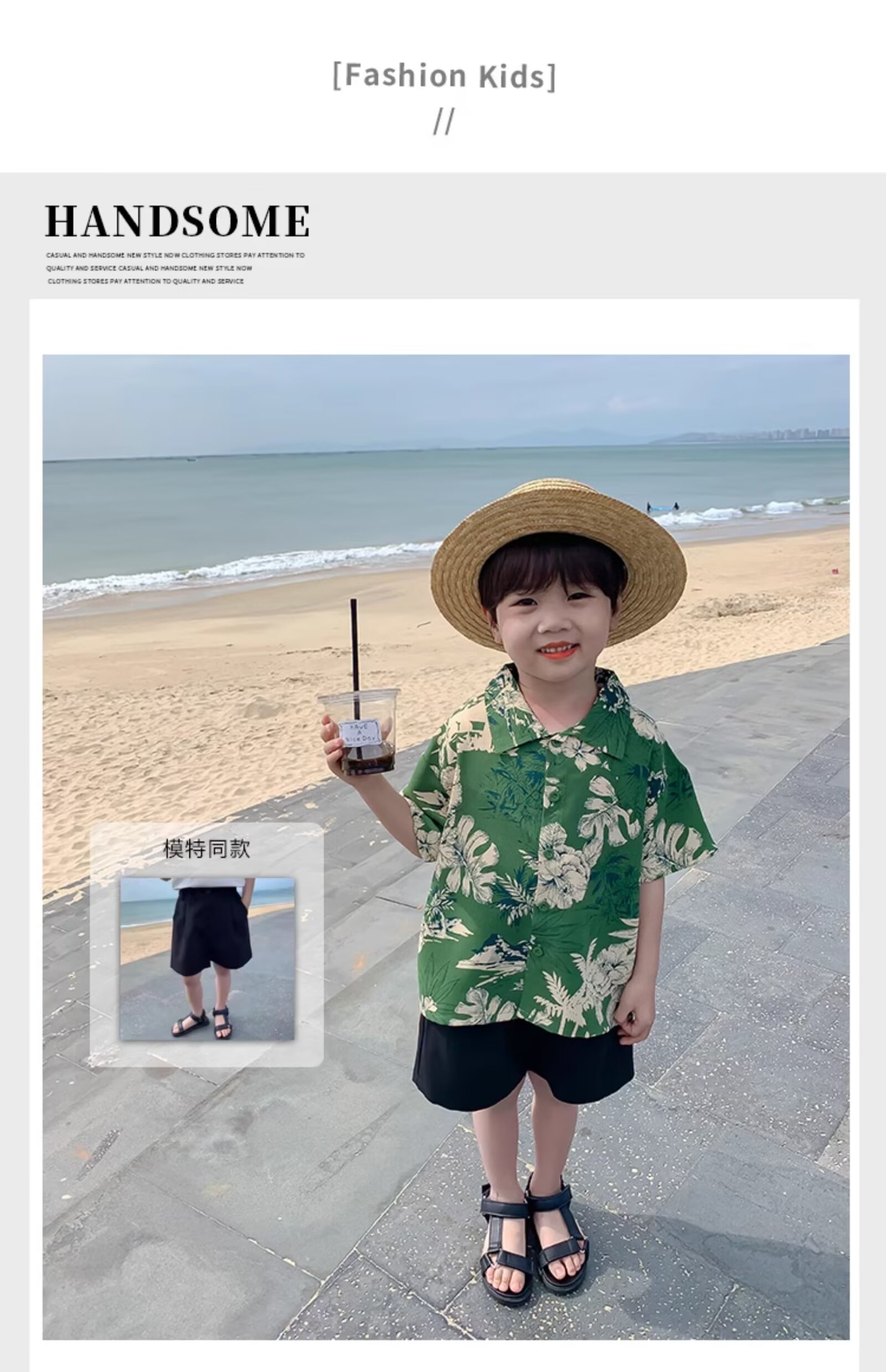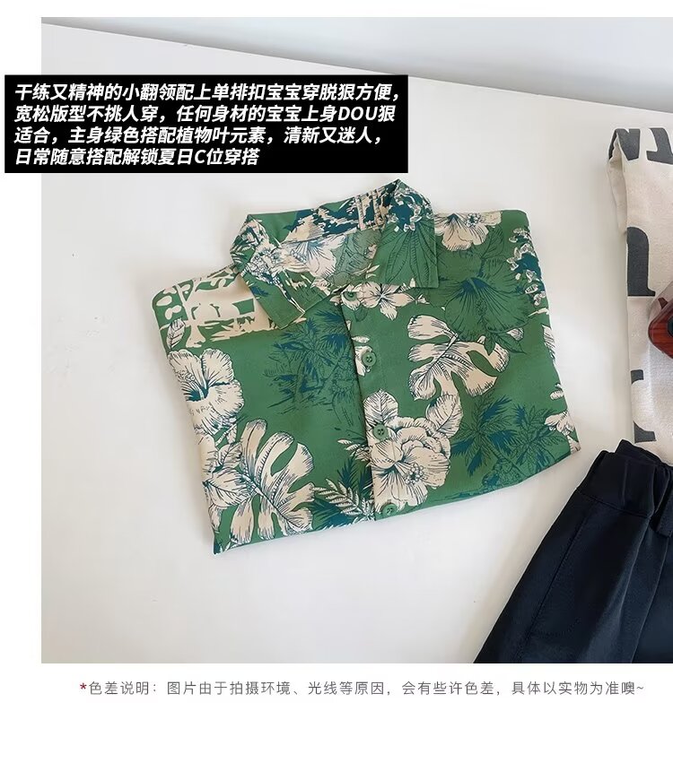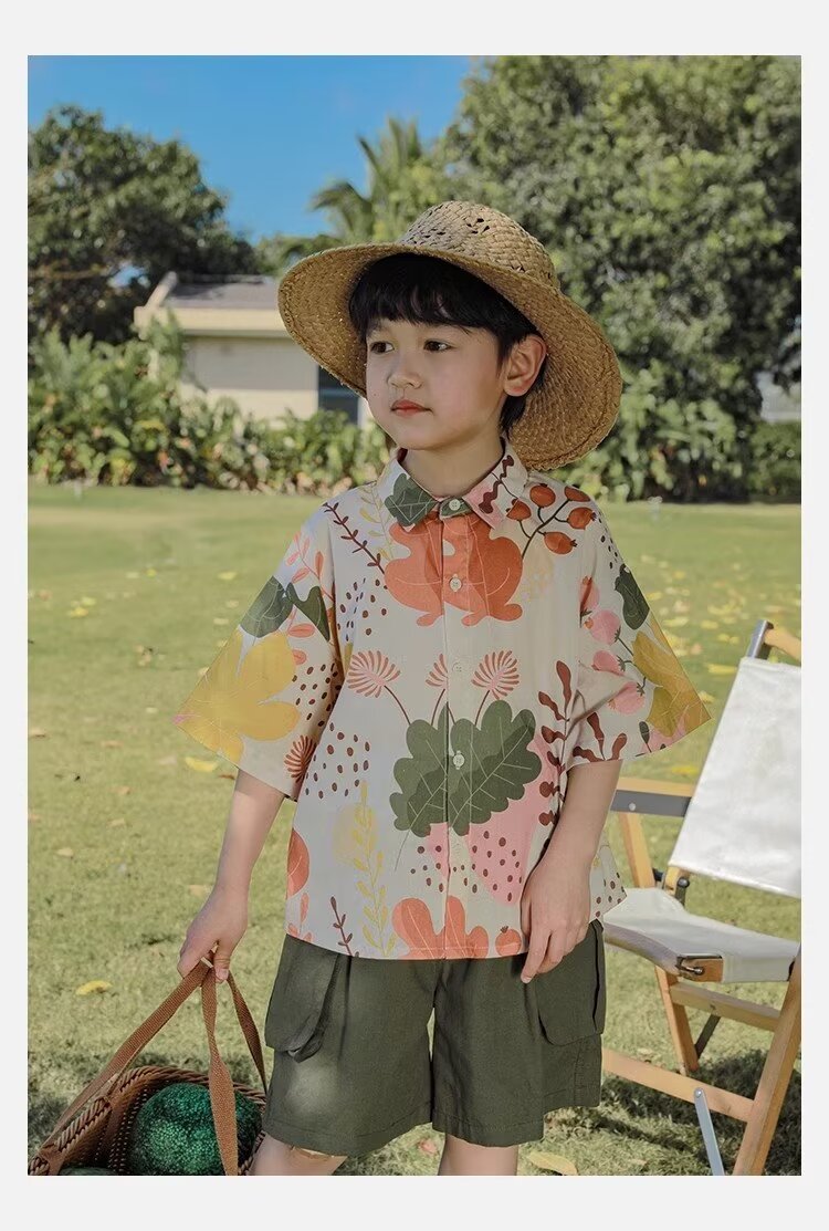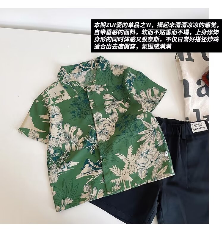 兒童花襯衫夏季薄款短袖2024新款痞帥男童衣服港風洋氣男孩襯衣潮
