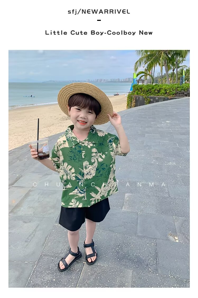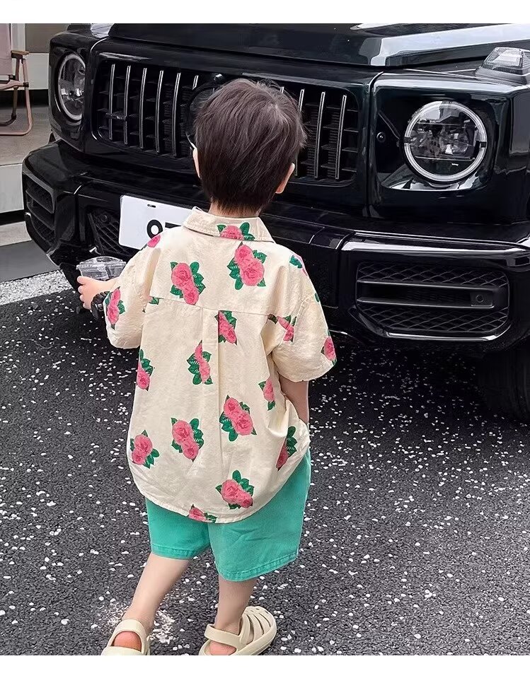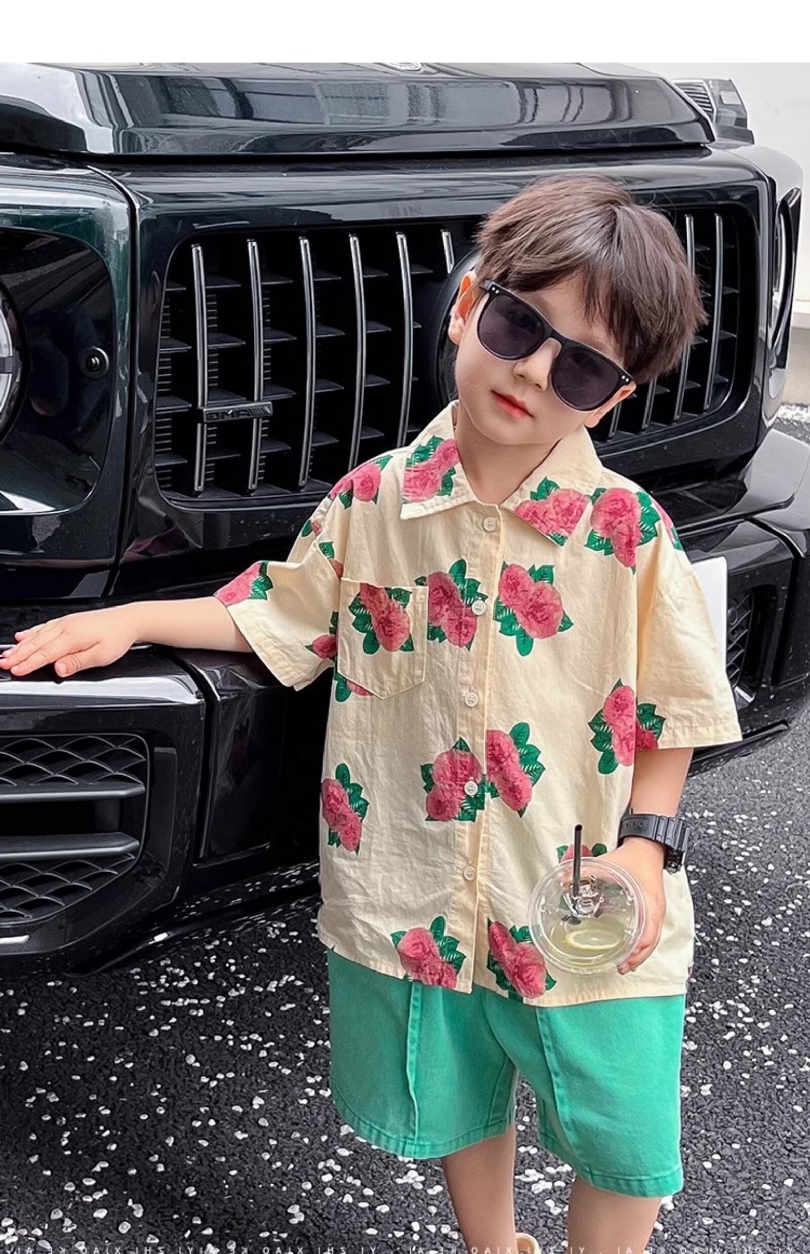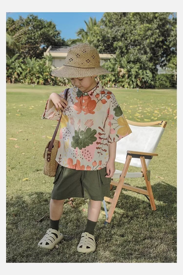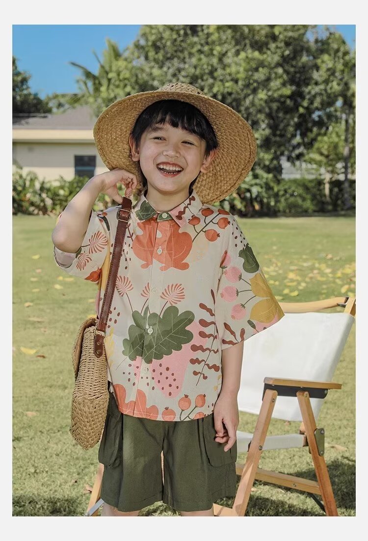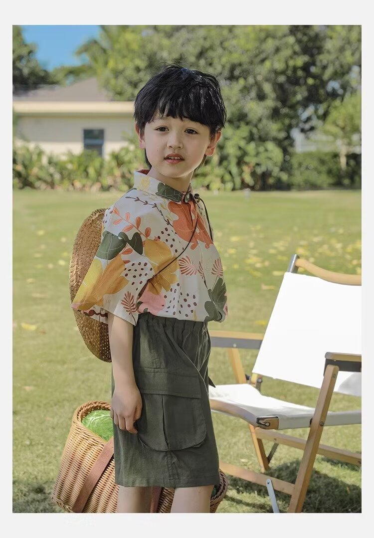 兒童花襯衫夏季薄款短袖2024新款痞帥男童衣服港風洋氣男孩襯衣潮