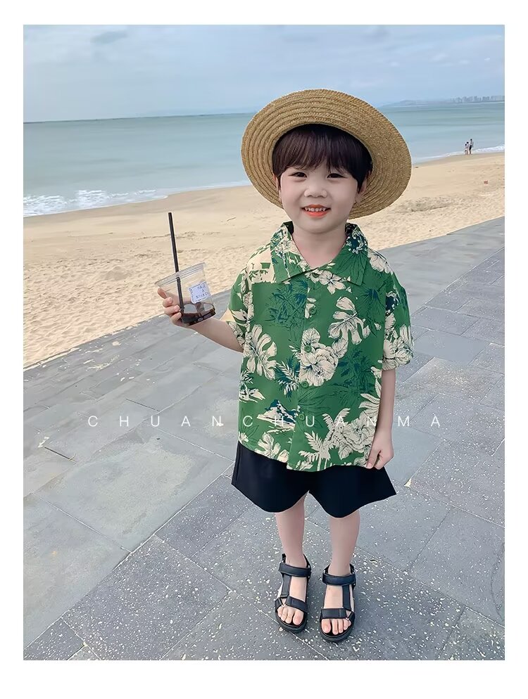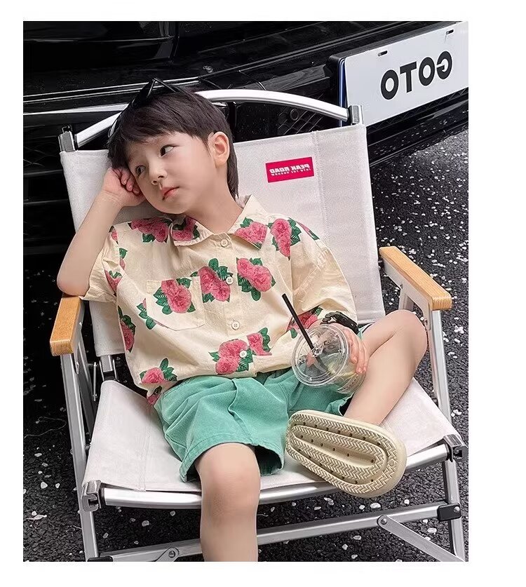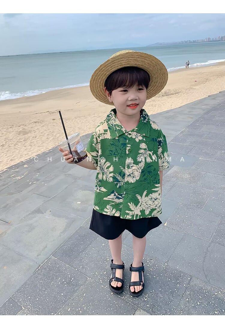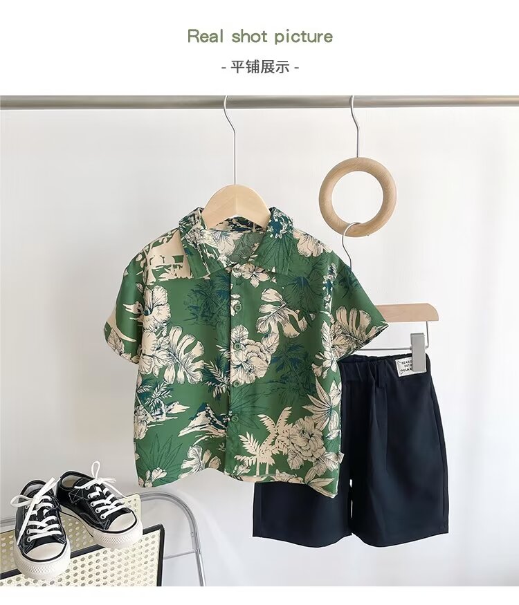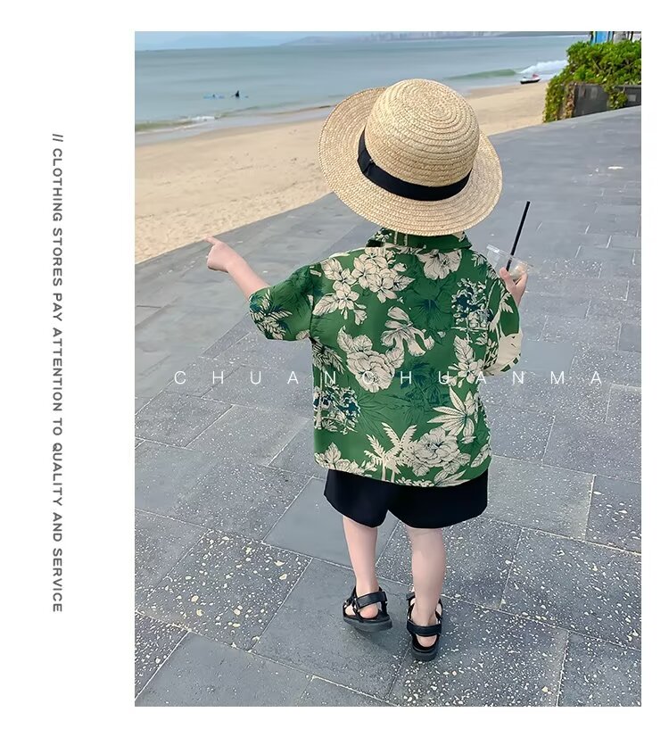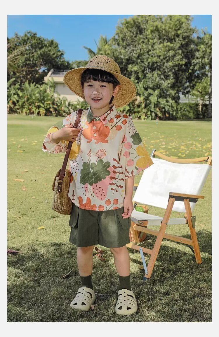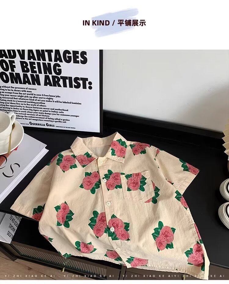 兒童花襯衫夏季薄款短袖2024新款痞帥男童衣服港風洋氣男孩襯衣潮