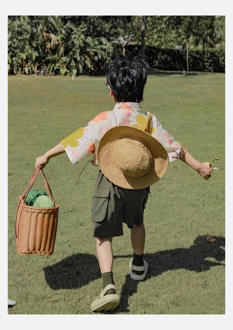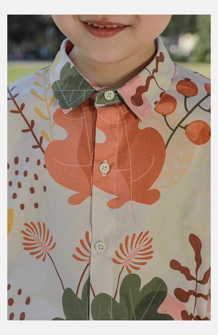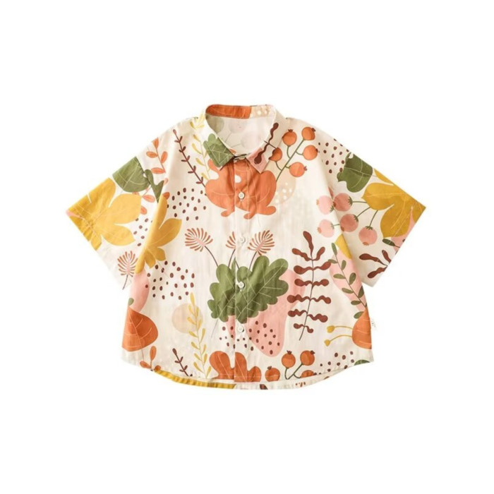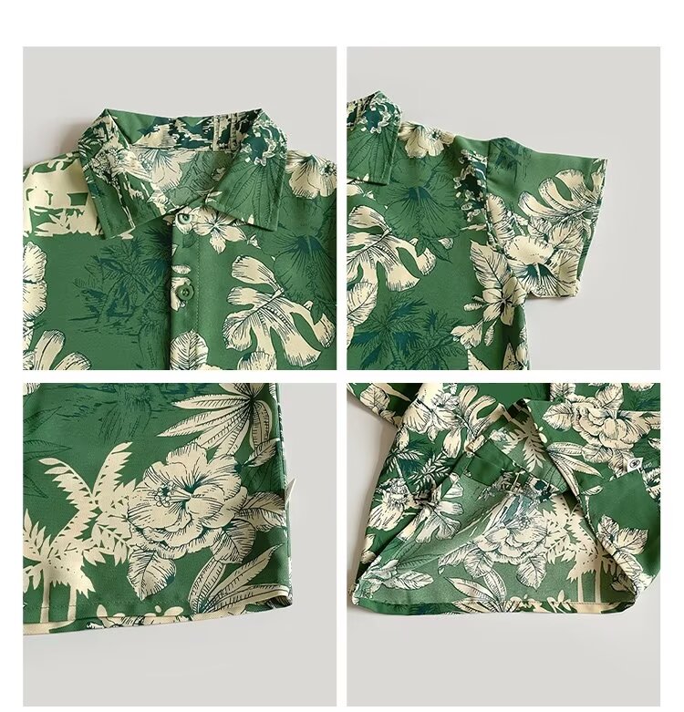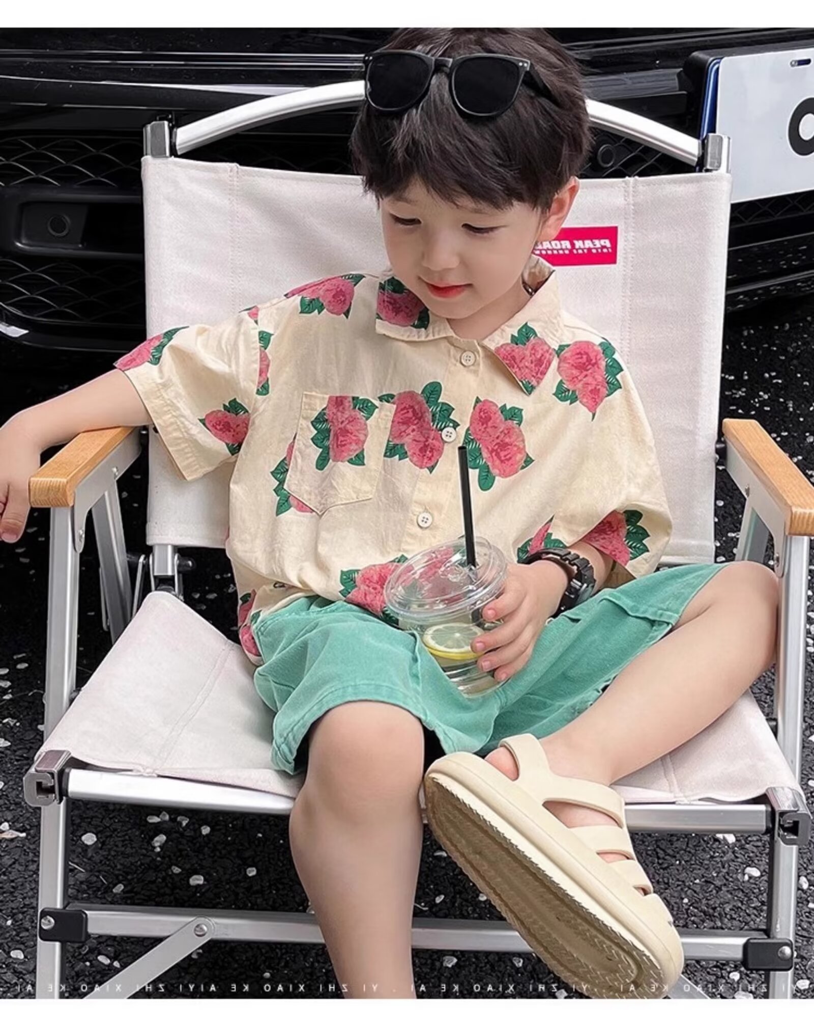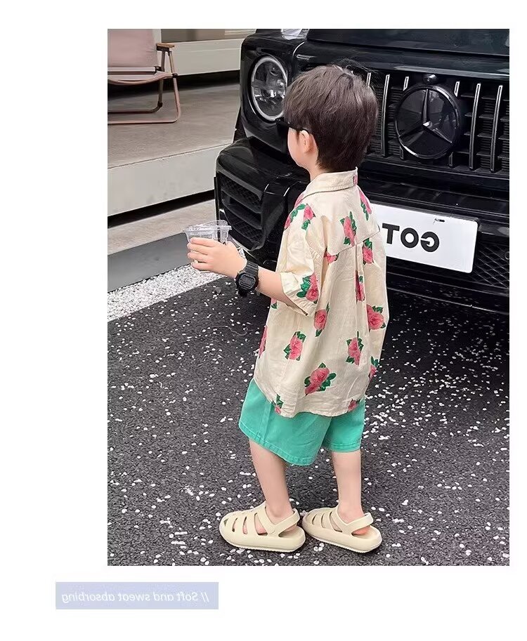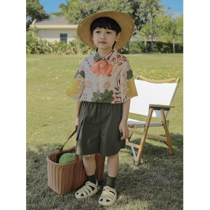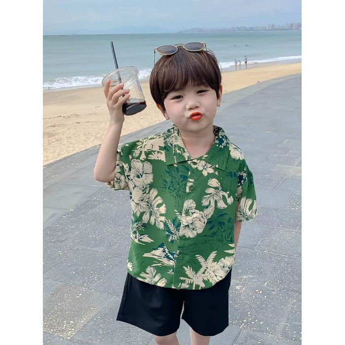 兒童花襯衫夏季薄款短袖2024新款痞帥男童衣服港風洋氣男孩襯衣潮