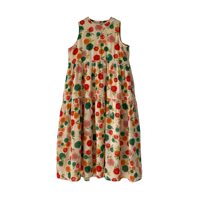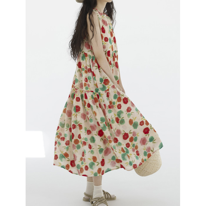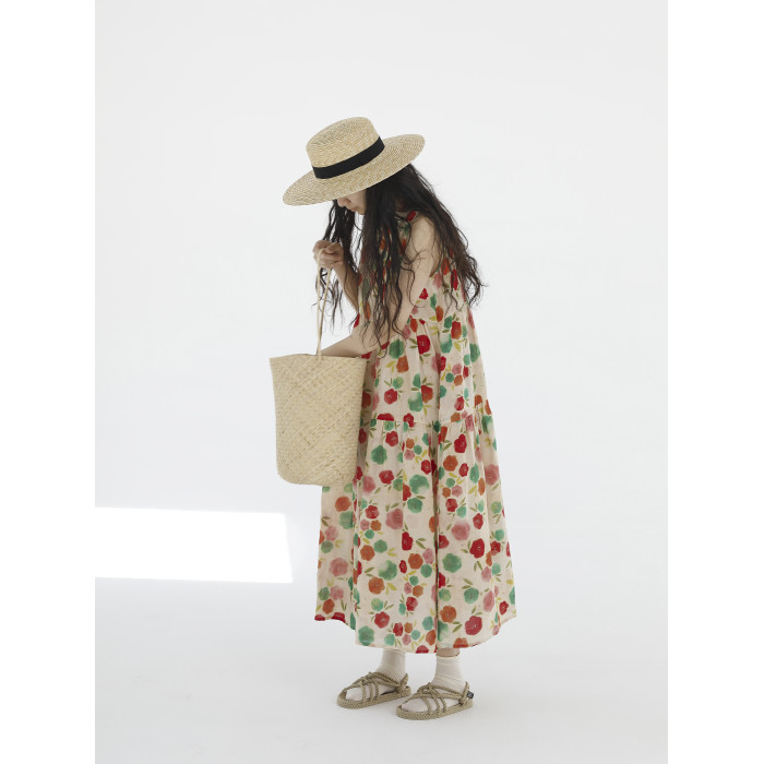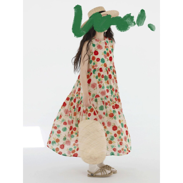 女童純棉連衣裙夏裝中大童長裙碎花油潑墨沙灘裙度假公主裙背心裙