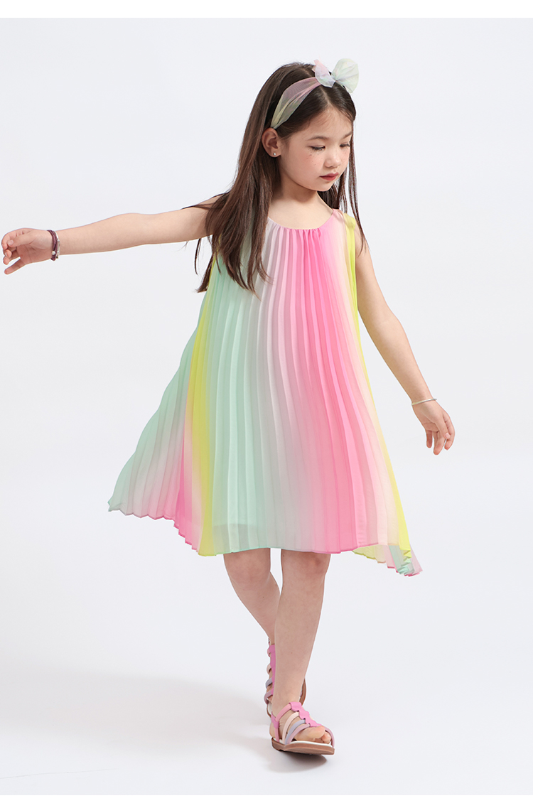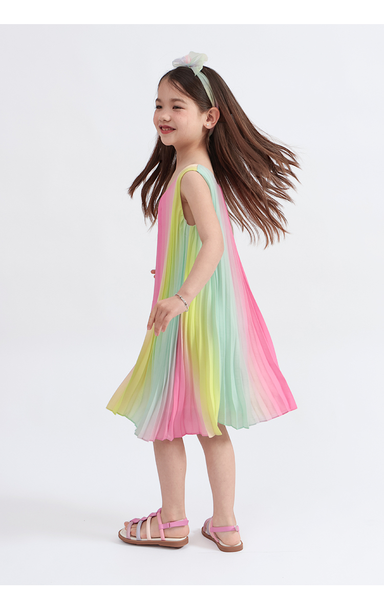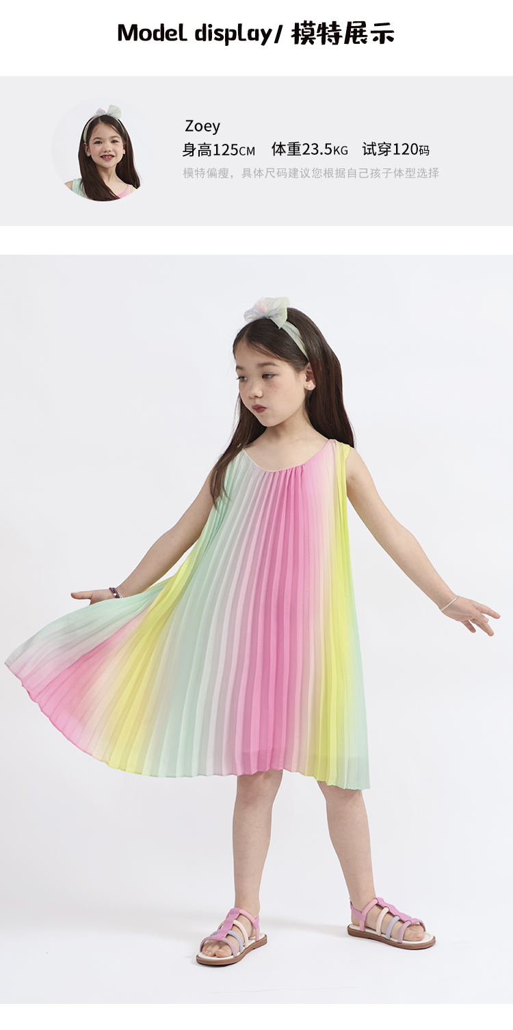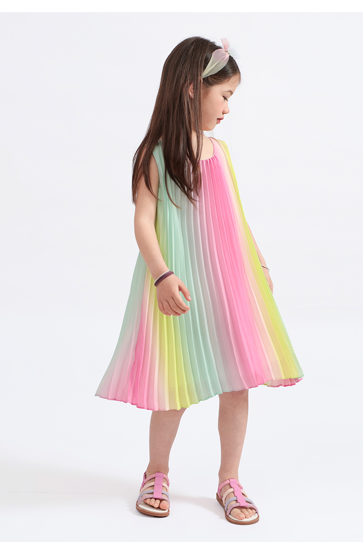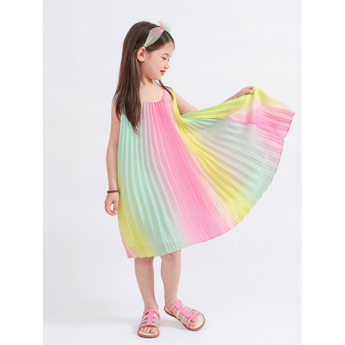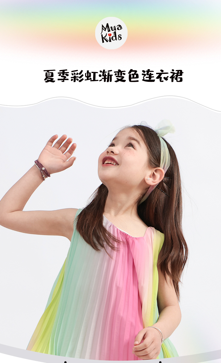 【彩虹漸變】muakids童裝夏季女童多巴胺裙子兒童新款百褶連衣裙