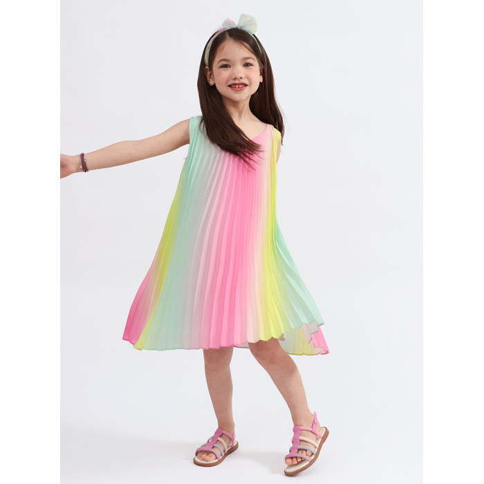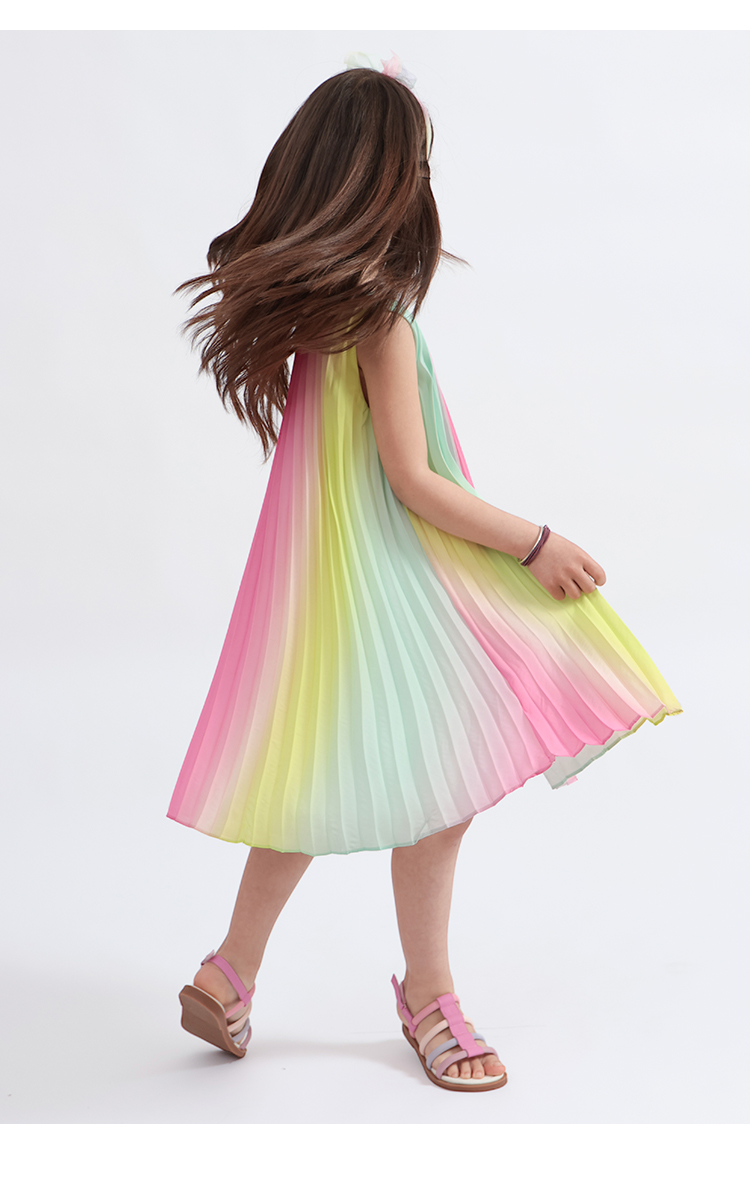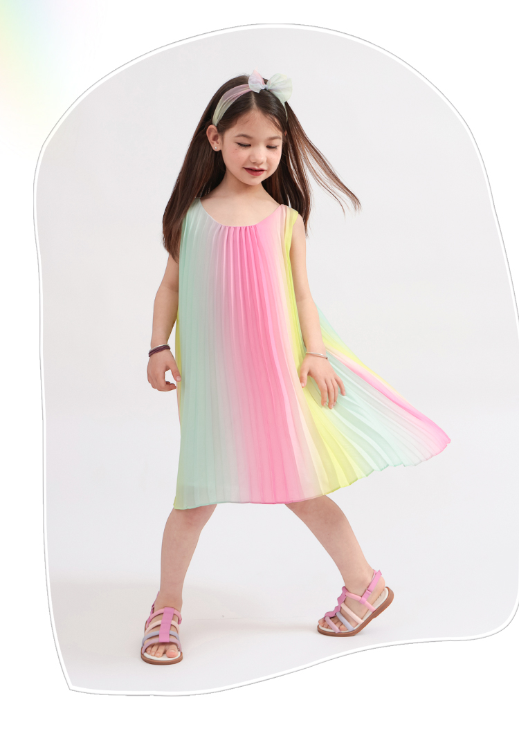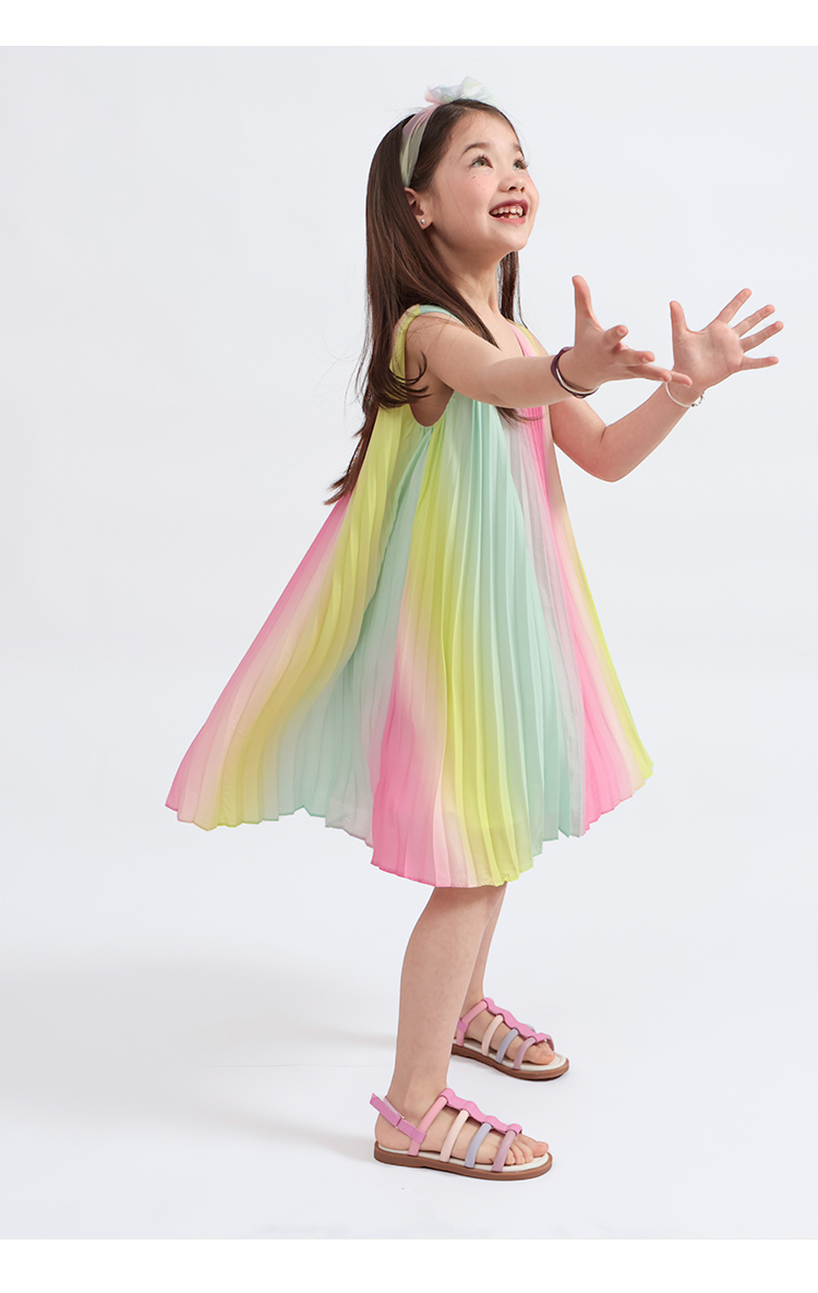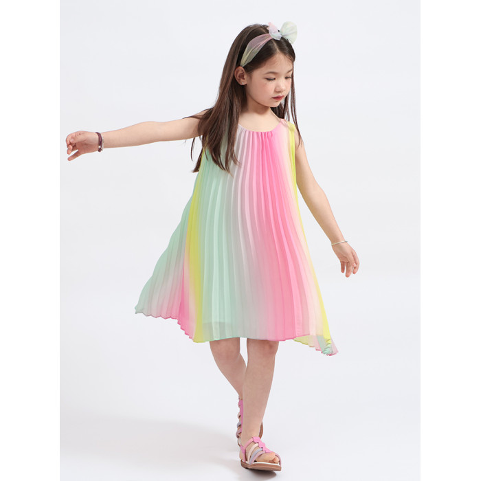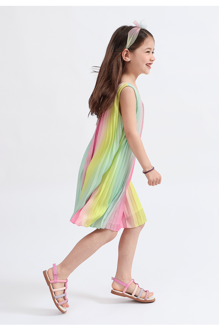 【彩虹漸變】muakids童裝夏季女童多巴胺裙子兒童新款百褶連衣裙