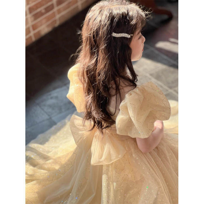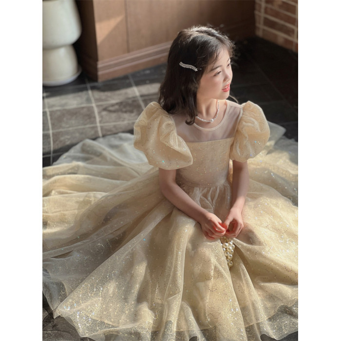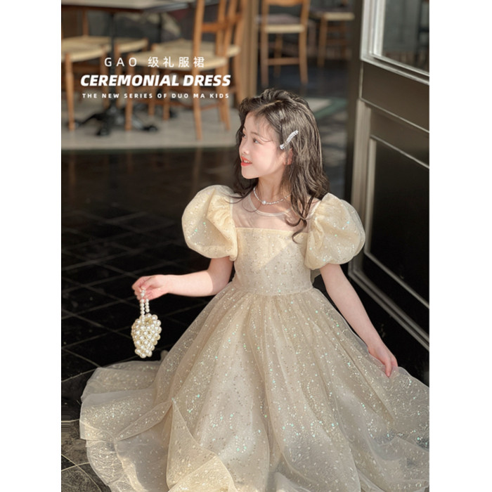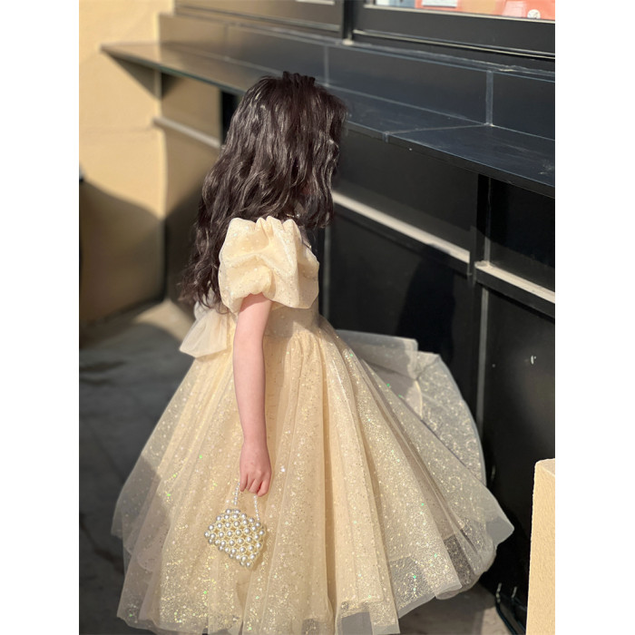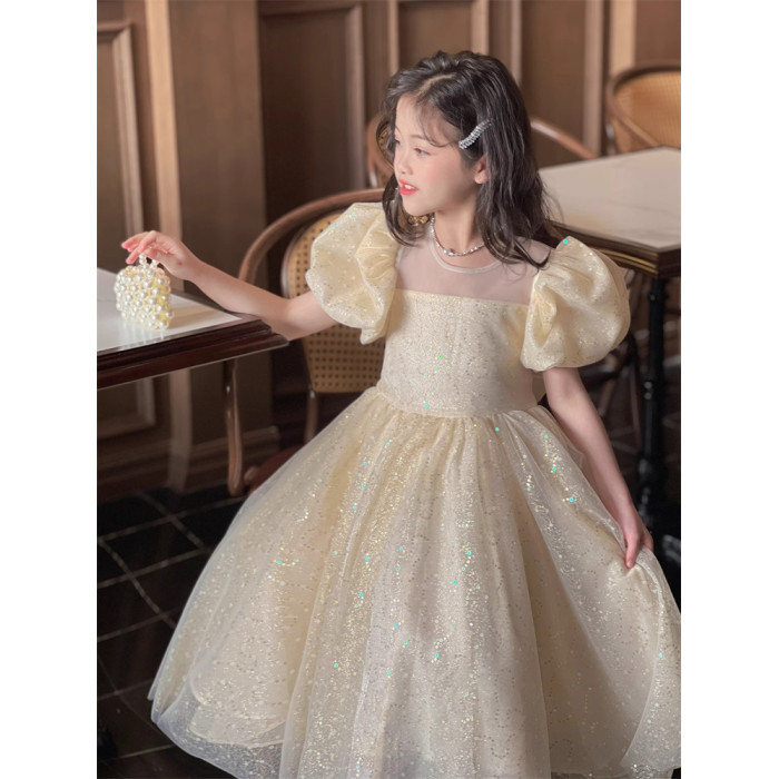 英國NextElsa女童公主裙2025夏季小女孩泡泡袖洋氣連衣裙生日禮服