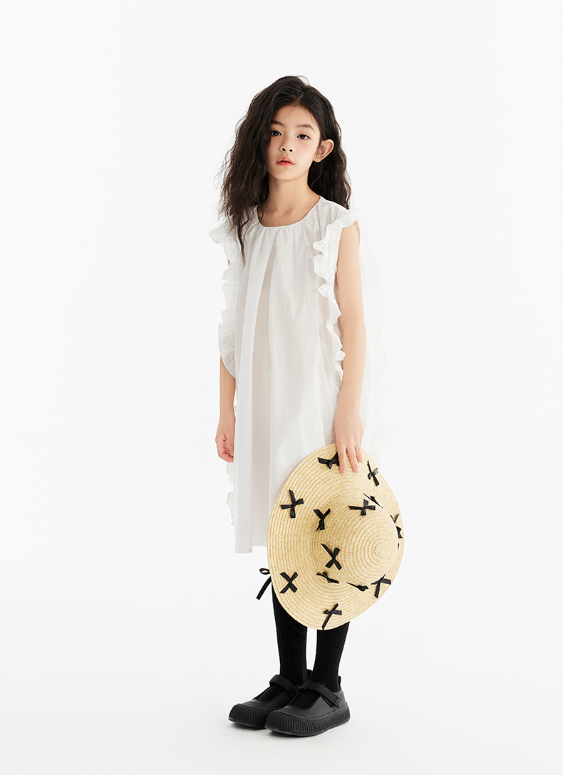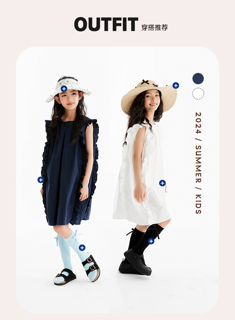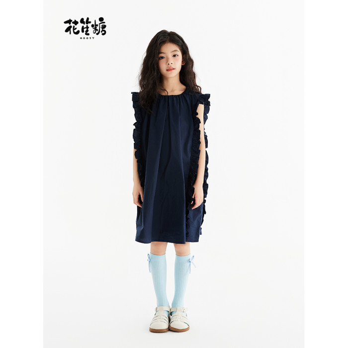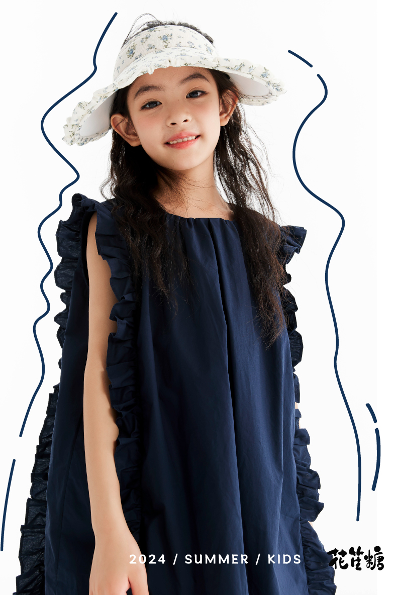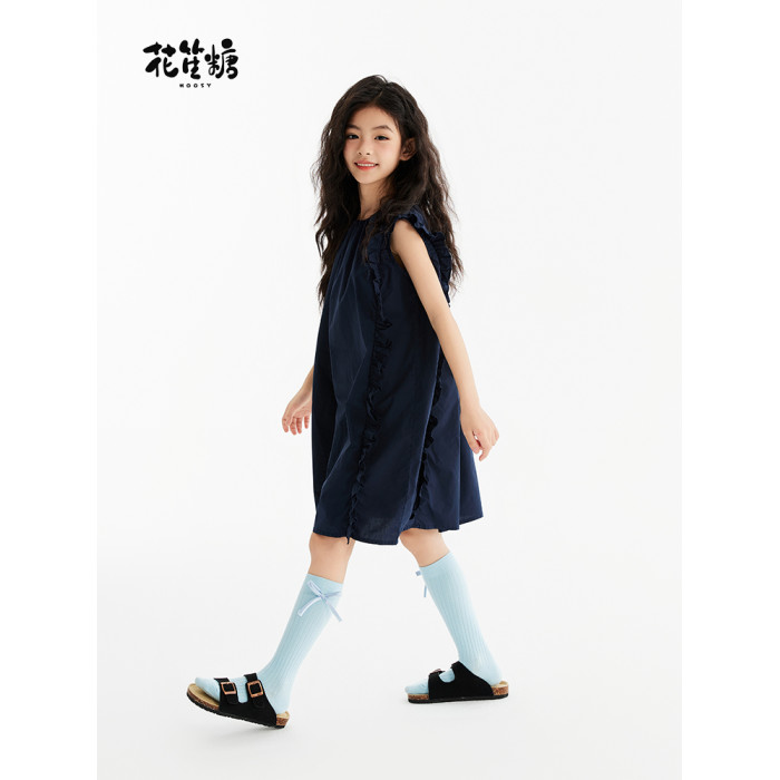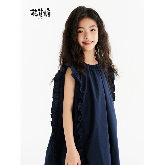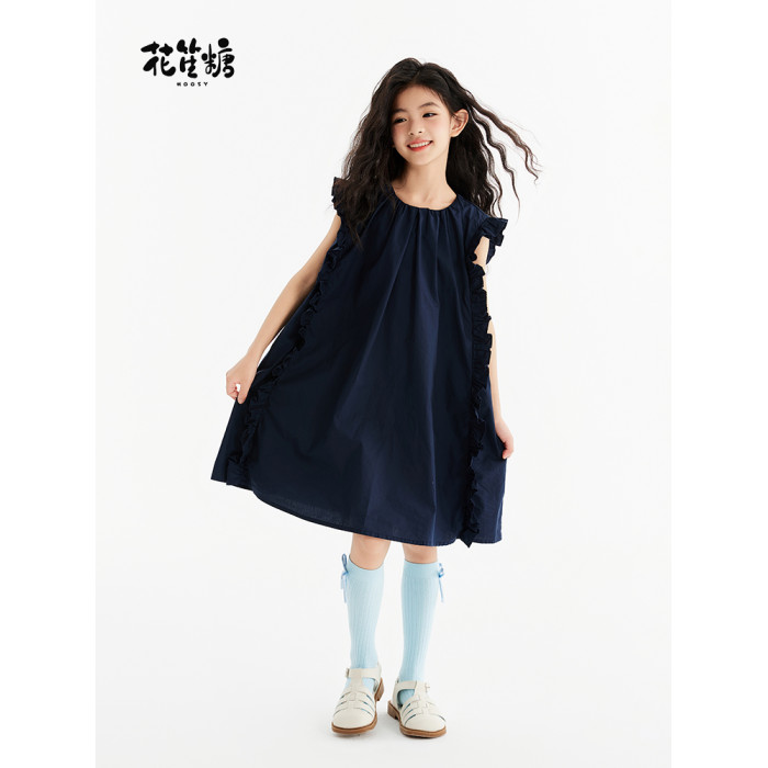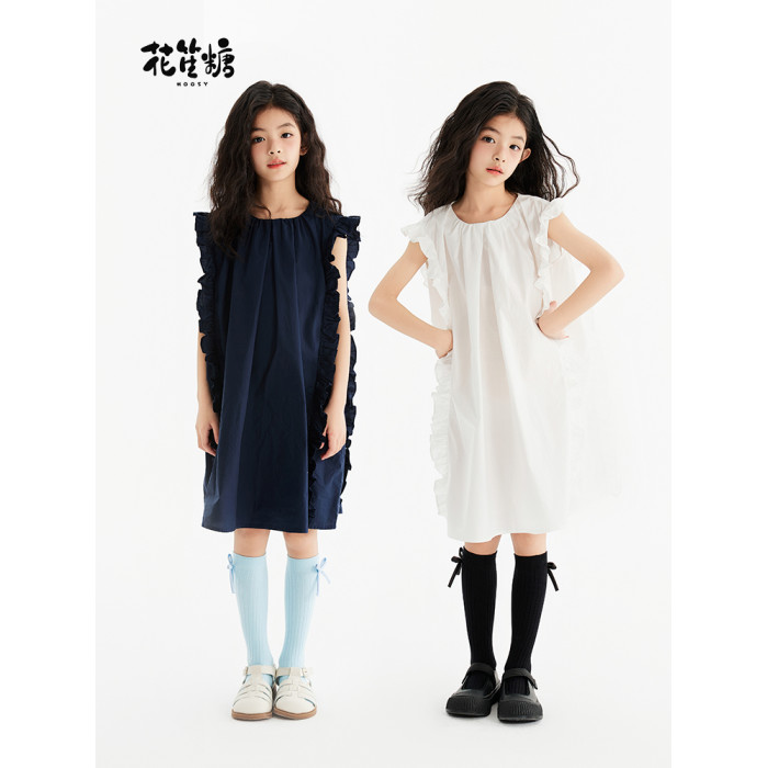 中大女童純棉高級氣質設計感連衣裙夏裝荷葉邊簡約小女孩背心裙子