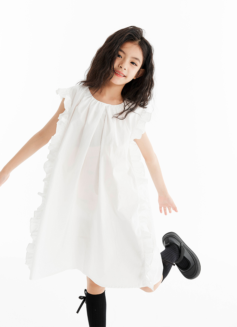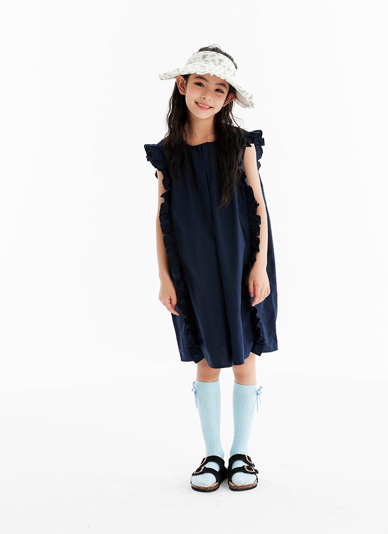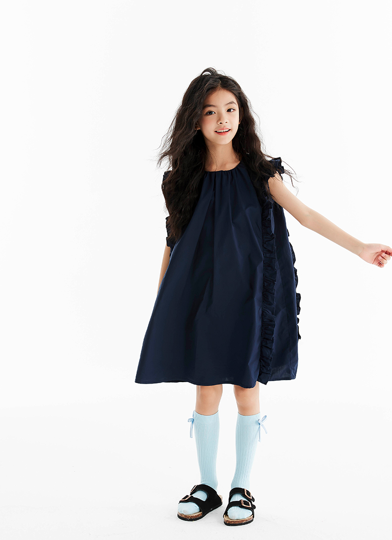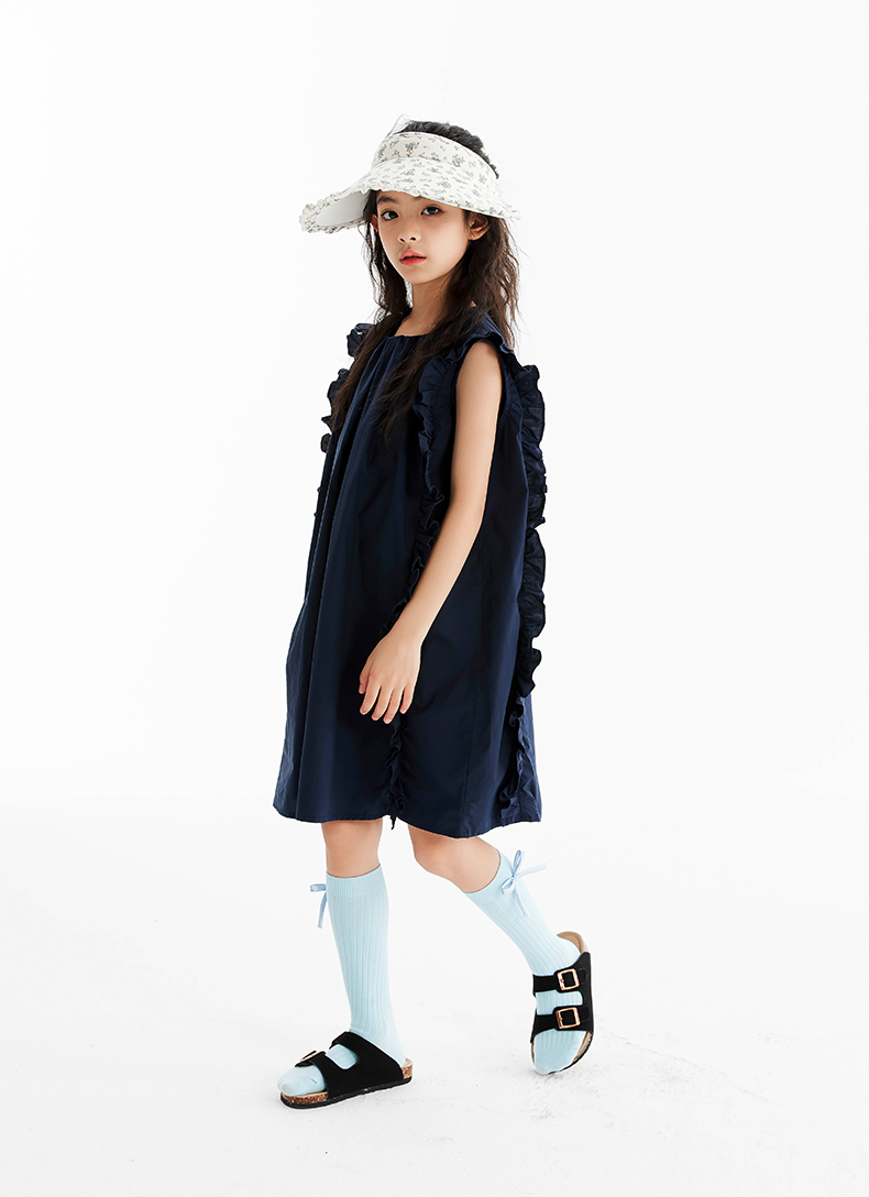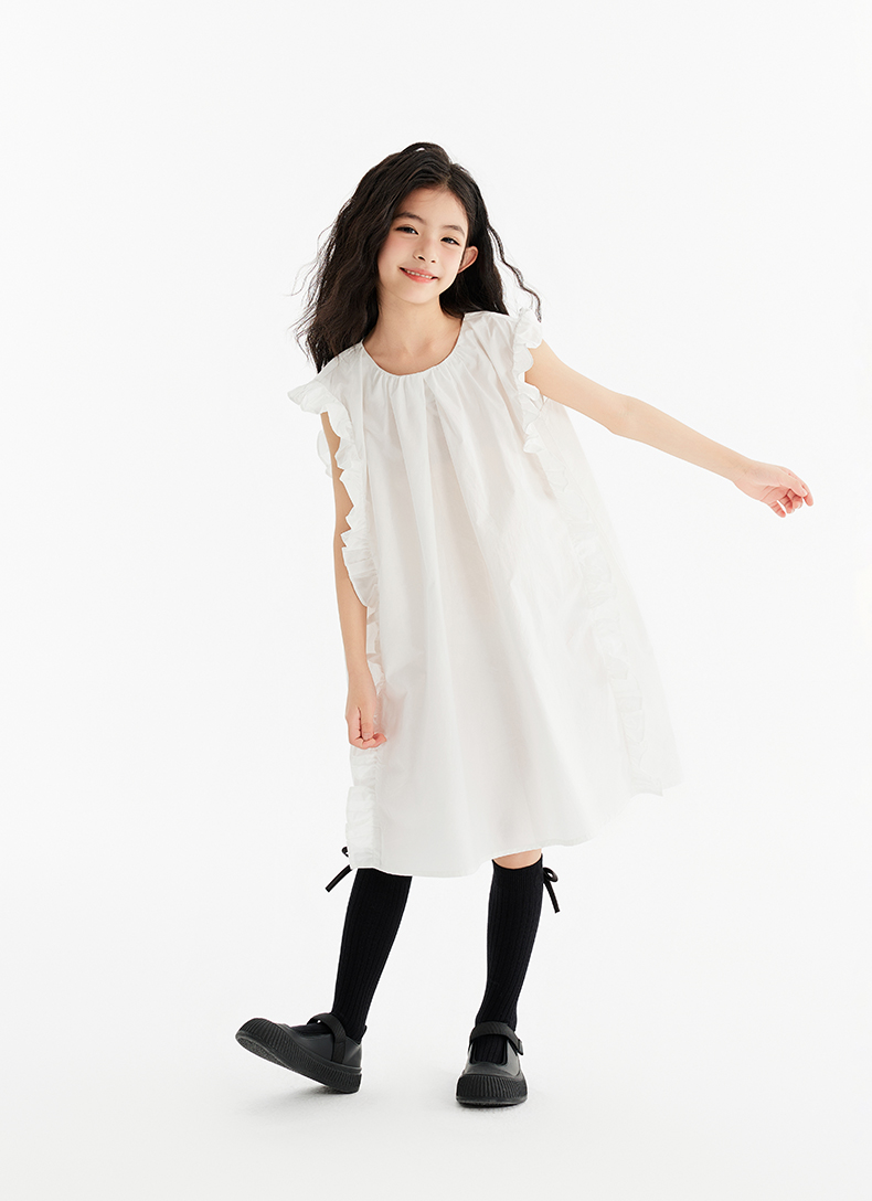 中大女童純棉高級氣質設計感連衣裙夏裝荷葉邊簡約小女孩背心裙子