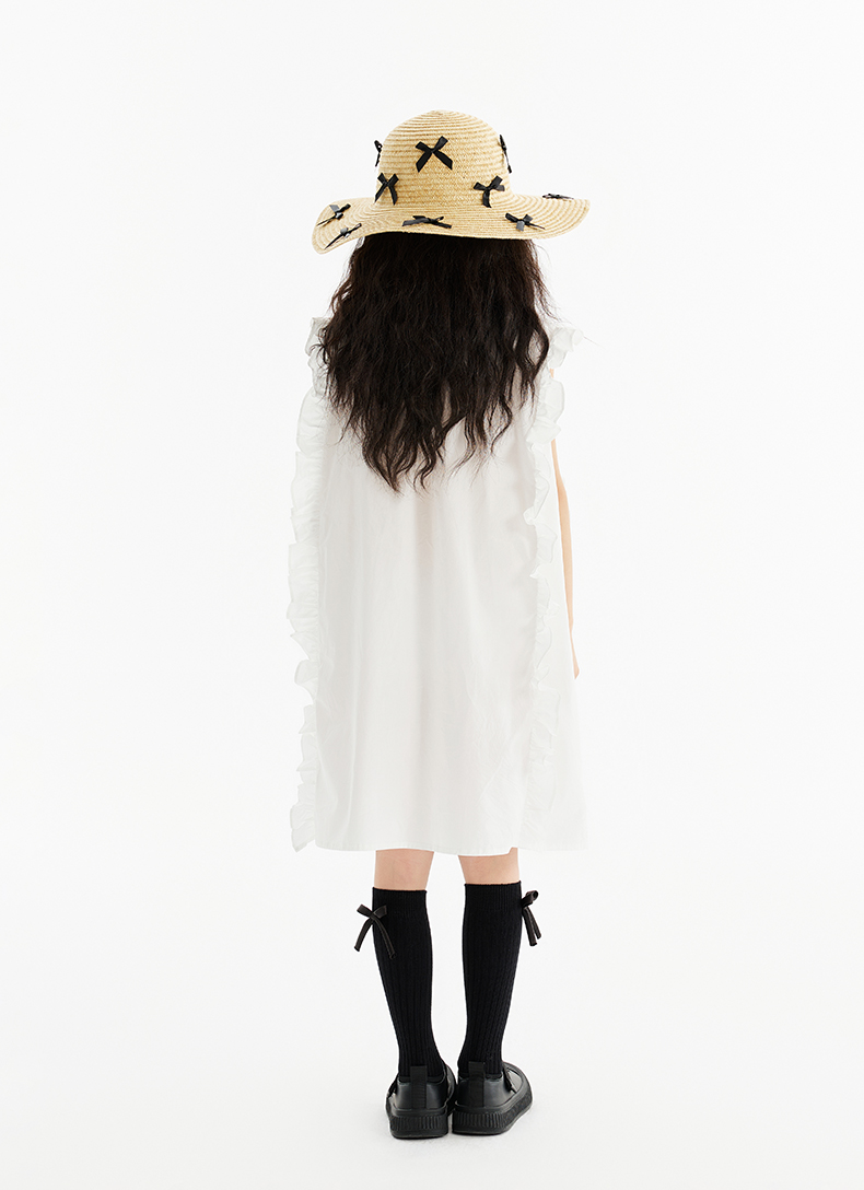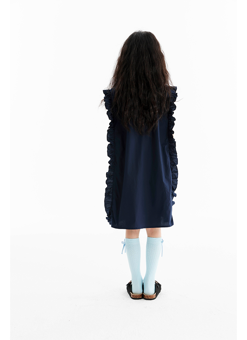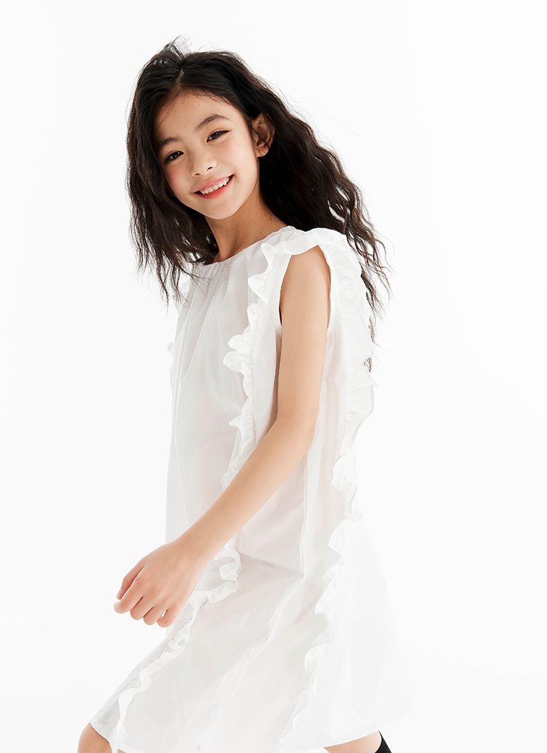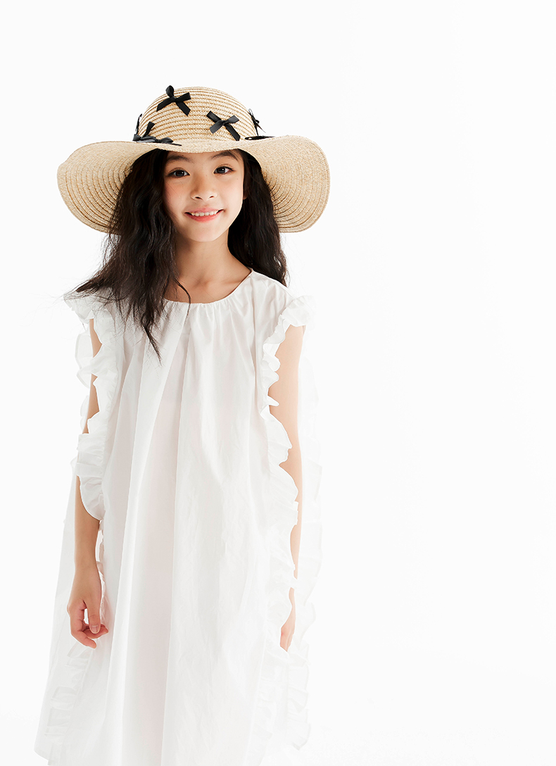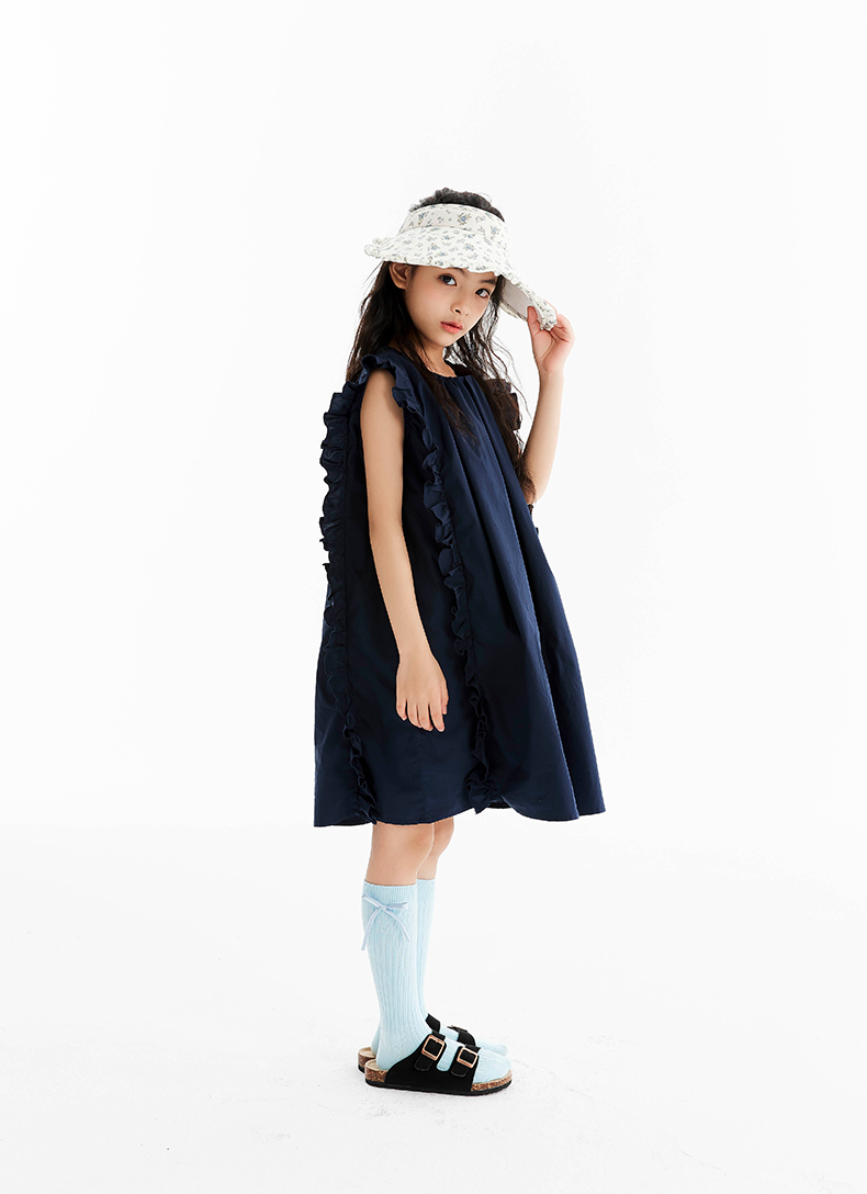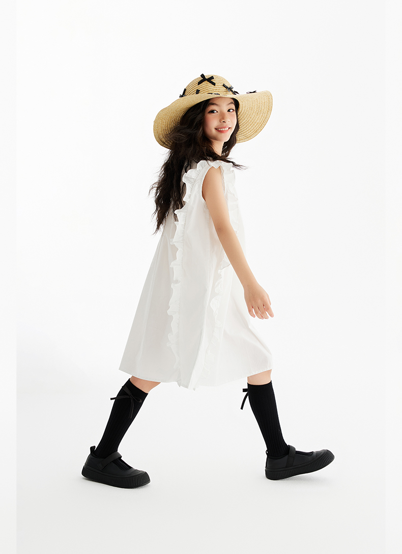 中大女童純棉高級氣質設計感連衣裙夏裝荷葉邊簡約小女孩背心裙子