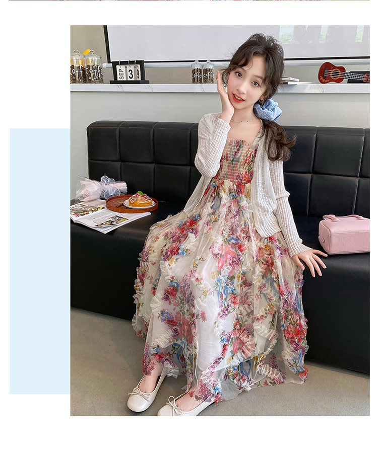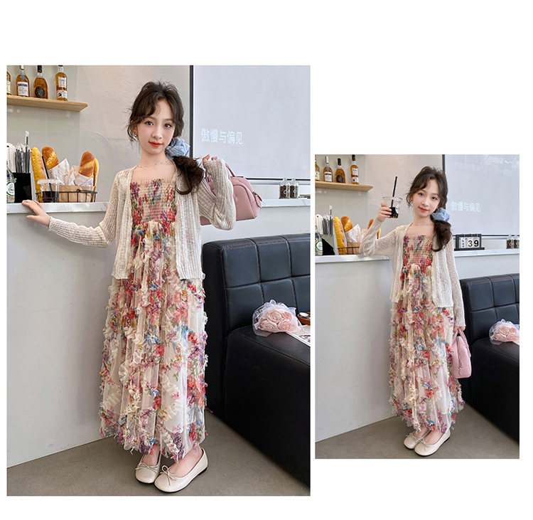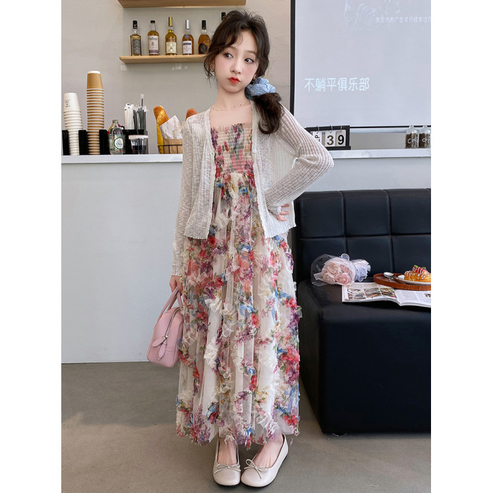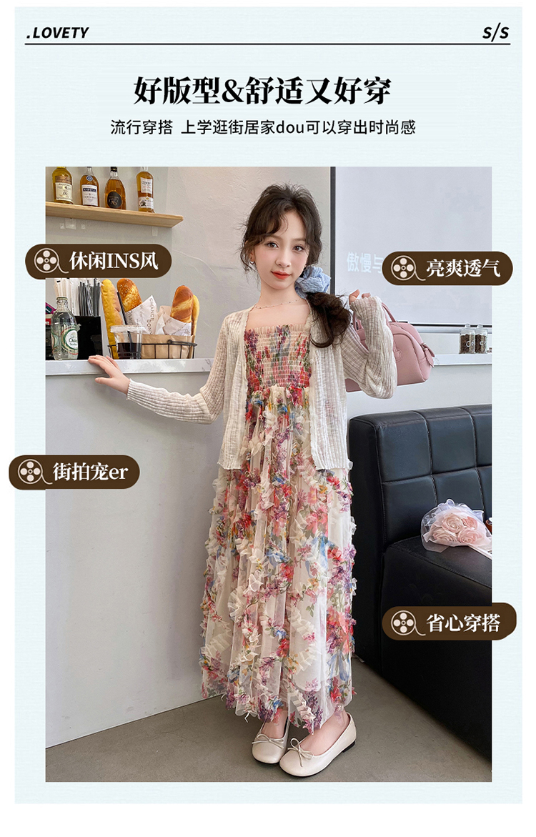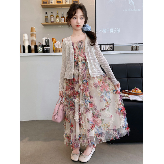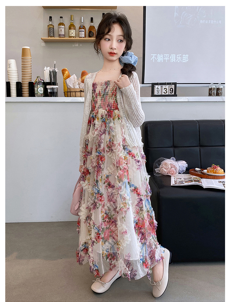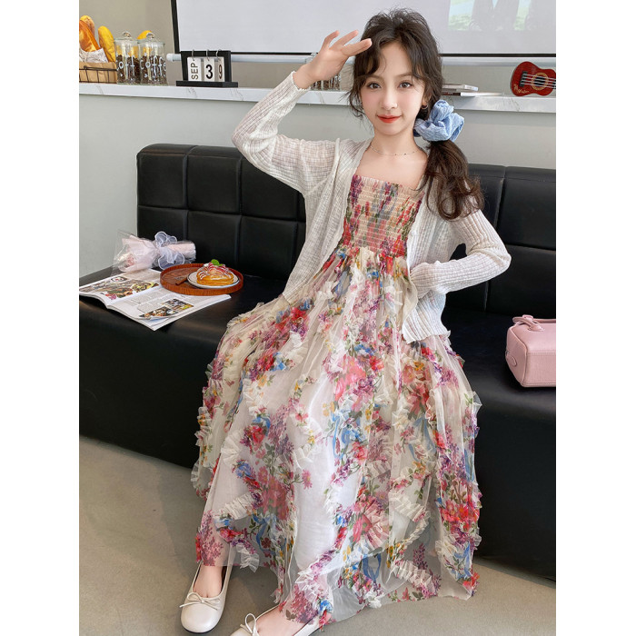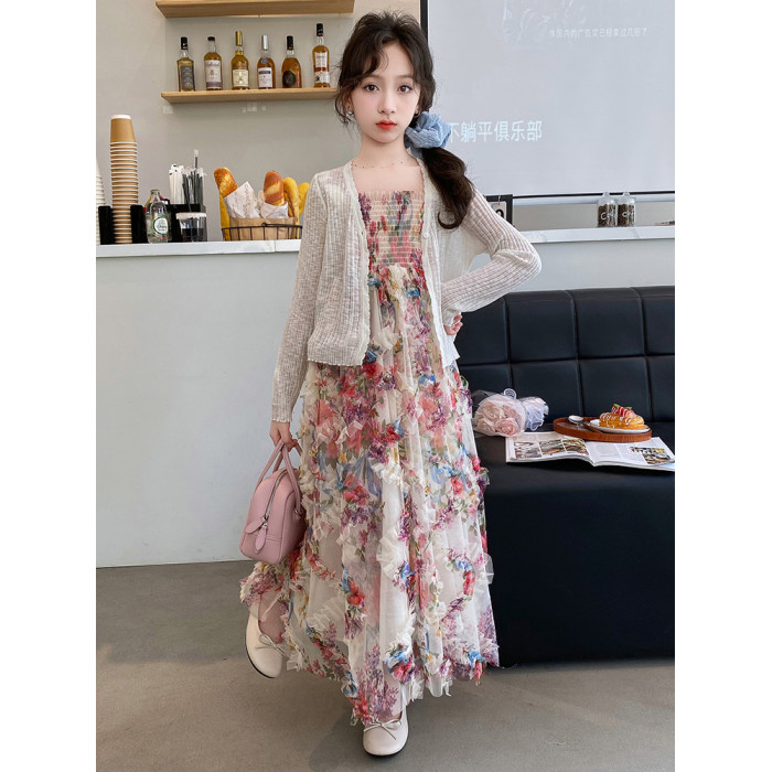 女童夏裝連衣裙2025新款時髦大童女孩碎花超仙公主沙灘海邊長裙潮