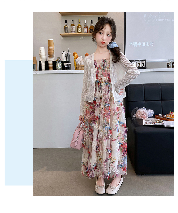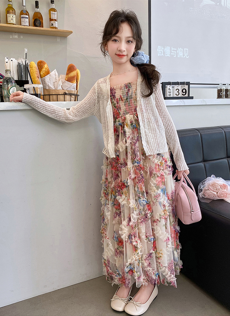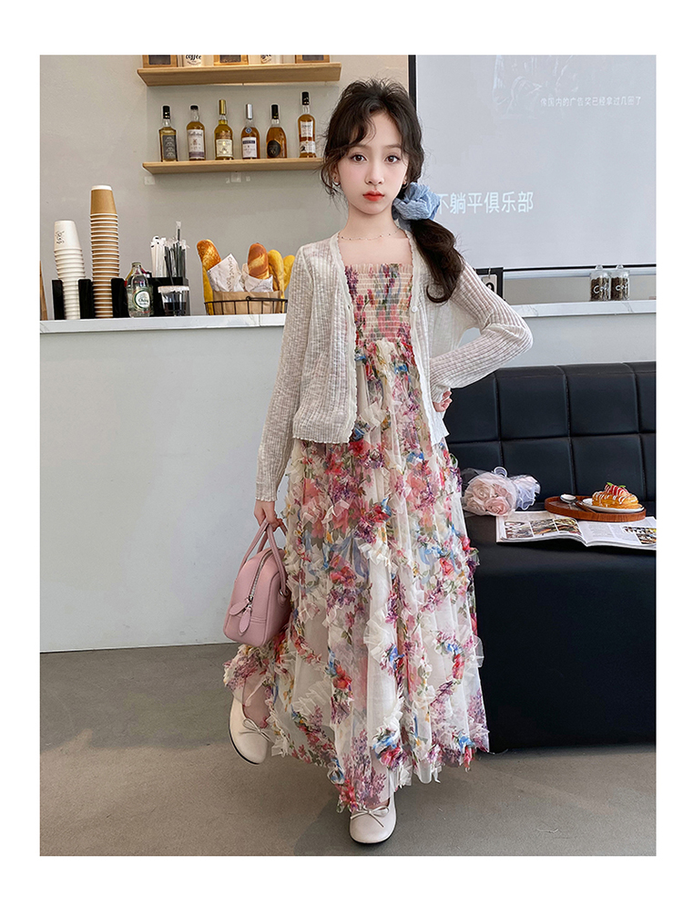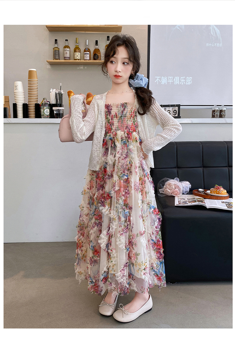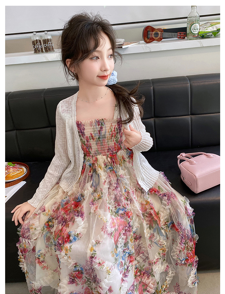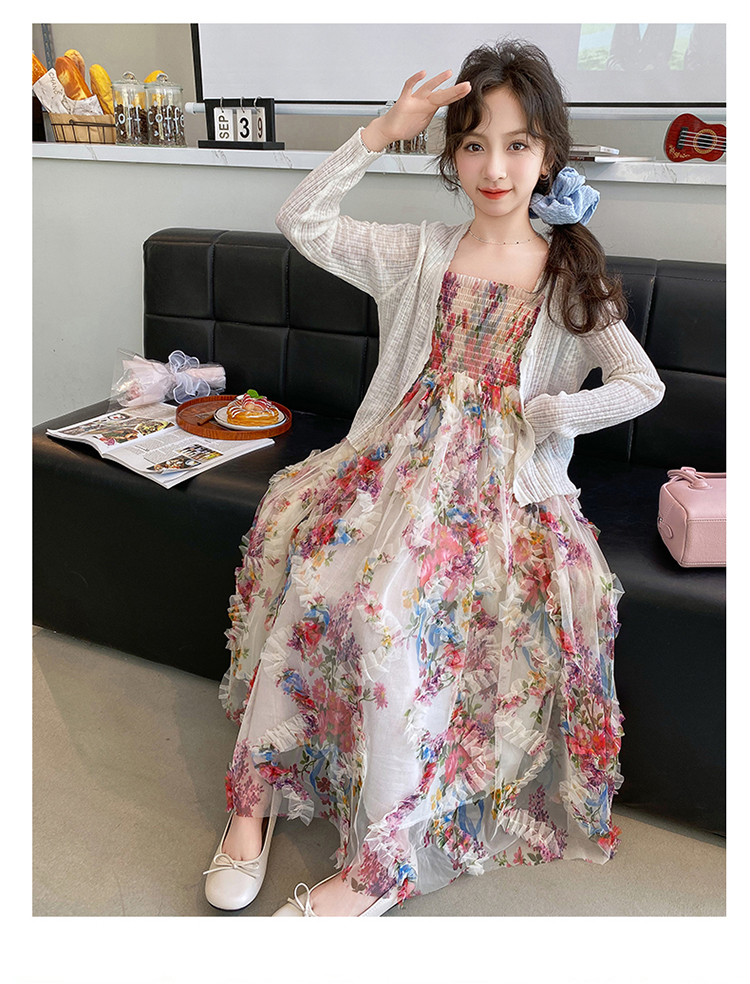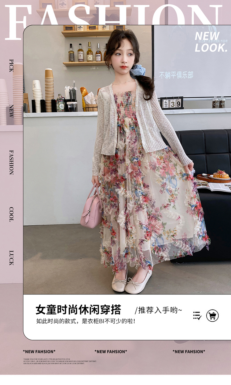 女童夏裝連衣裙2025新款時髦大童女孩碎花超仙公主沙灘海邊長裙潮