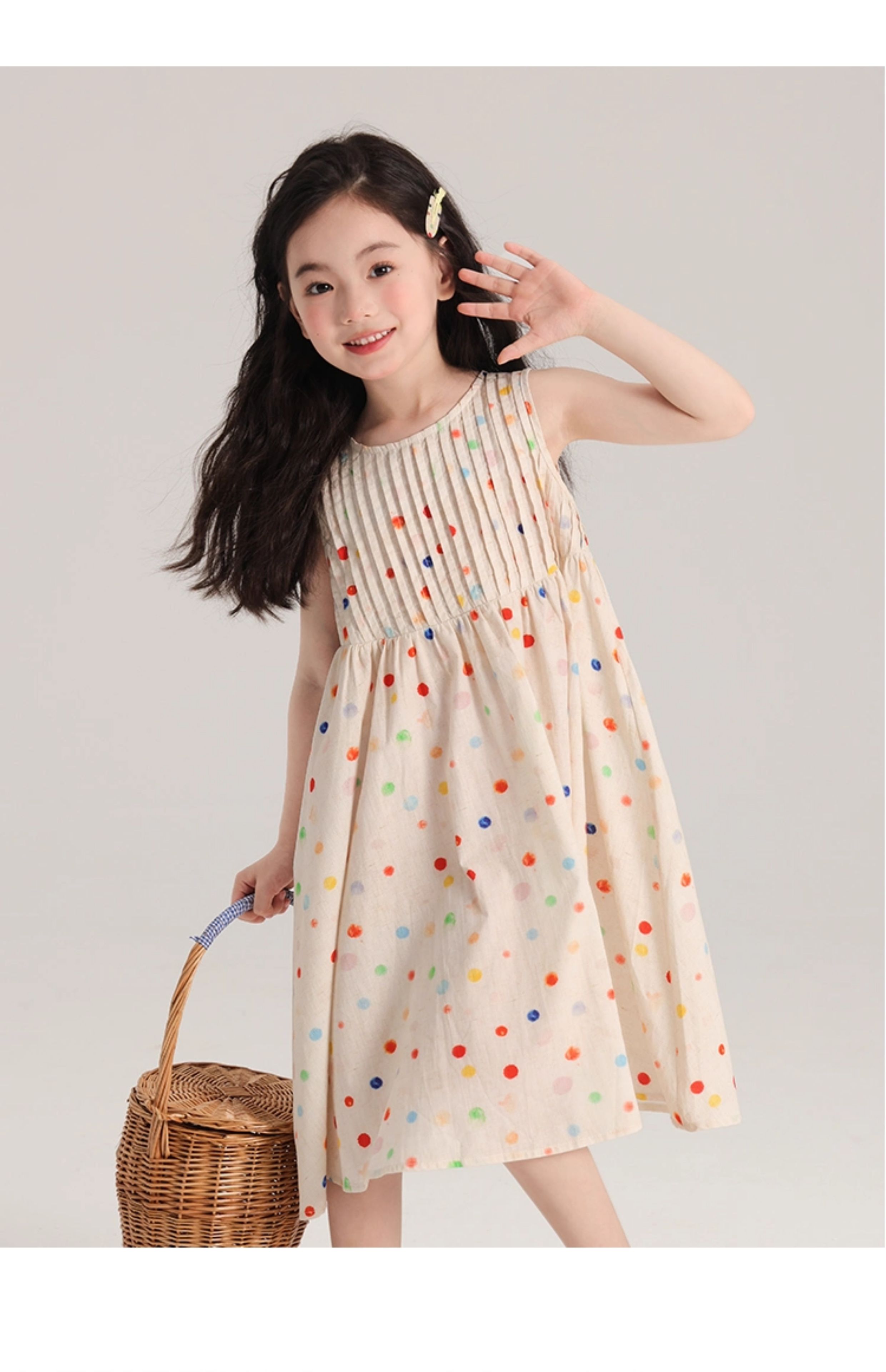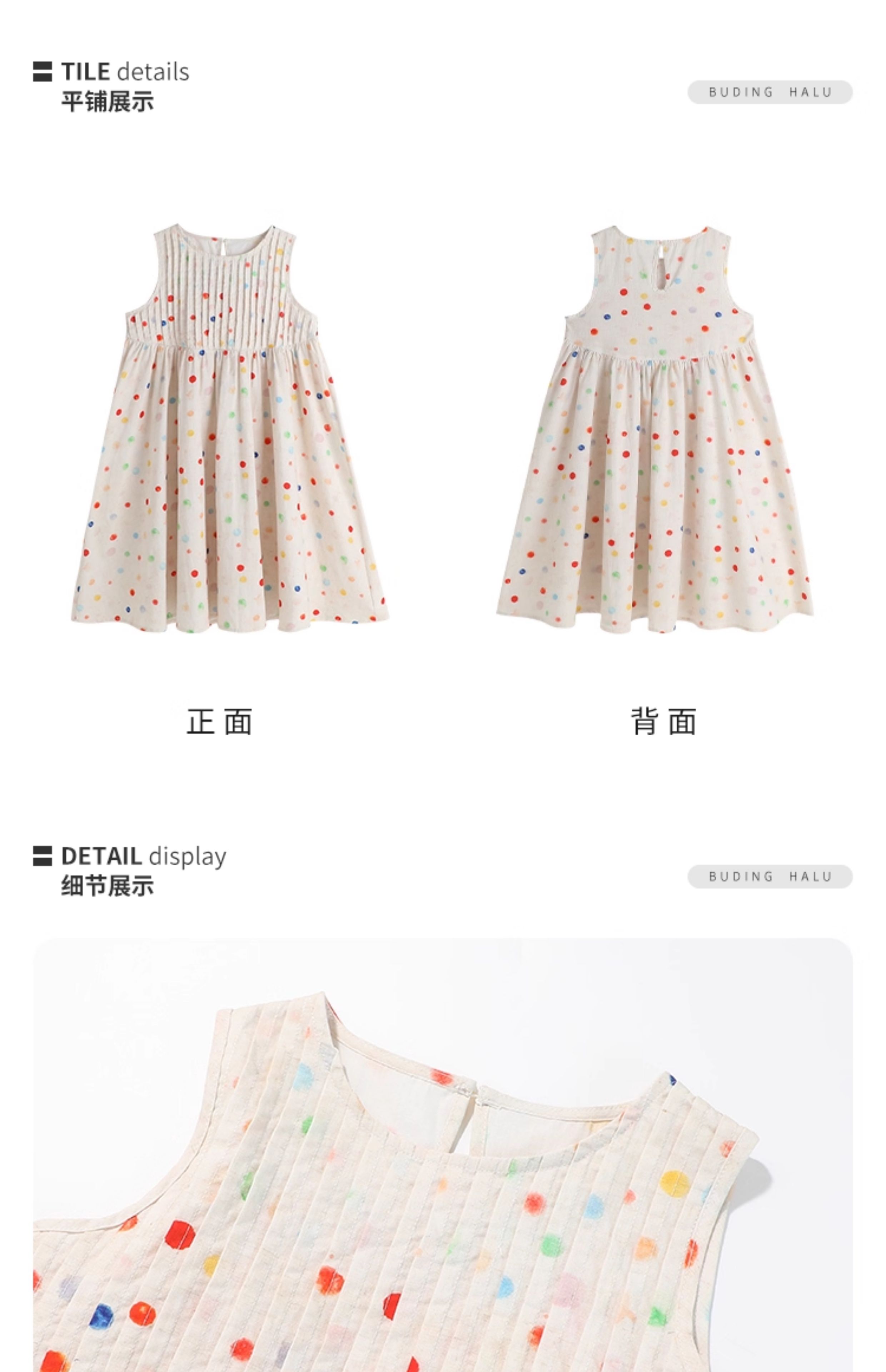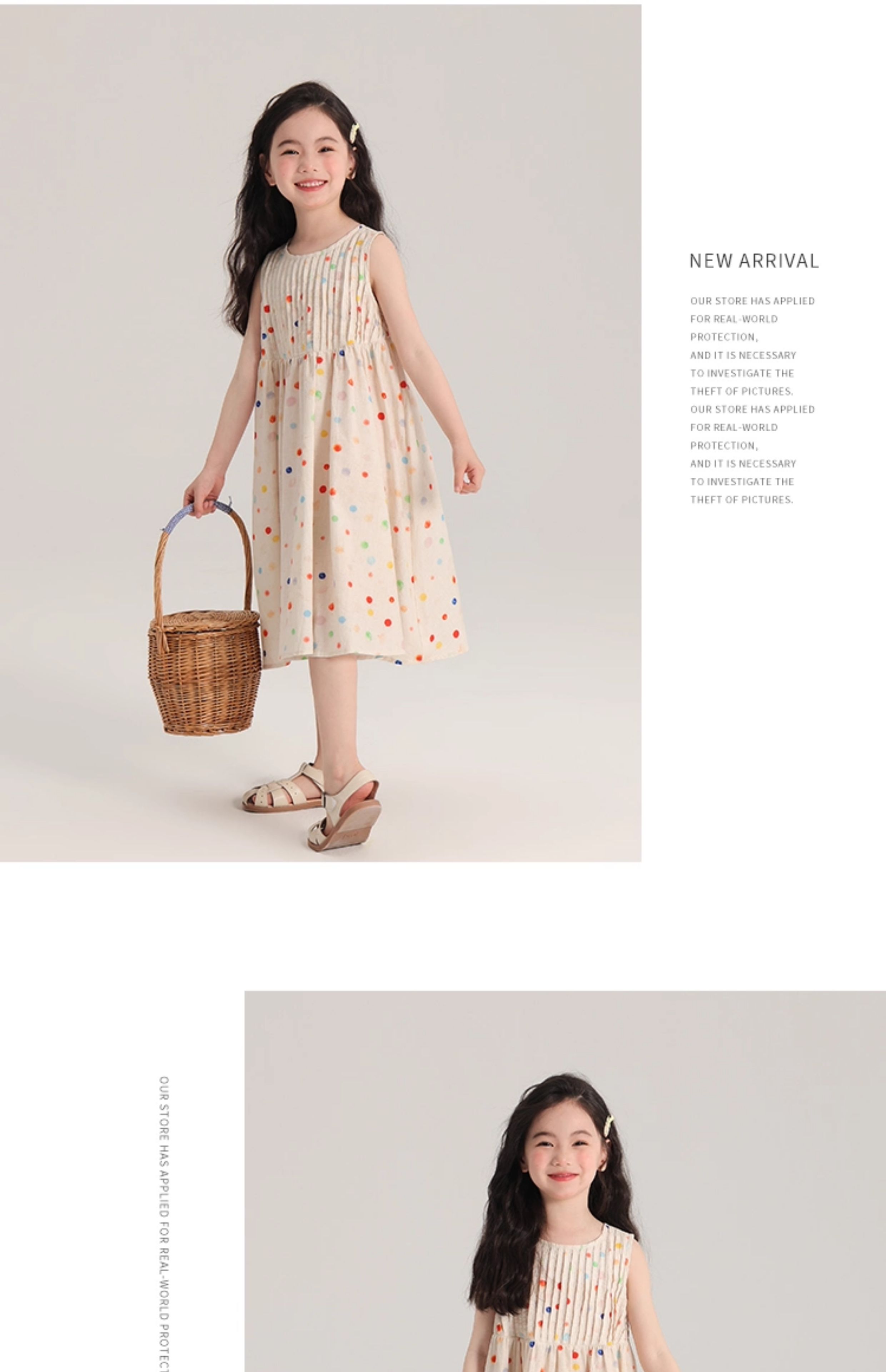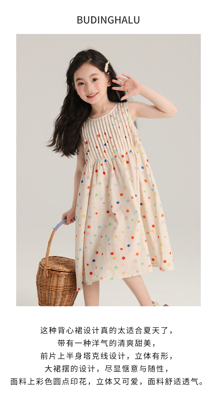 布丁哈魯女童洋氣長裙2025夏季新款兒童休閒無袖波點背心連衣裙子