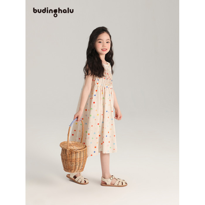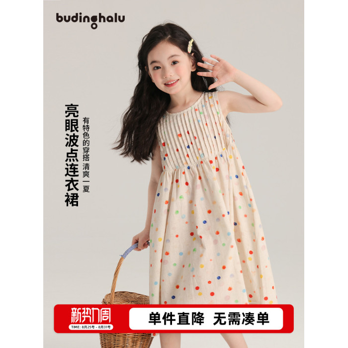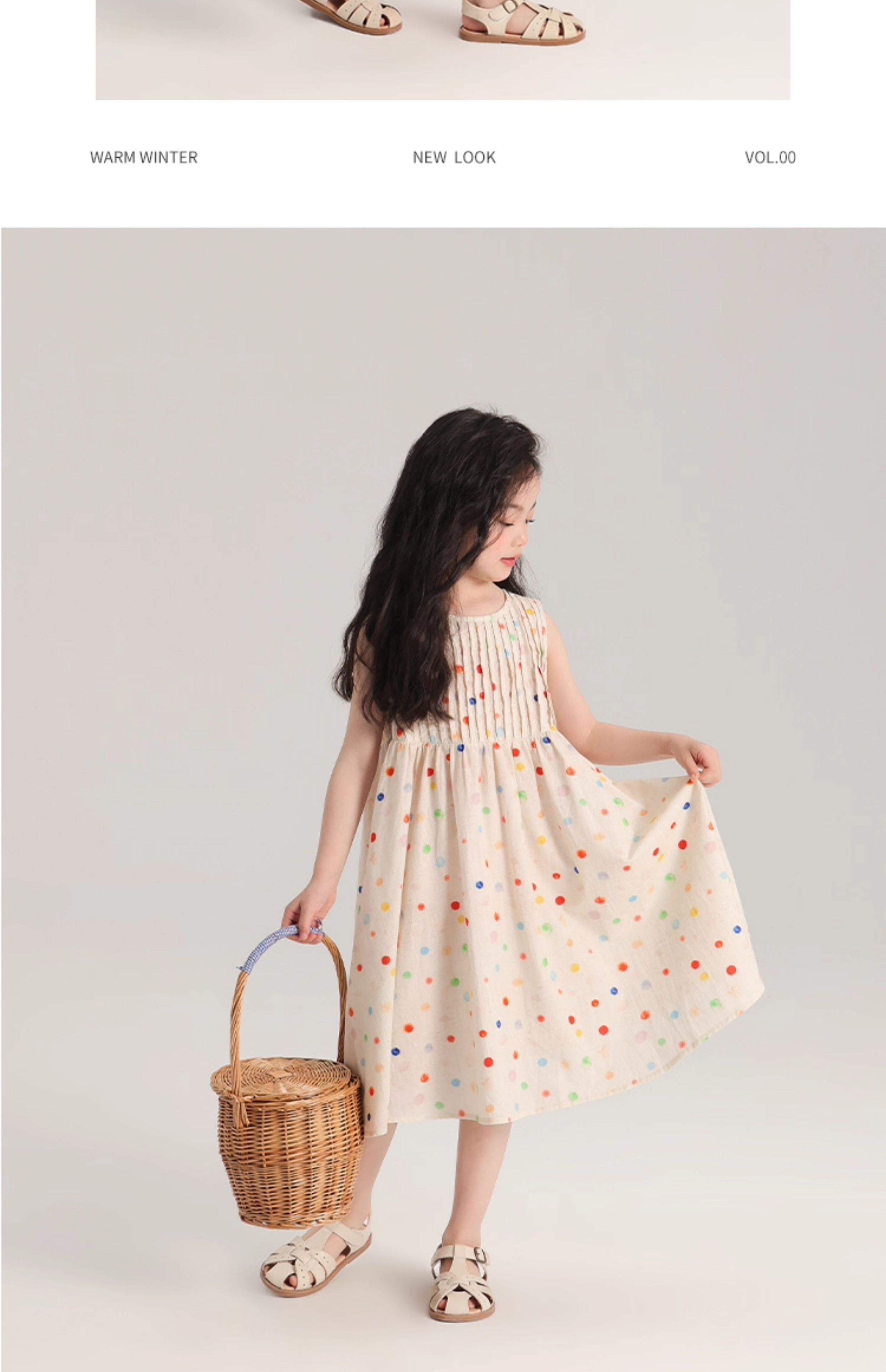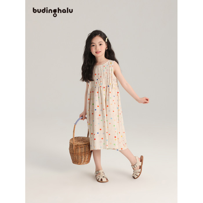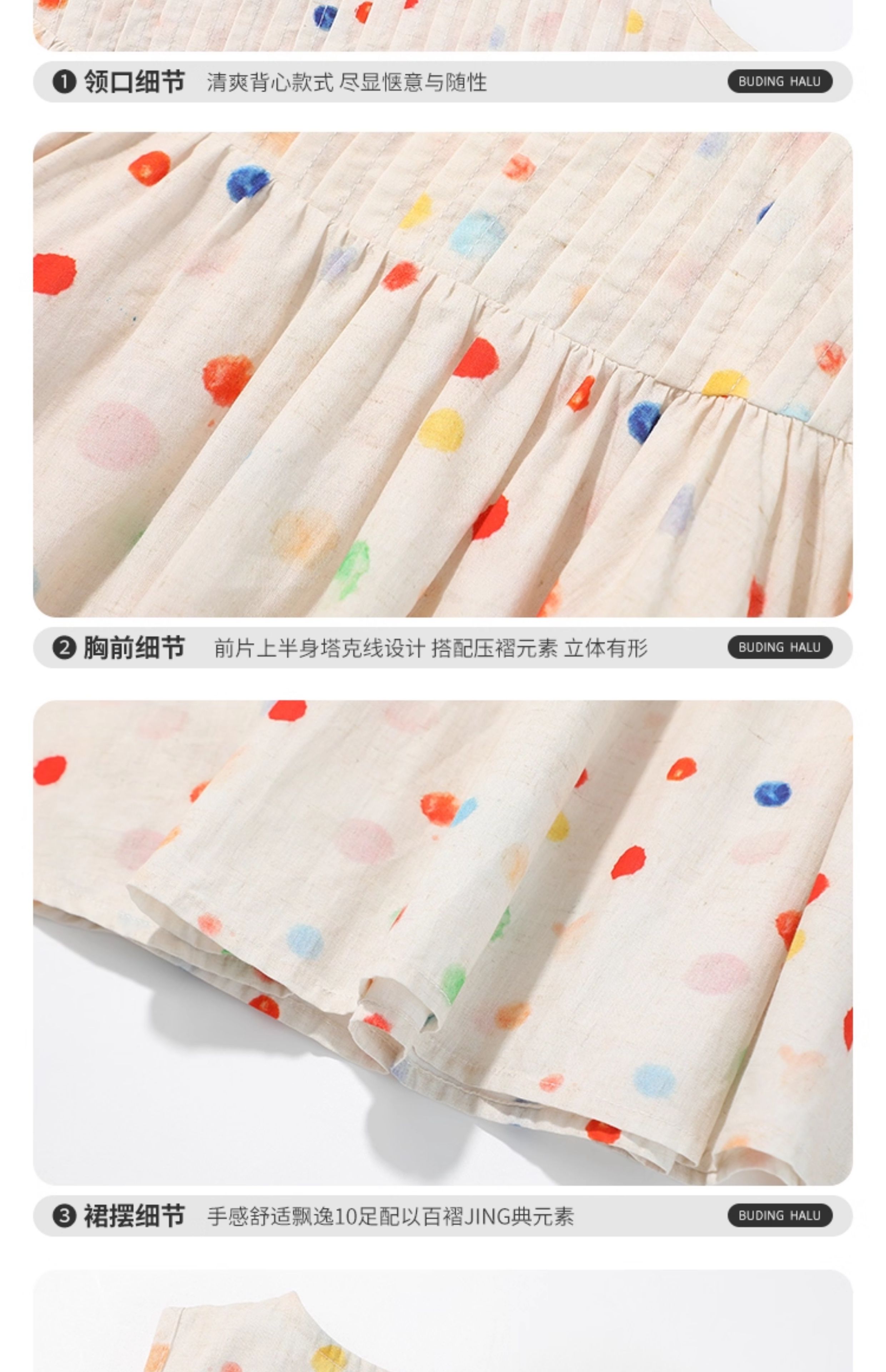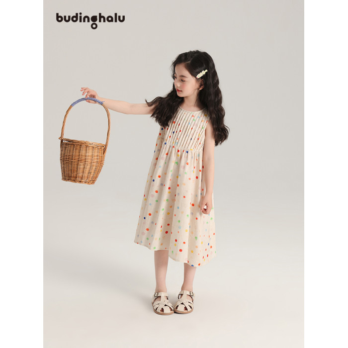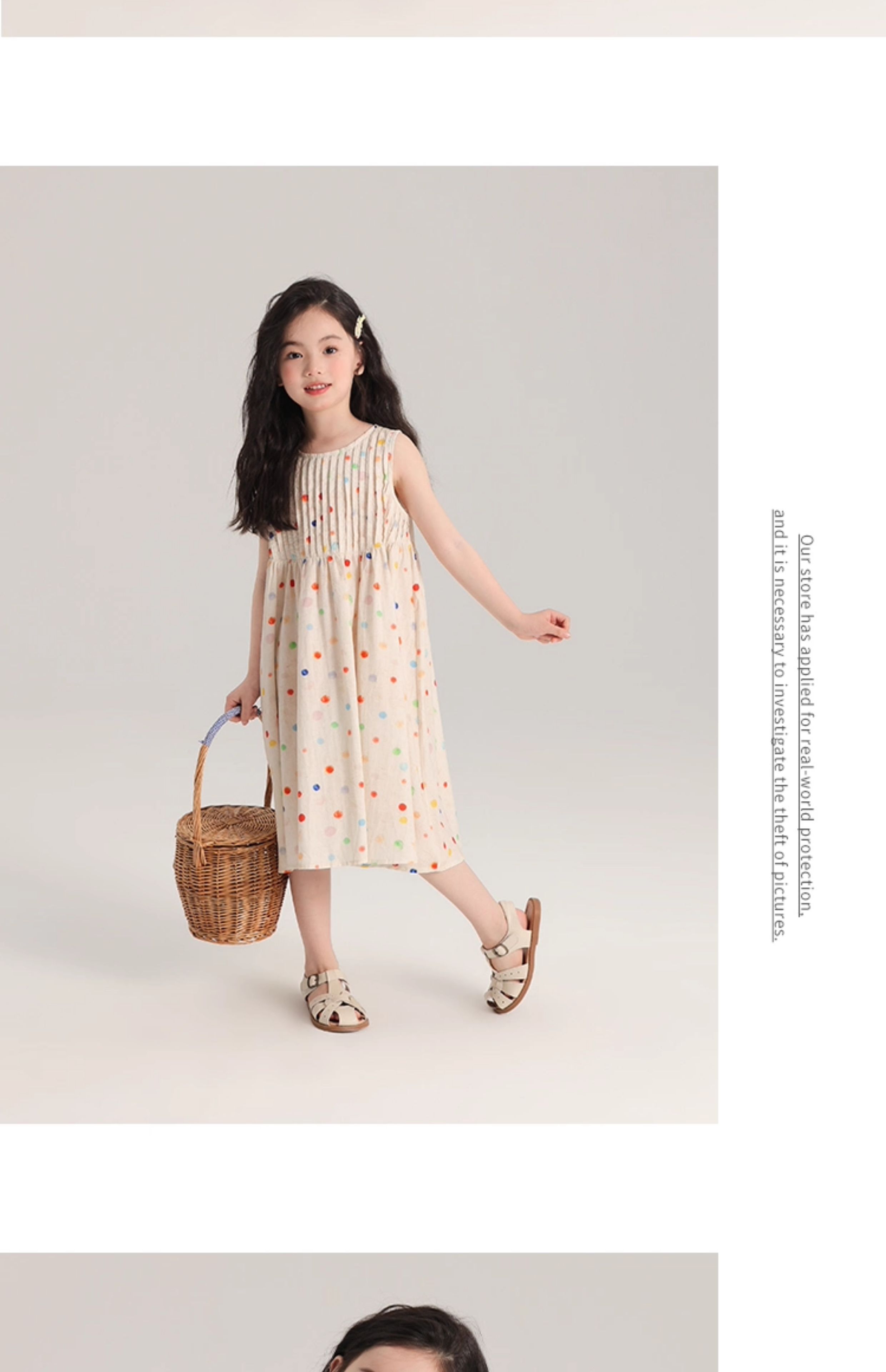 布丁哈魯女童洋氣長裙2025夏季新款兒童休閒無袖波點背心連衣裙子