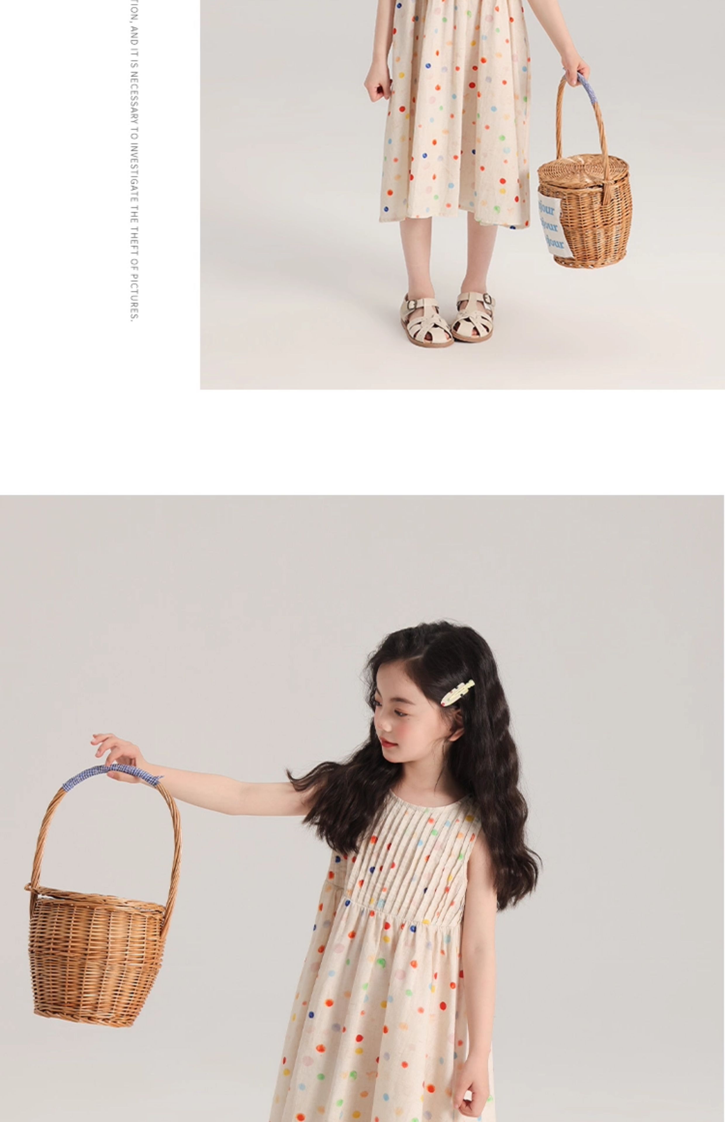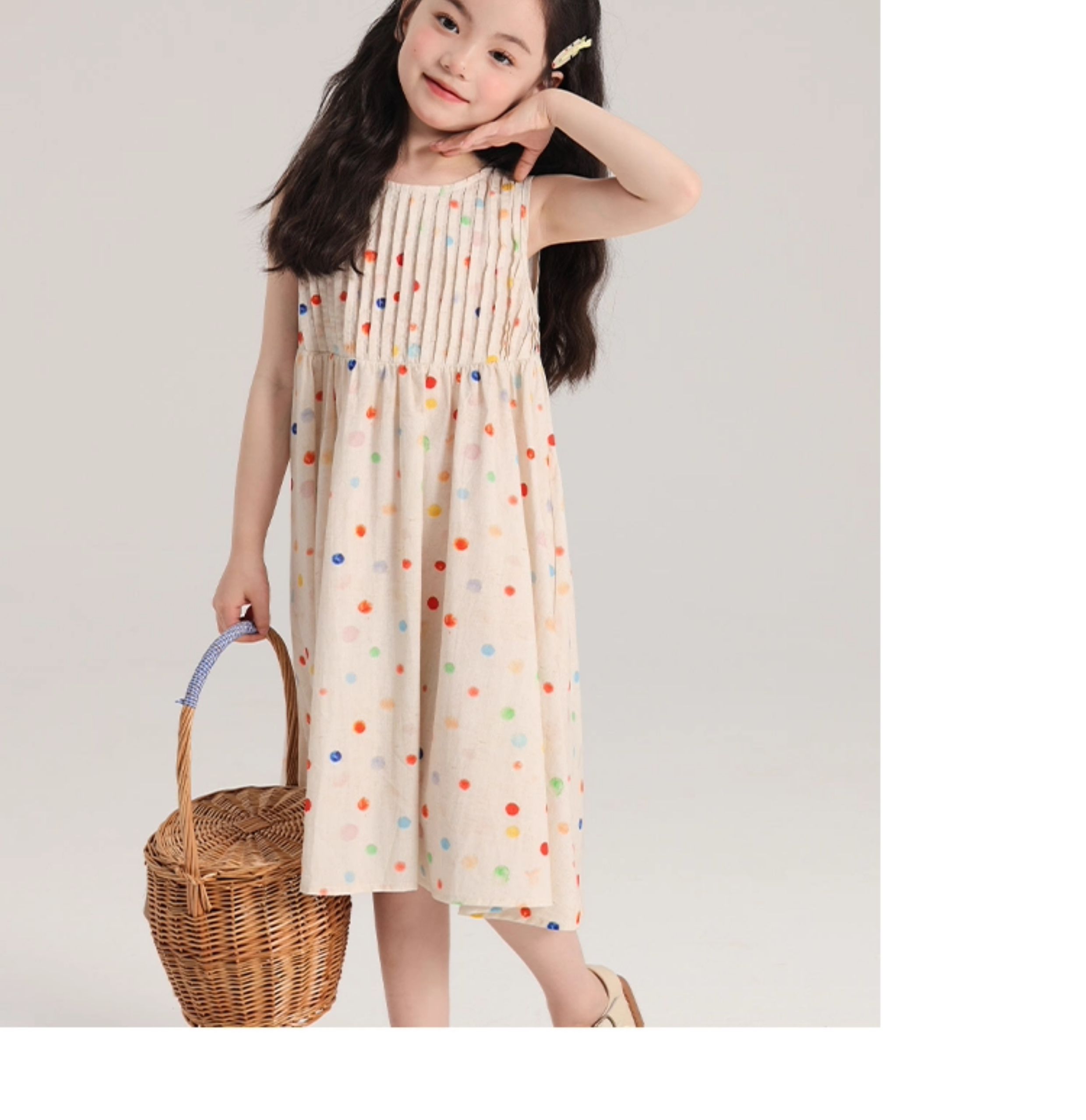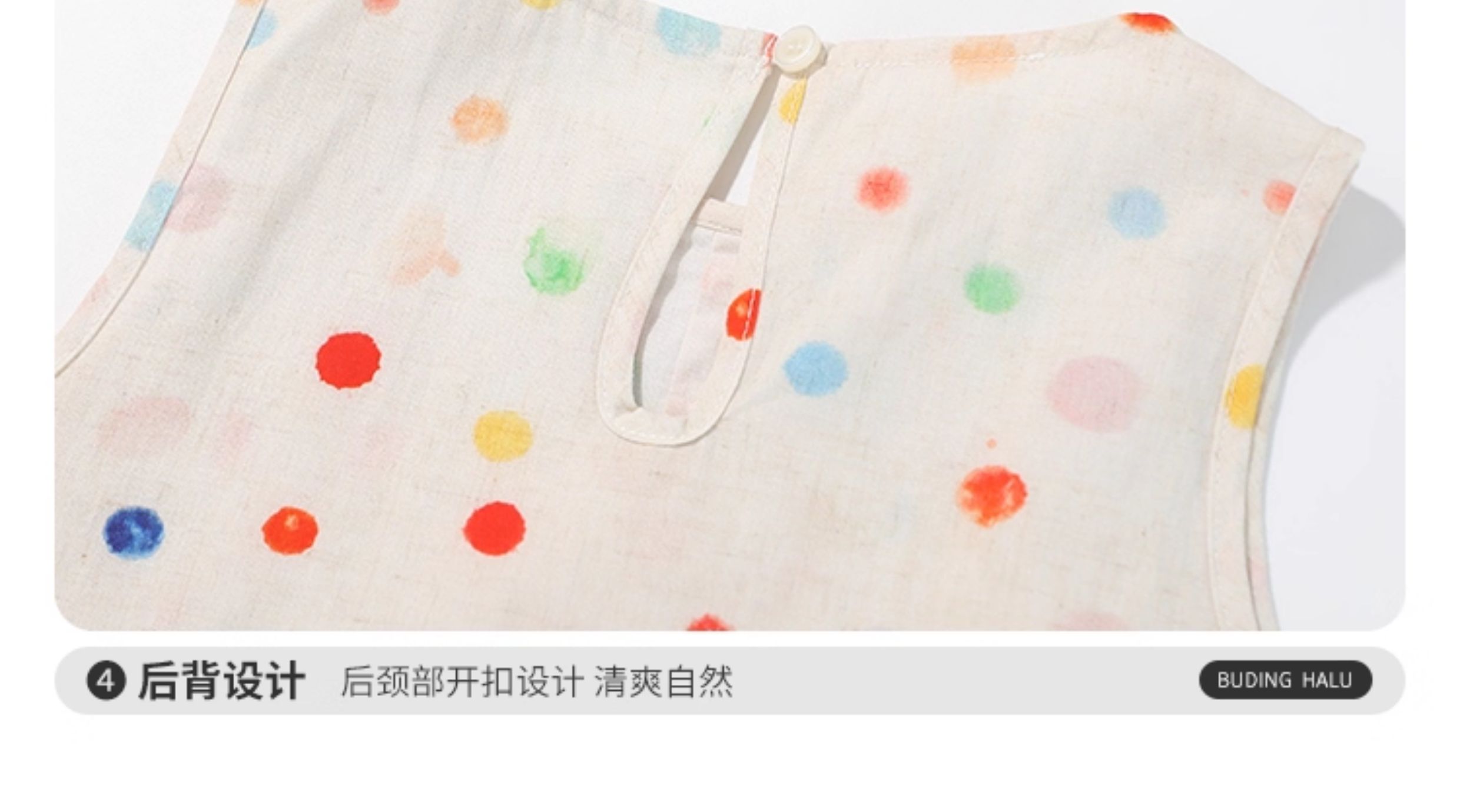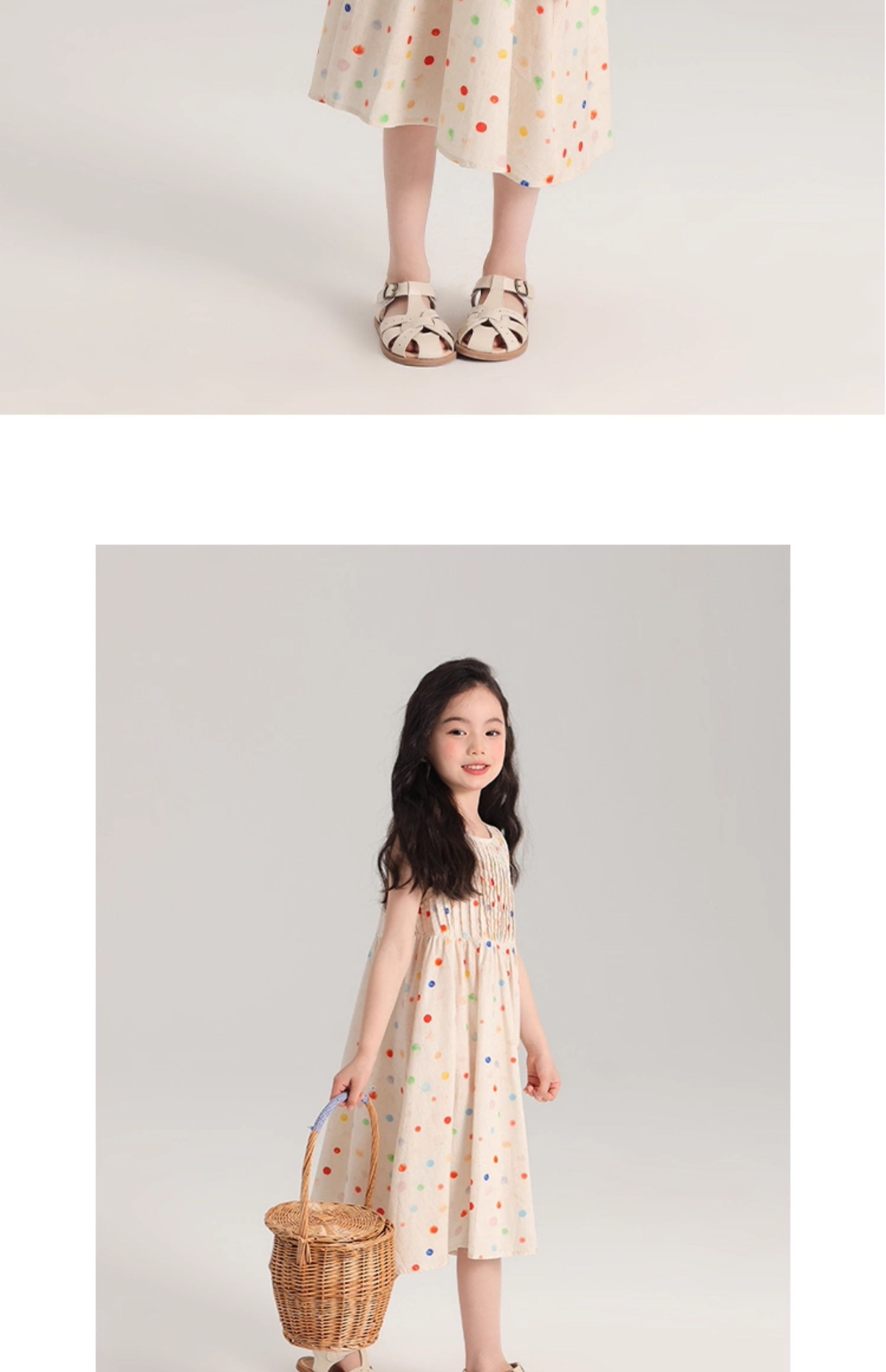 布丁哈魯女童洋氣長裙2025夏季新款兒童休閒無袖波點背心連衣裙子
