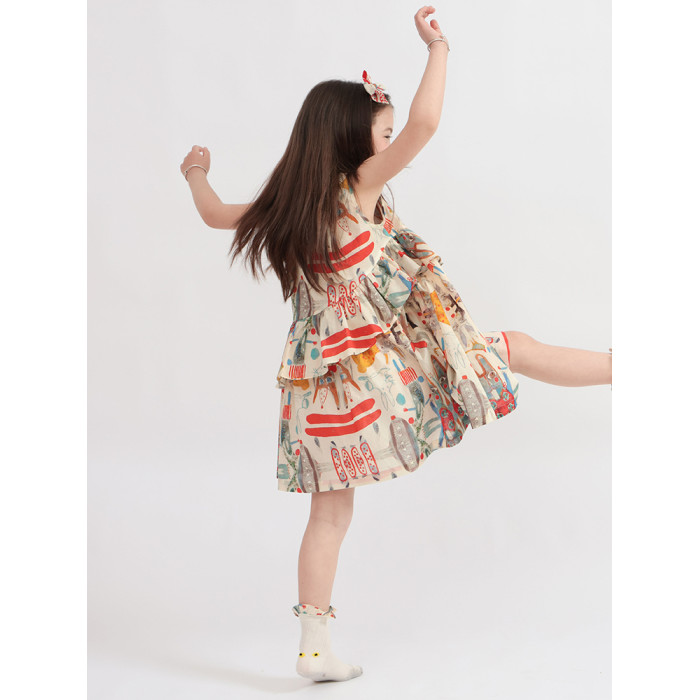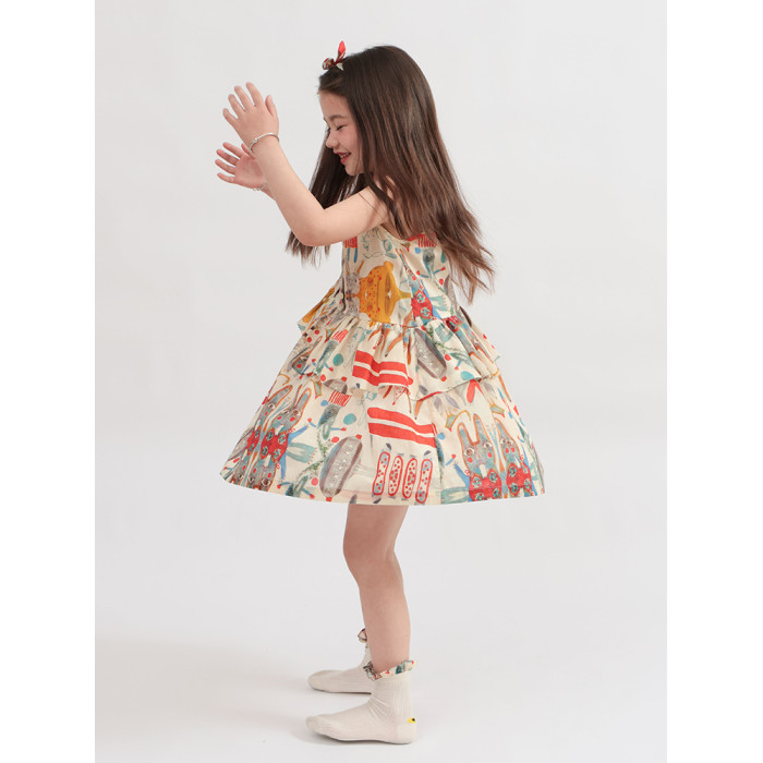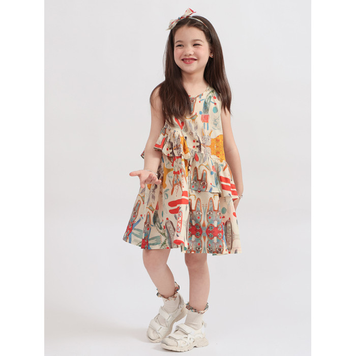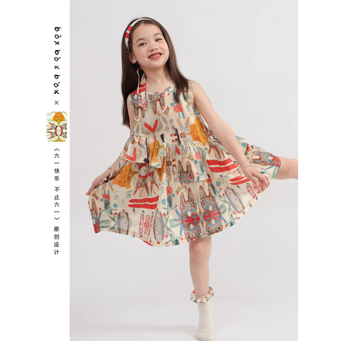 boxboxbox【兔子彩色手繪】夏季女童印花連衣裙純棉無袖童裝裙子
