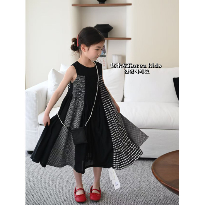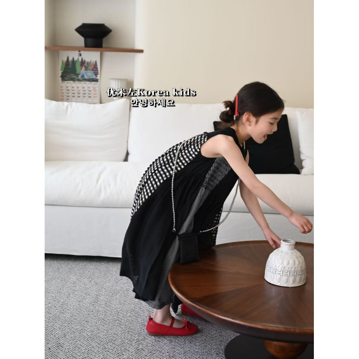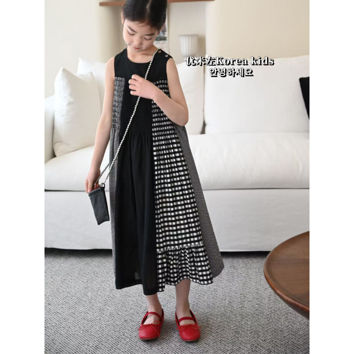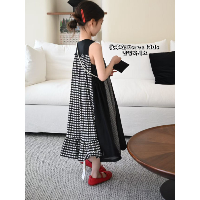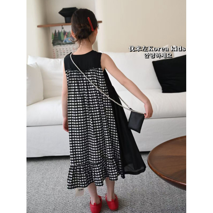復古風女童連衣裙2025新款洋氣兒童夏季格子裙童裝女孩夏裝背心裙