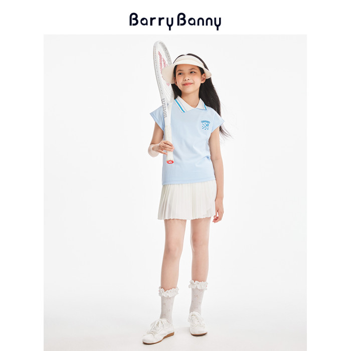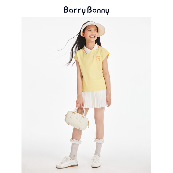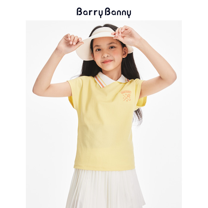 BarryBanny女童運動polo衫夏季新款兒童翻領純色簡約短袖T恤上衣
