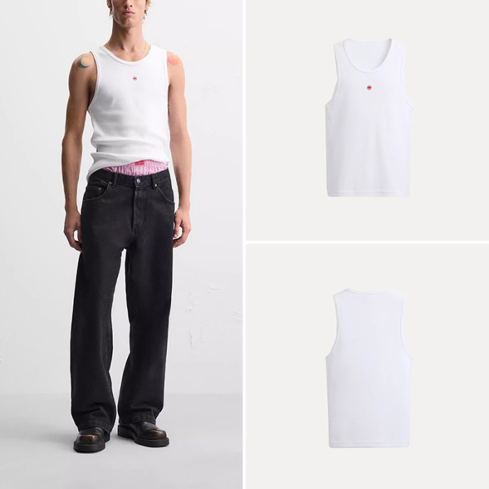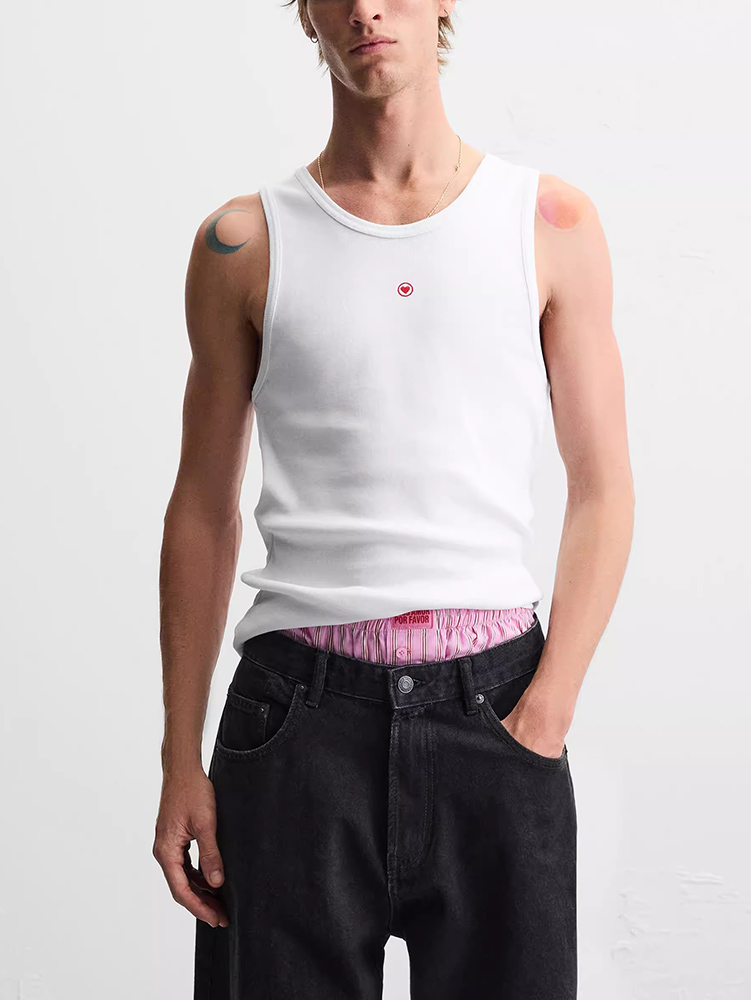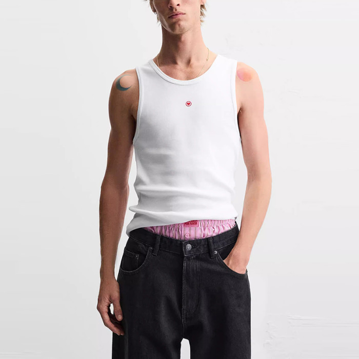 櫃199!春季新款男裝時尚情人節禮物心形飾修身背心T恤 0722411