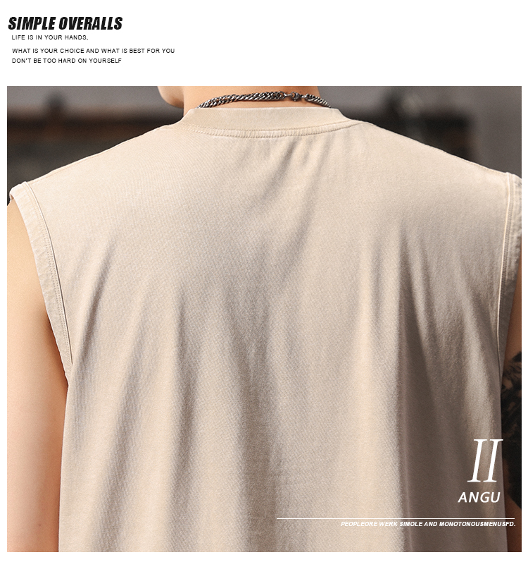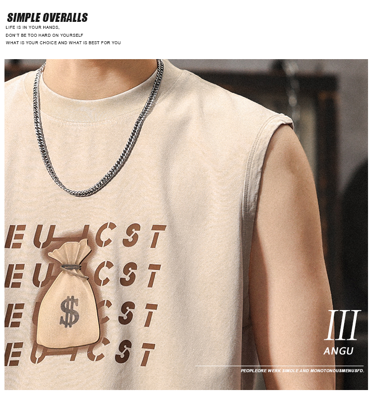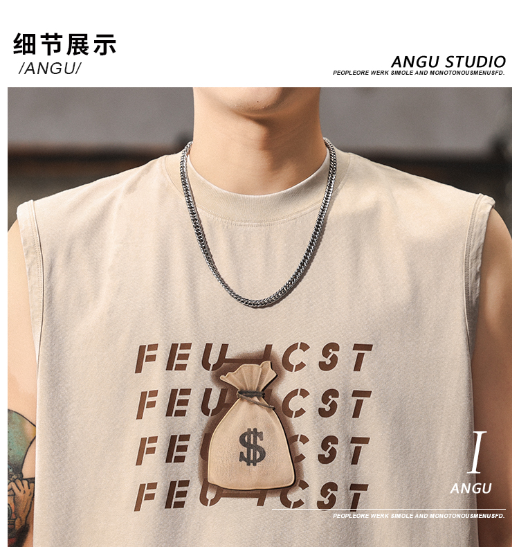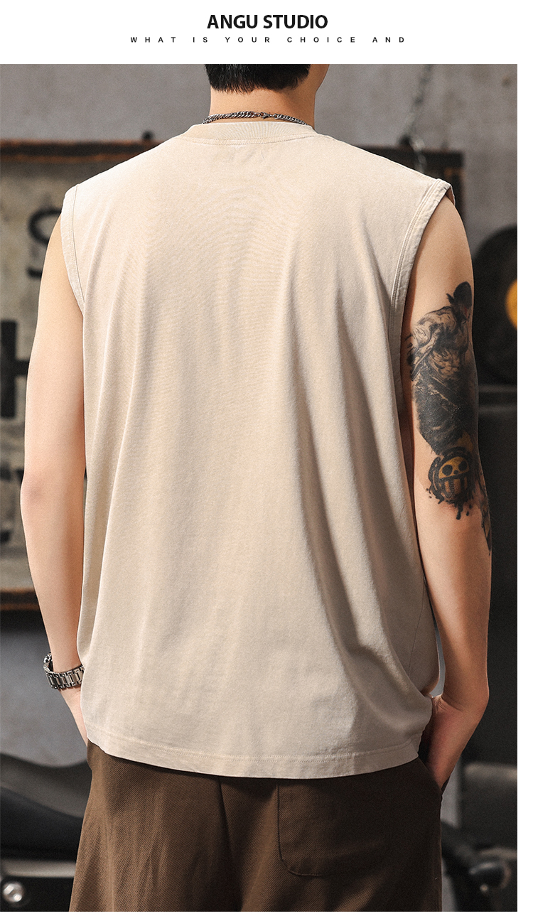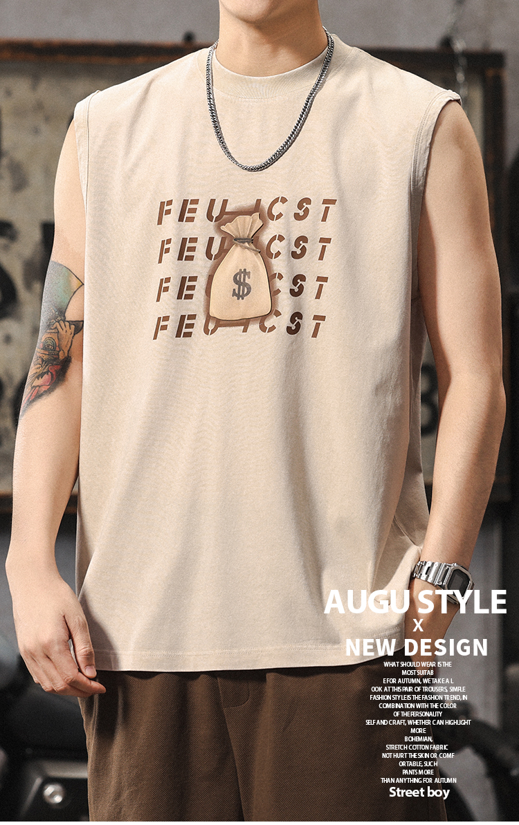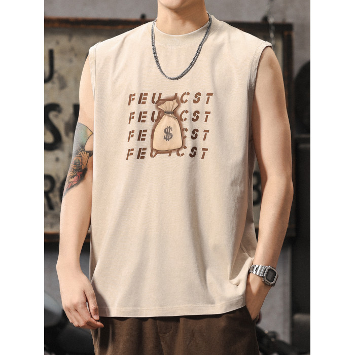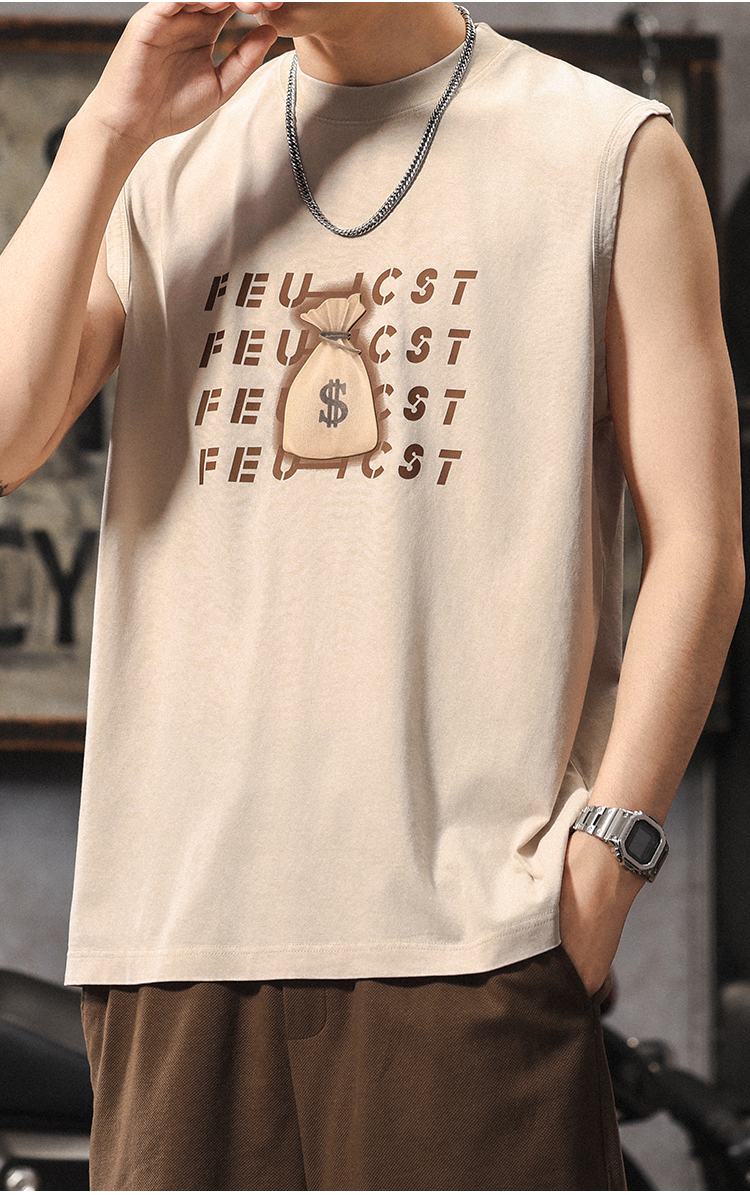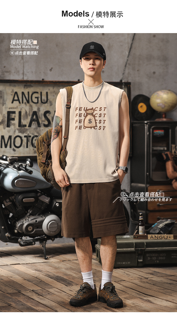夏季新款無袖t恤男士時尚潮流寬松美式復古印花休閒大碼運動背心