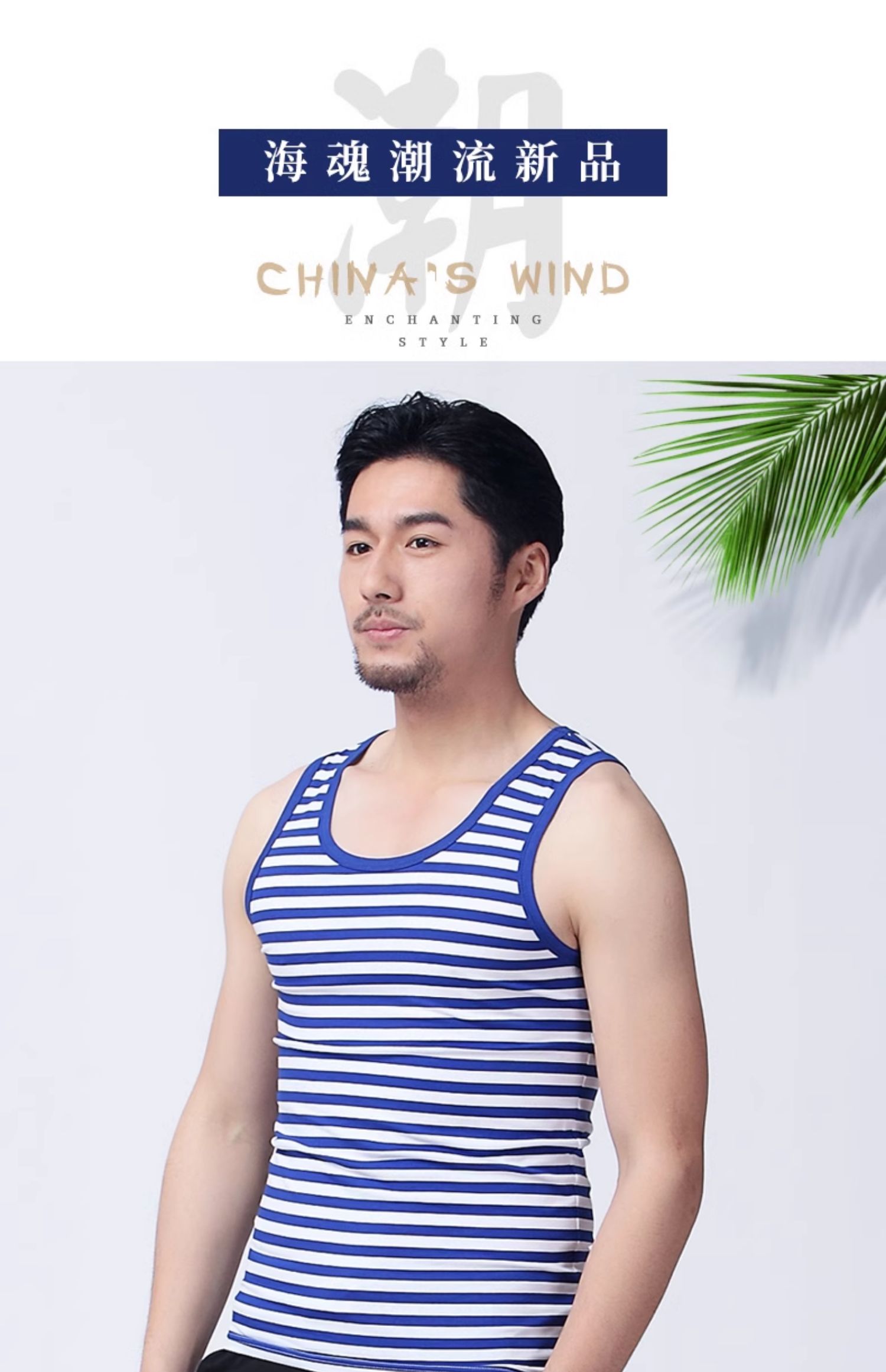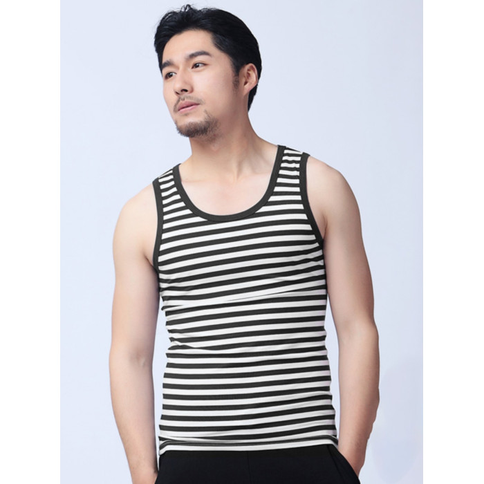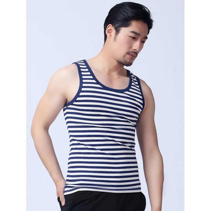 男款春夏休閒舒適無袖背心條紋衫 沙灘運動 夏季青年海魂衫