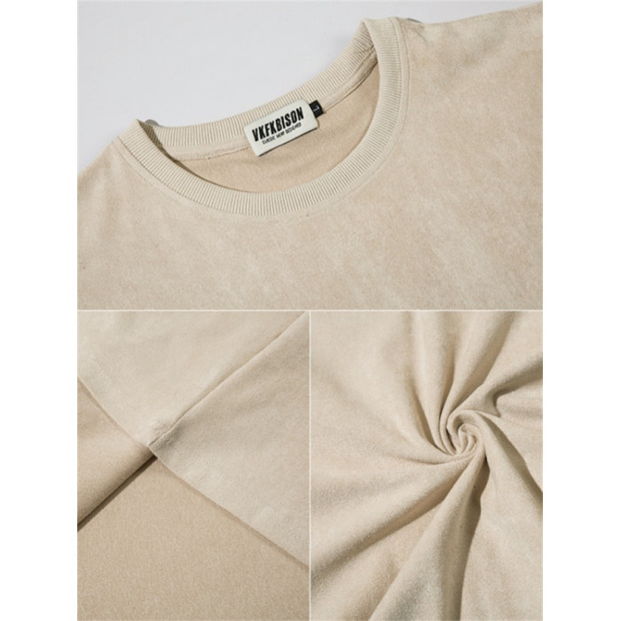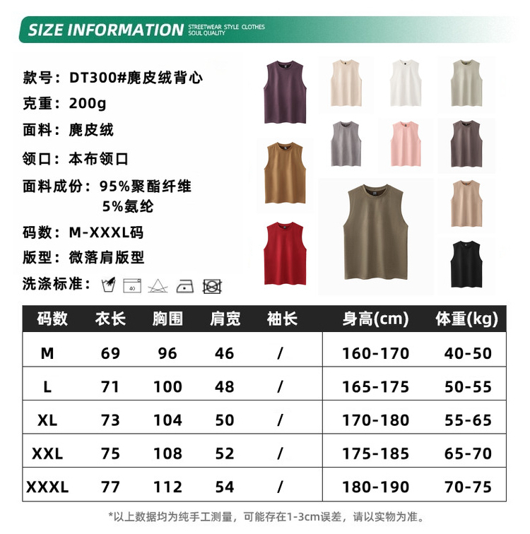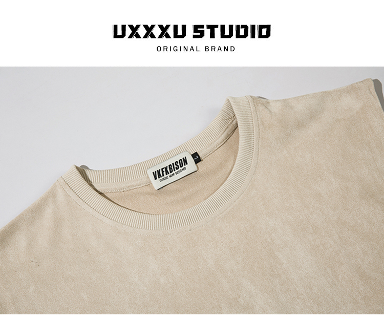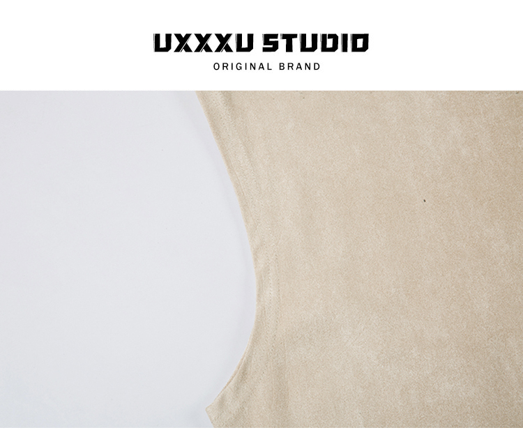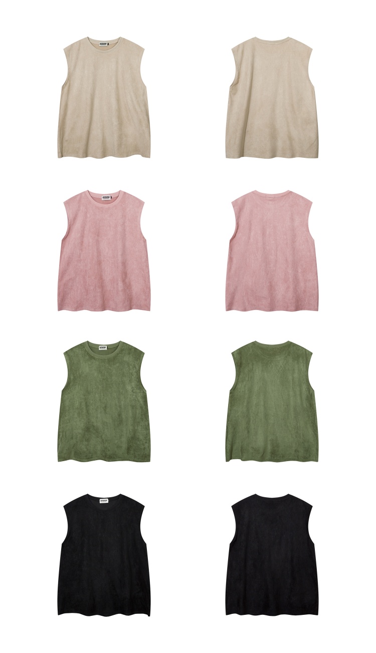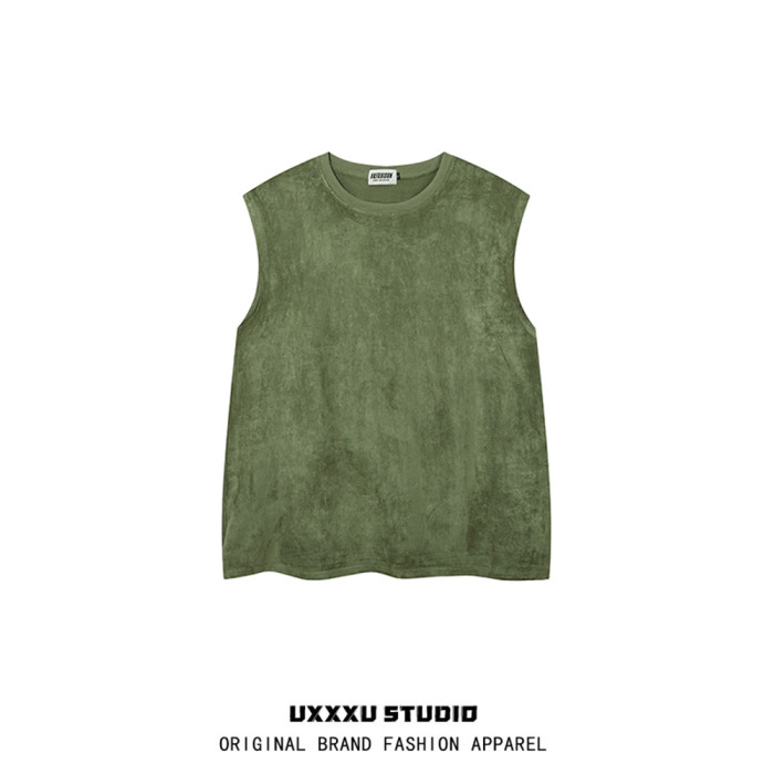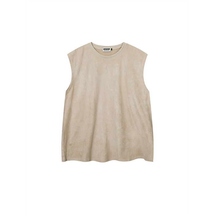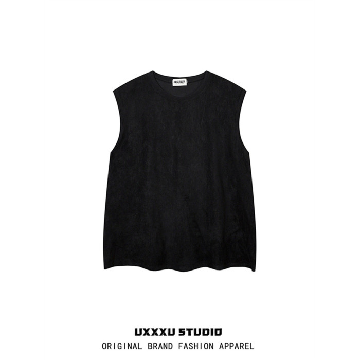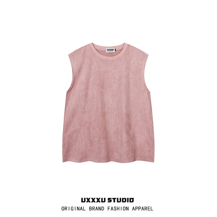 美式多巴胺純色寬松無袖背心男女夏季潮牌簡約麂皮絨百搭T恤上衣