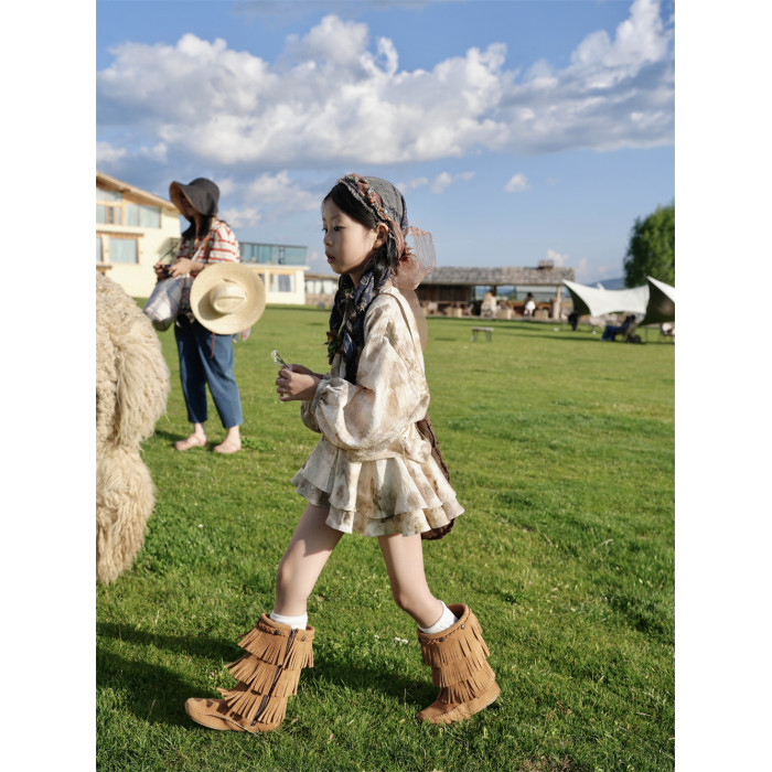 TOUKIDS2025夏新款天絲棉潑墨兒童連衣裙女童碎花裙百搭西北度假