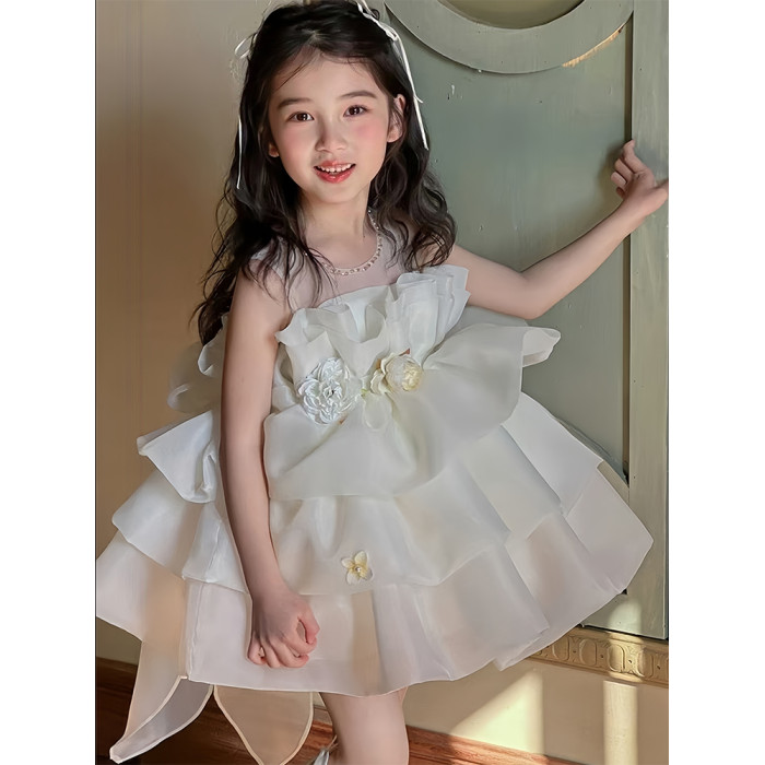 女童公主裙夏季2025新款女寶吊帶蓬蓬裙公主裙禮服甜美裙子生日裙