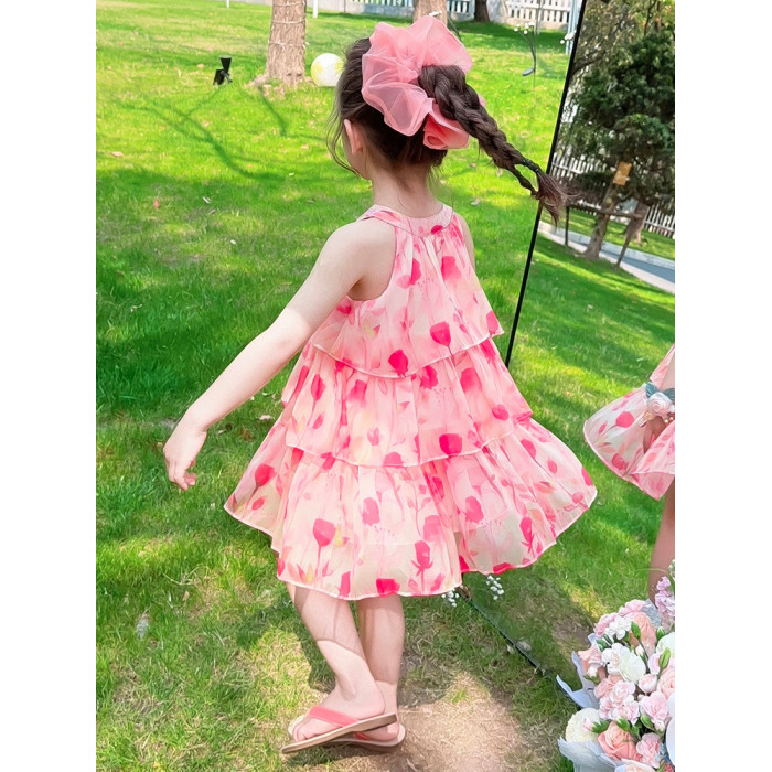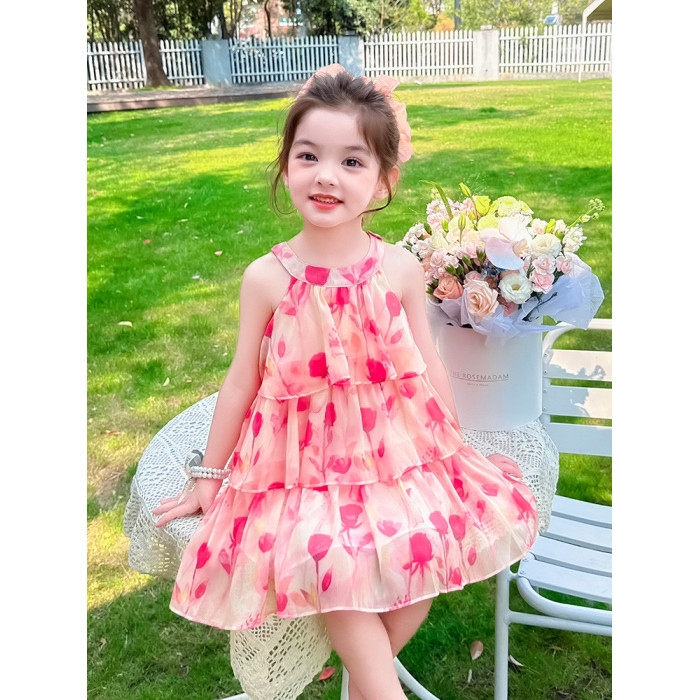 女童夏季無袖連衣裙2025新款兒童掛脖裙子女寶公主夏款吊帶裙紗裙