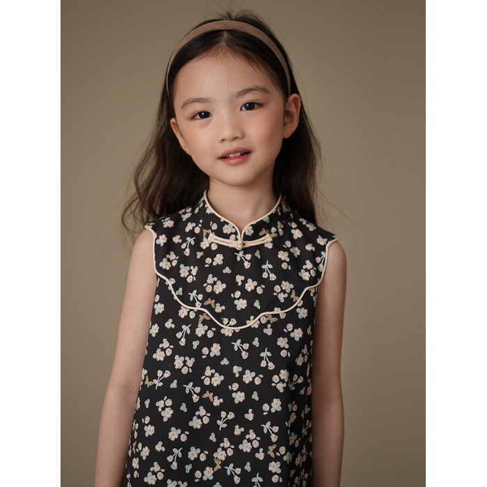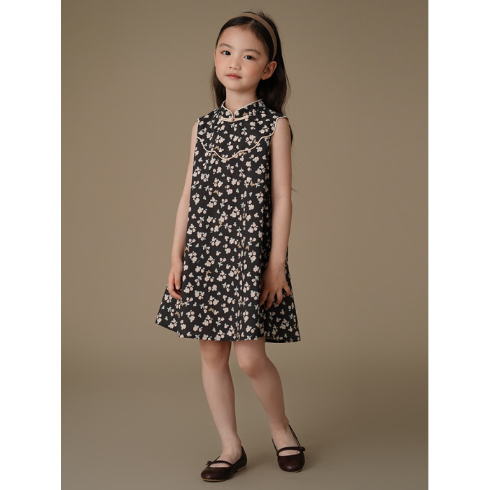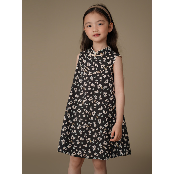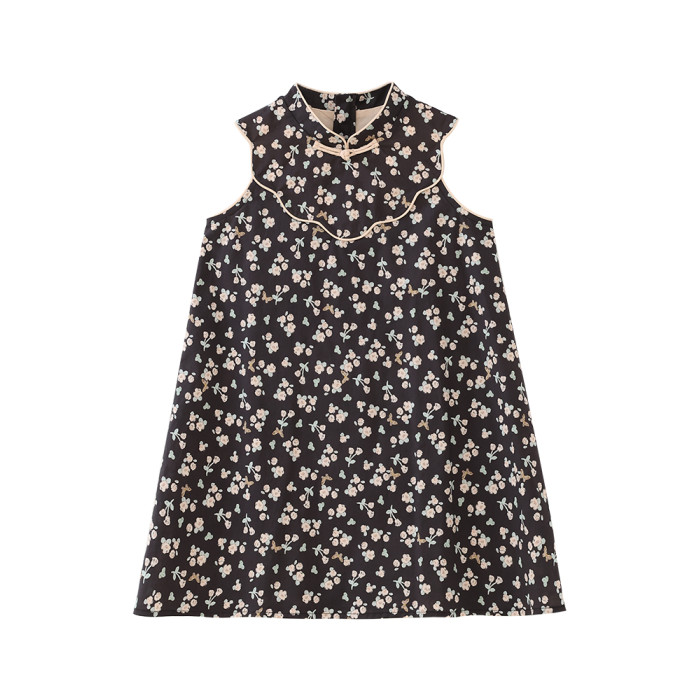 哈齒童裝夏季兒童碎花連衣裙女童新中式背心裙女孩夏裝簡約高級感