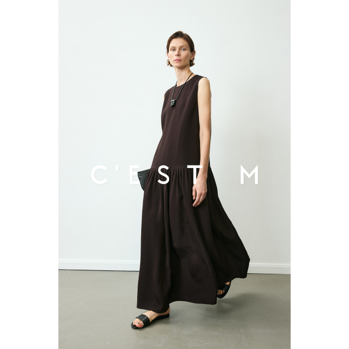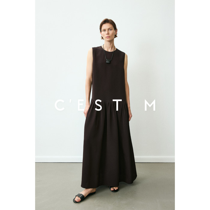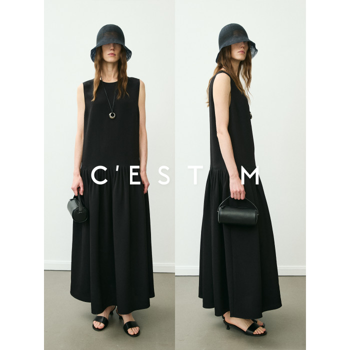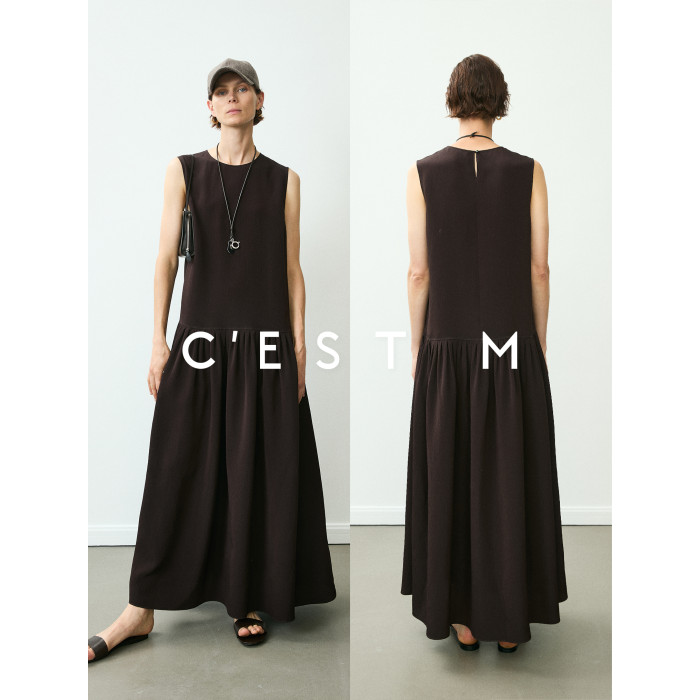 CEST M丨重磅微皺肌理感醋酸 藝術靈動手工捏褶無袖連衣裙