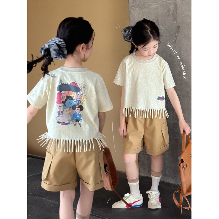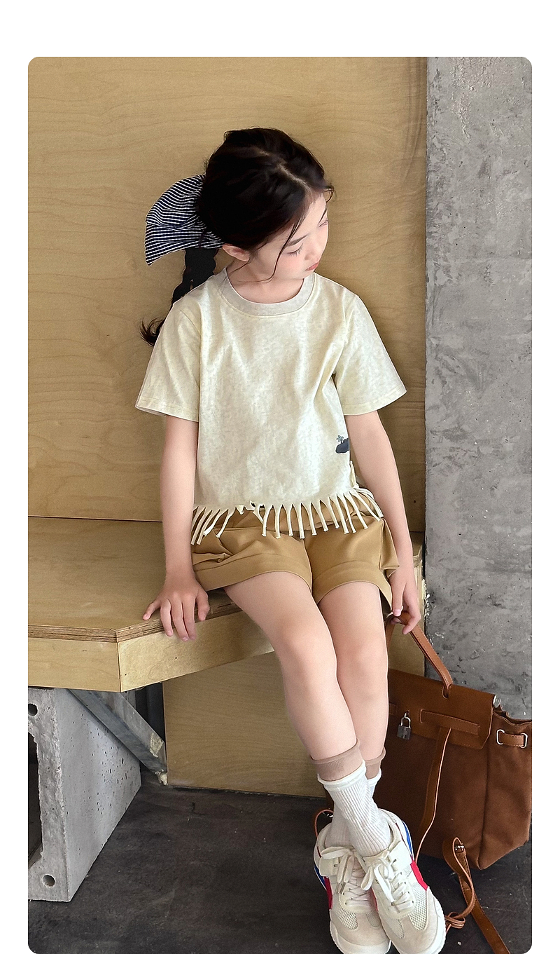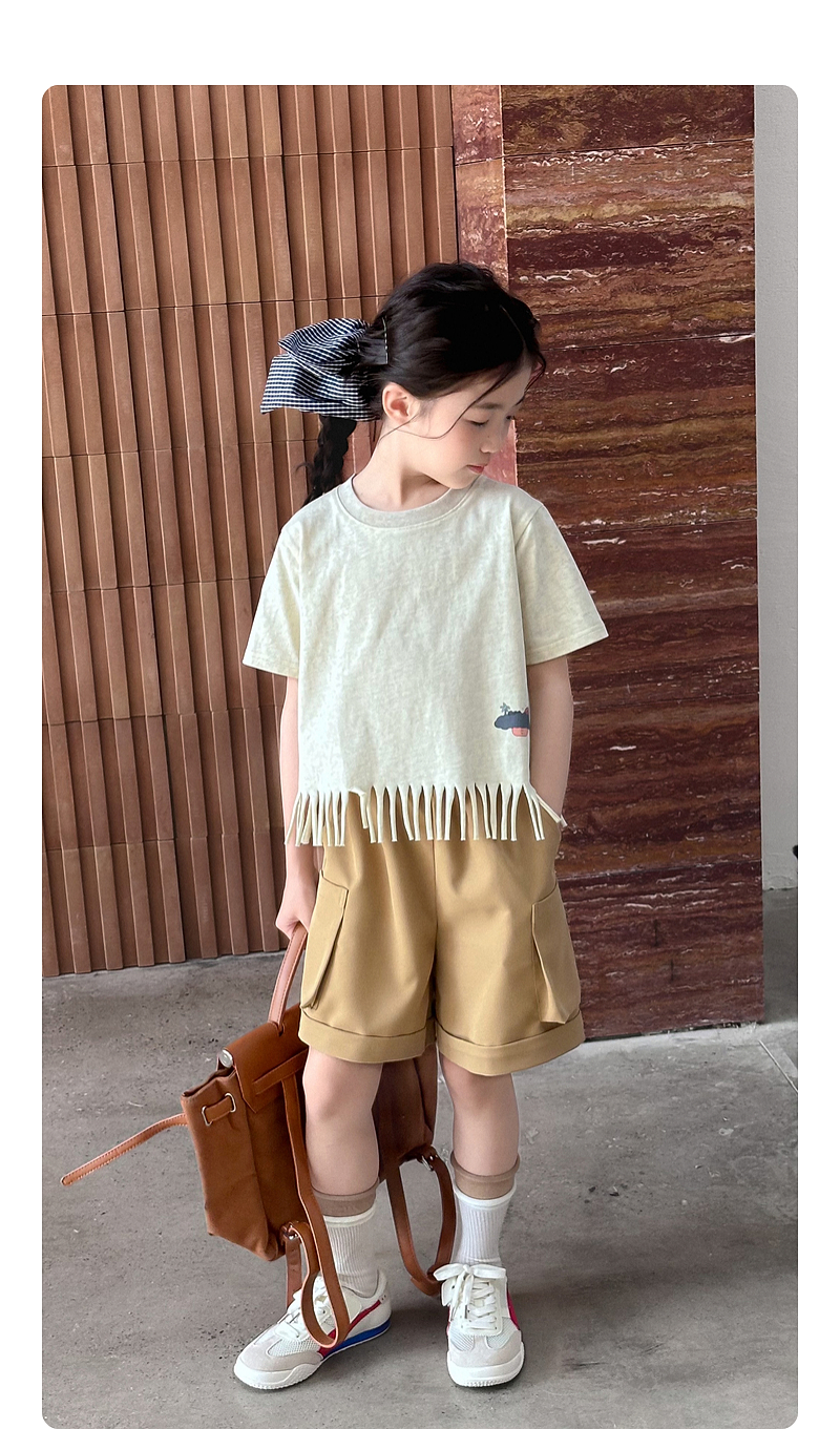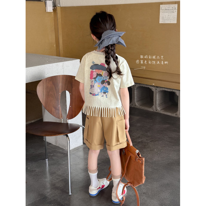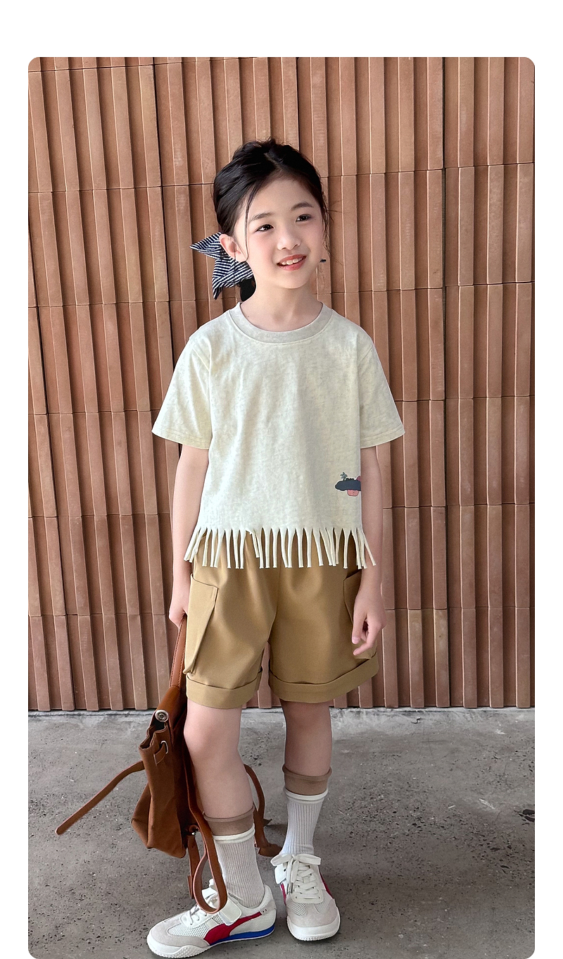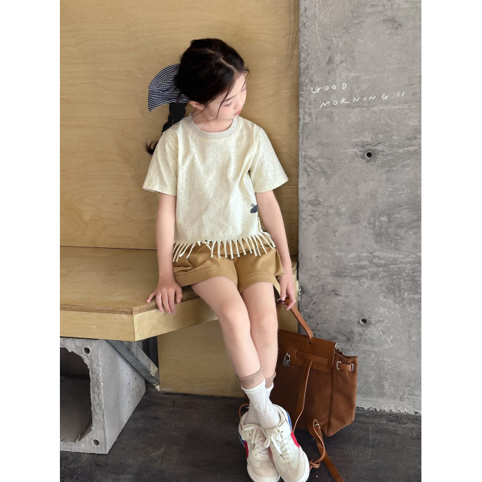 【流蘇T】藍小爸童裝女童設計感短袖夏季新款時尚兒童洋氣流蘇T恤