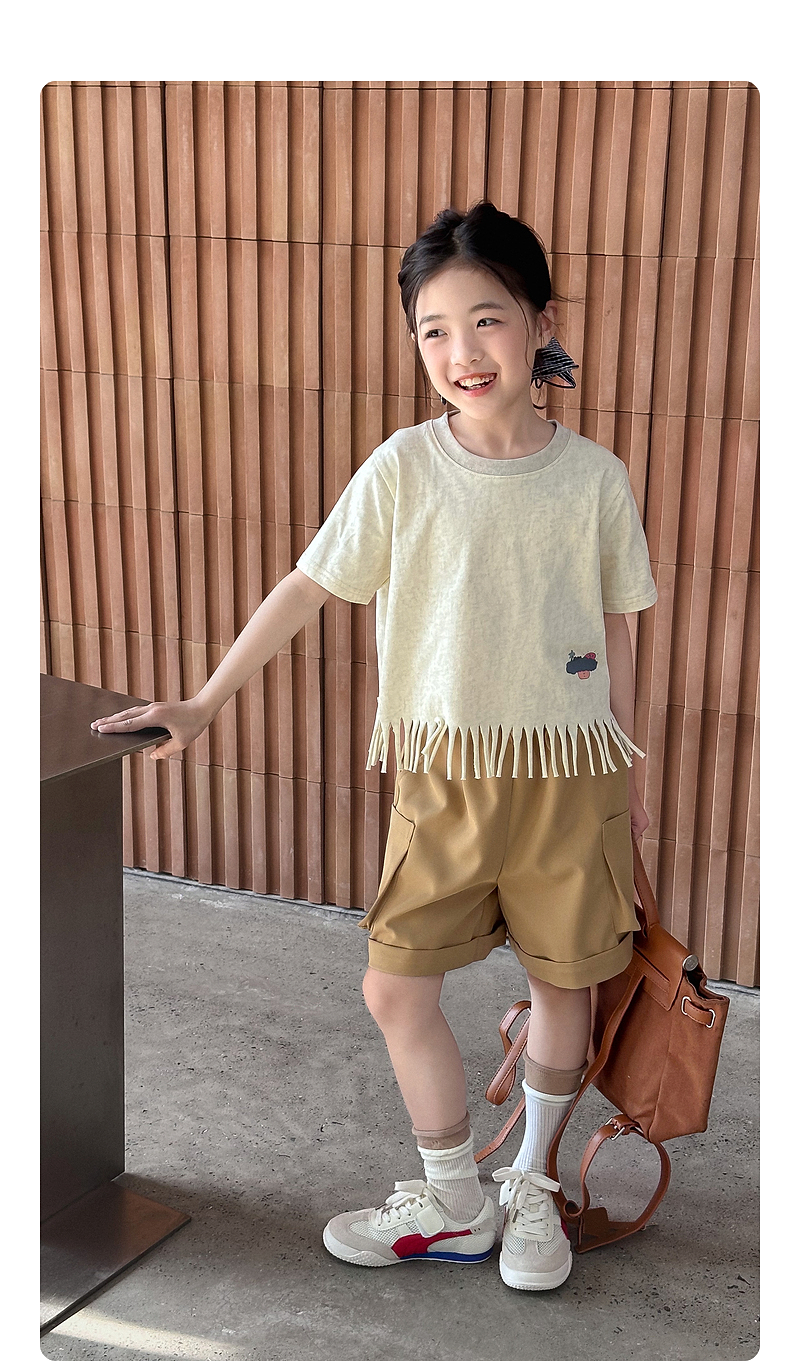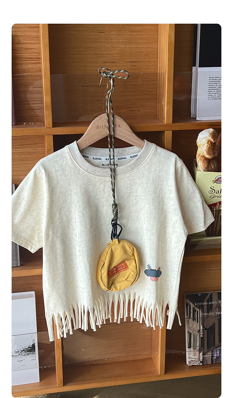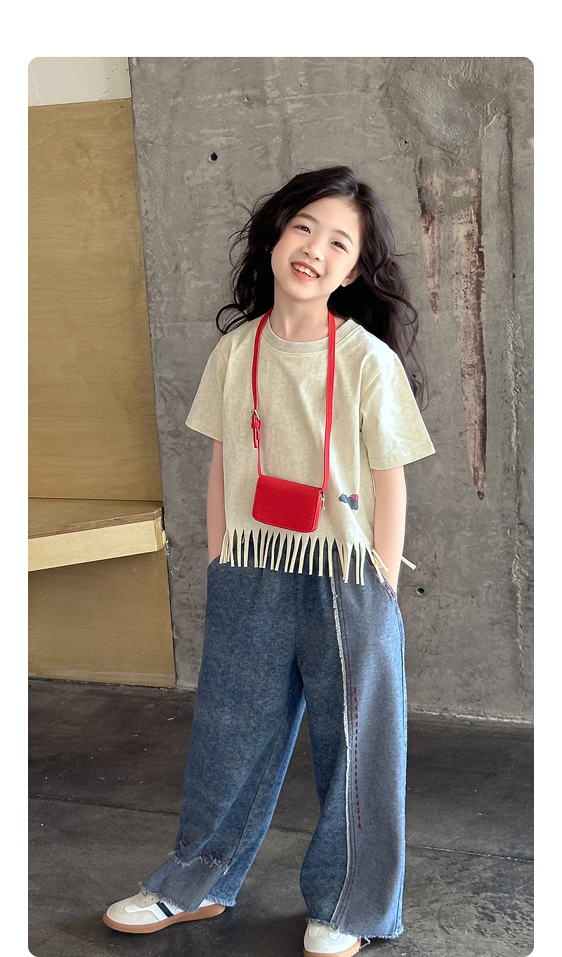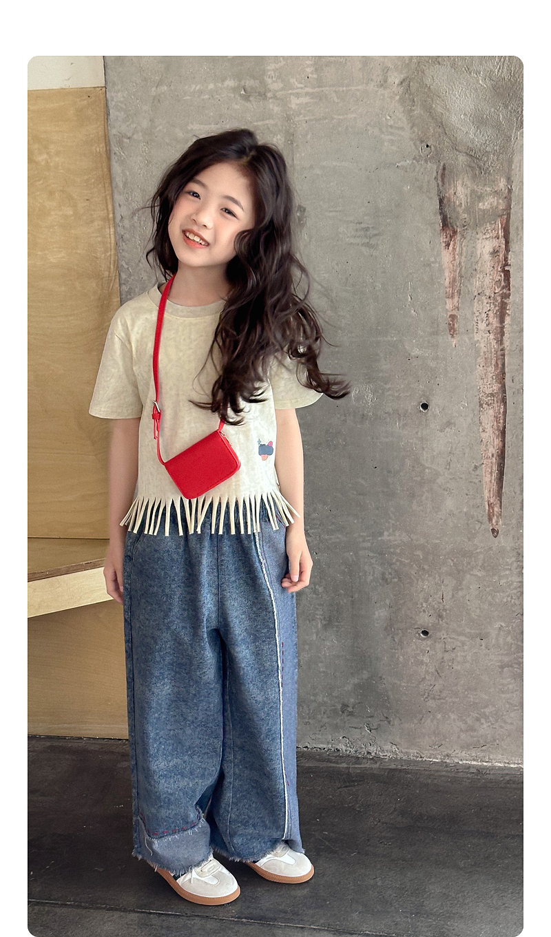 【流蘇T】藍小爸童裝女童設計感短袖夏季新款時尚兒童洋氣流蘇T恤