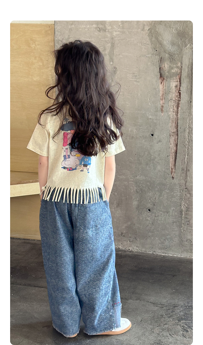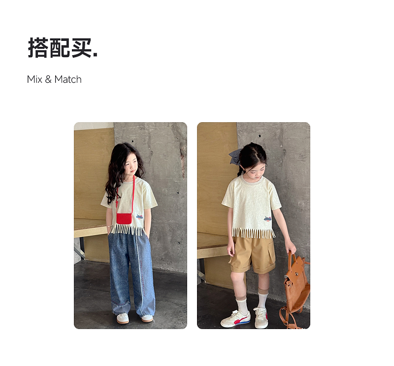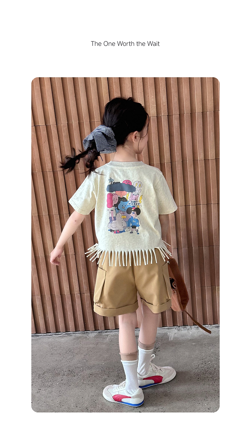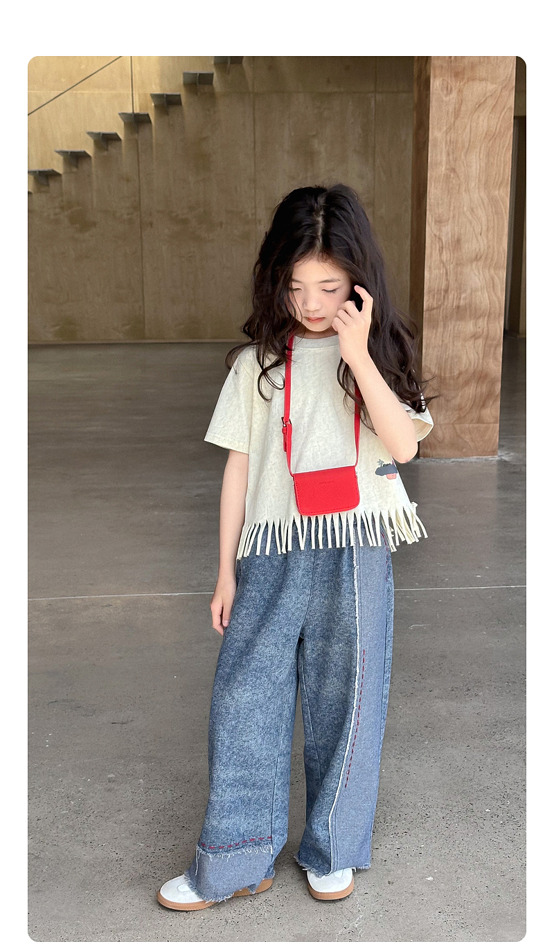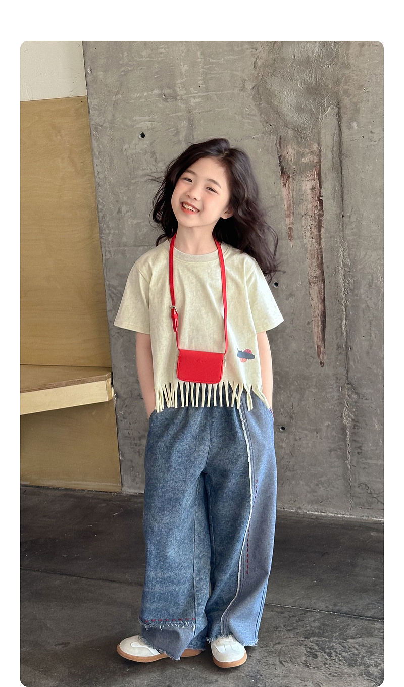 【流蘇T】藍小爸童裝女童設計感短袖夏季新款時尚兒童洋氣流蘇T恤