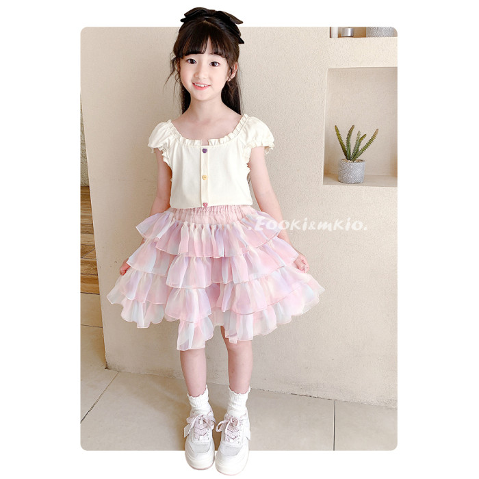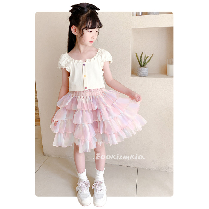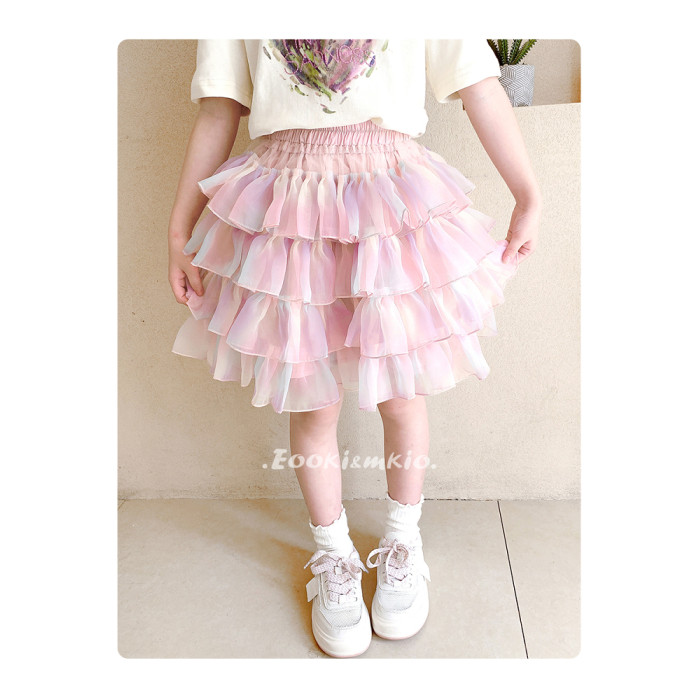 女童網紗tutu半身裙漸變百褶蛋糕裙褲短裙兒童寶寶蓬蓬裙子夏季