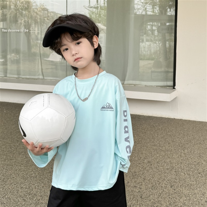 海媽家2025春夏新款長袖T恤男童兒童運動衣服速乾韓版童裝中大童