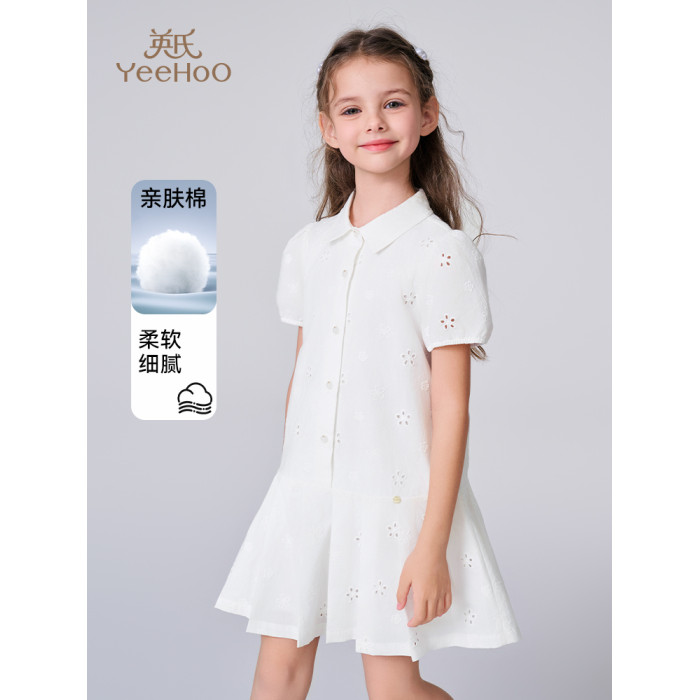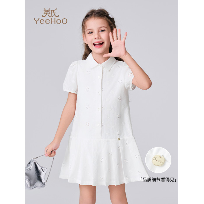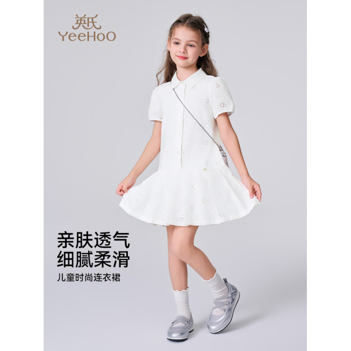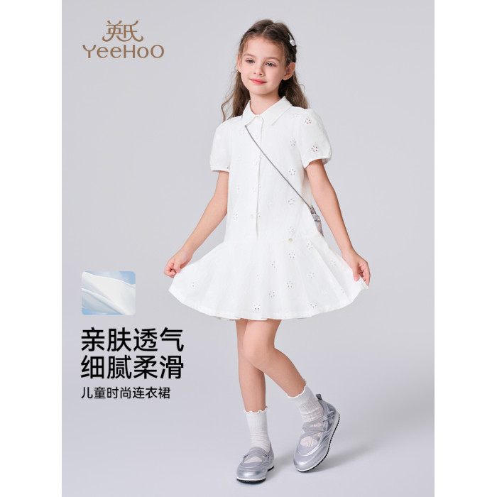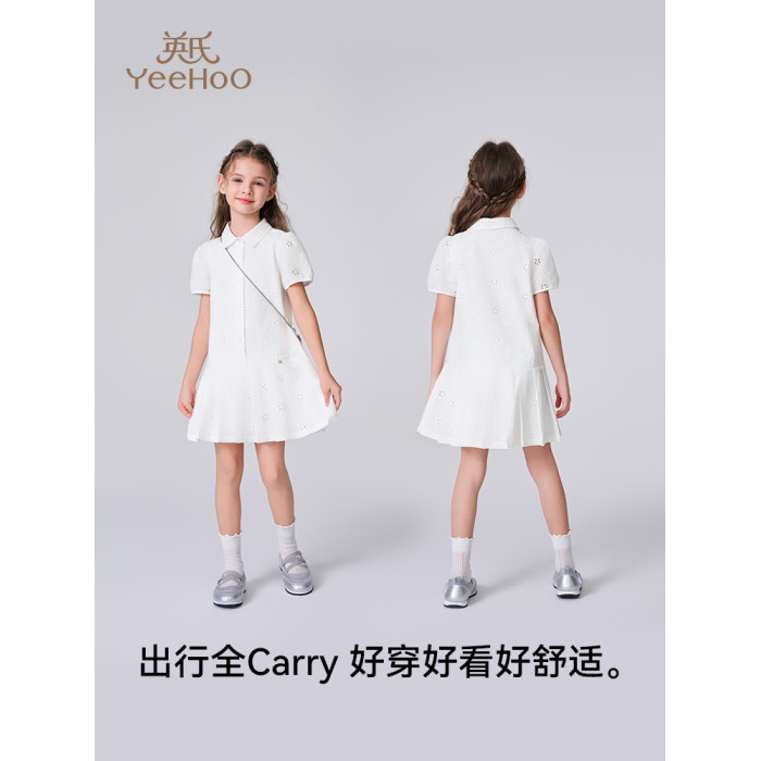英氏女童連衣裙2025夏季新款潮流休閒兒童洋氣公主裙女孩短袖裙子