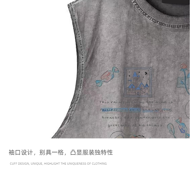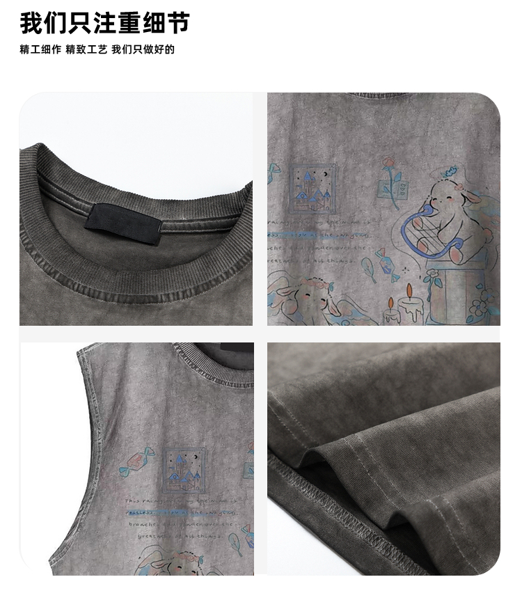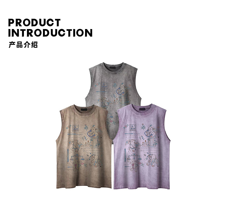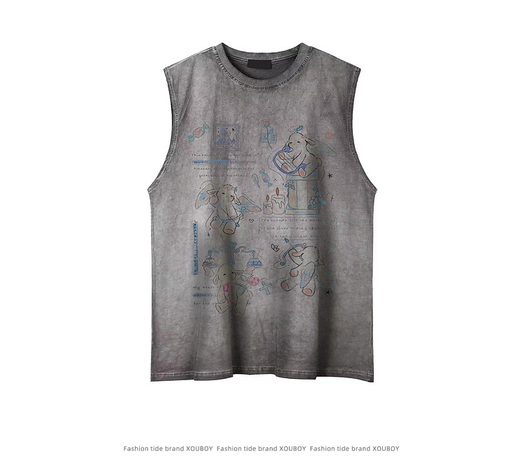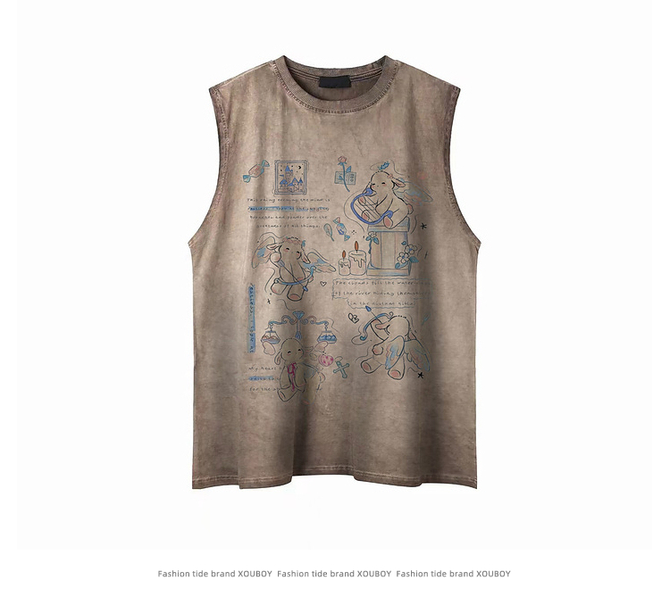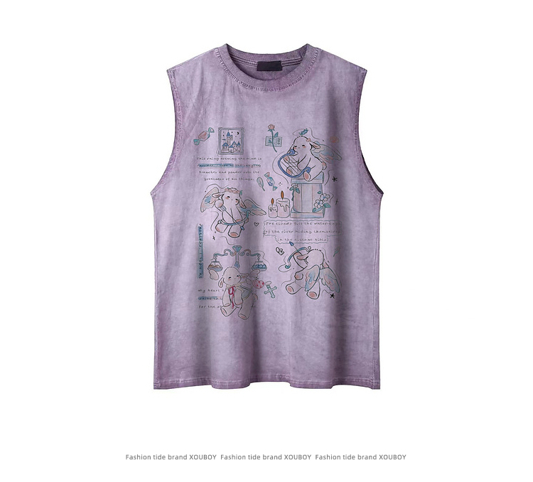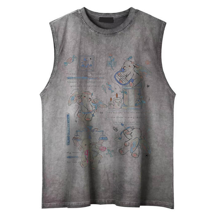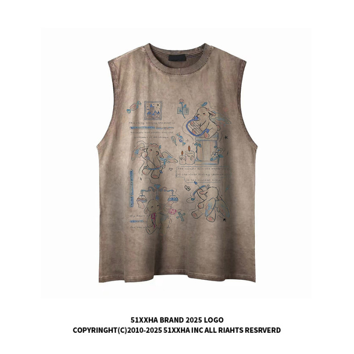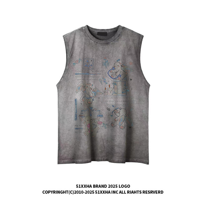 51嘻哈vintage美式復古兔子印花無袖T恤男款夏季寬松健身坎肩背心