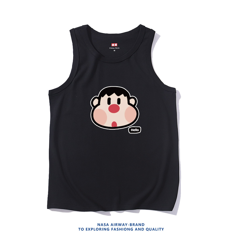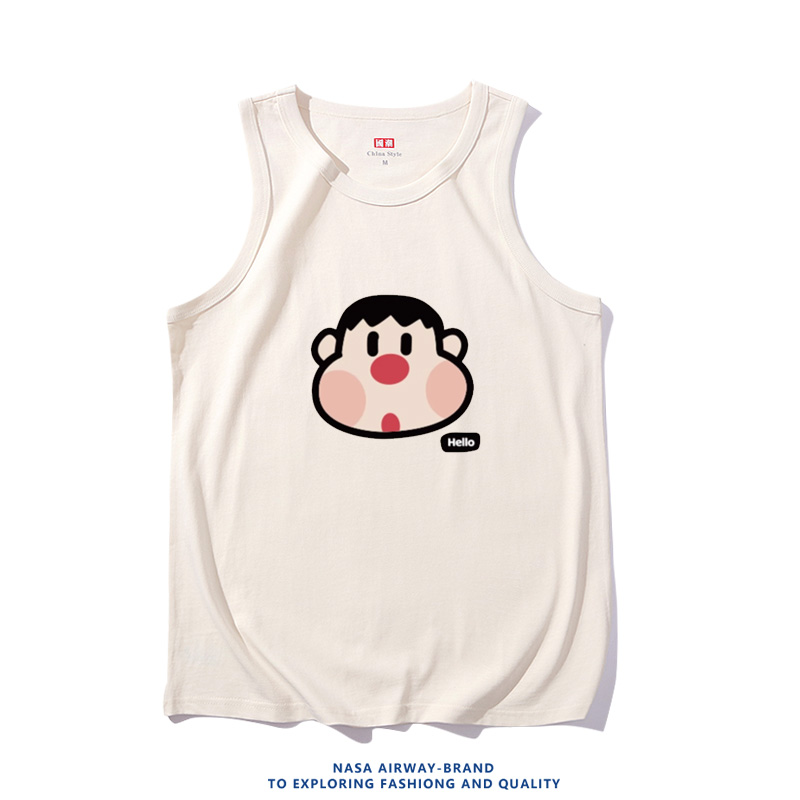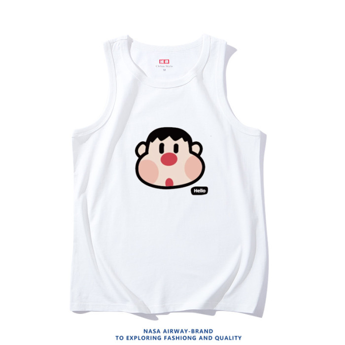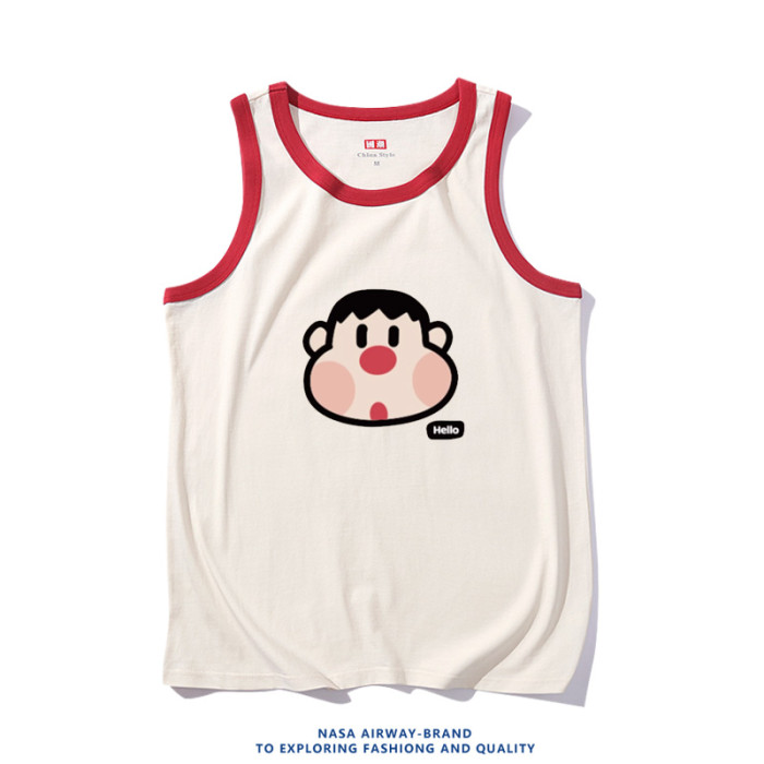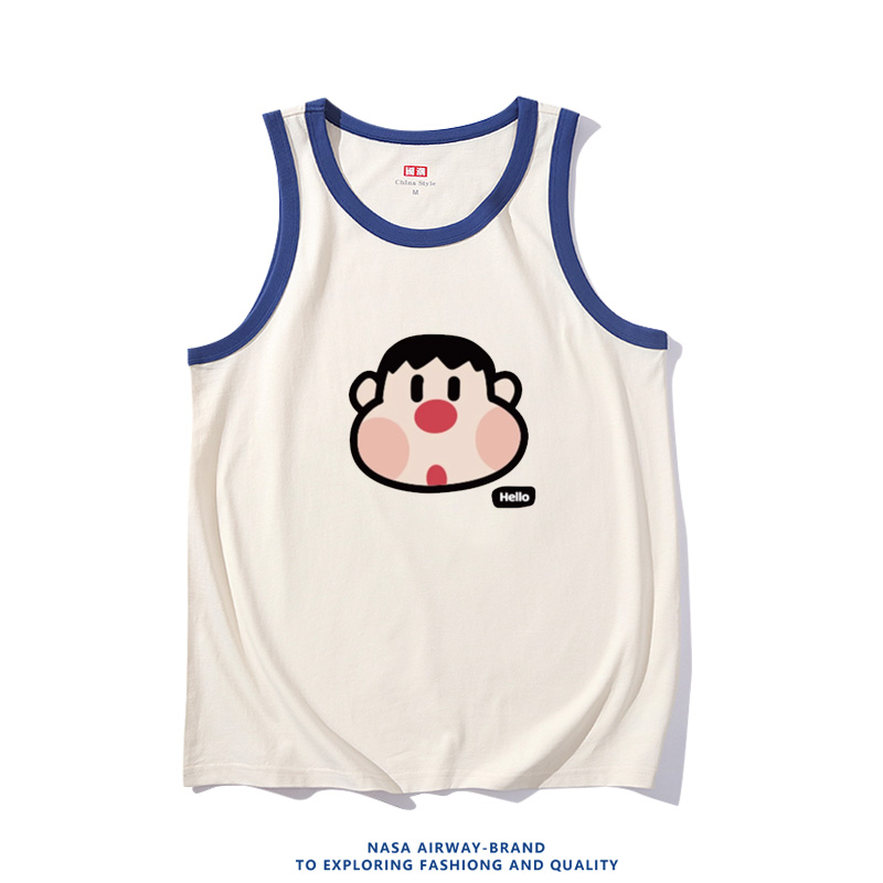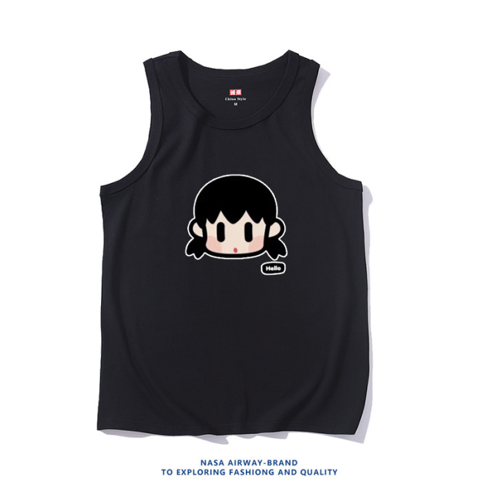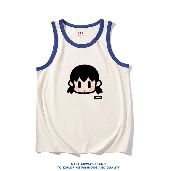 2025夏季美式潮牌胖虎靜香卡通純棉背心無袖T恤男女休閒汗衫坎肩