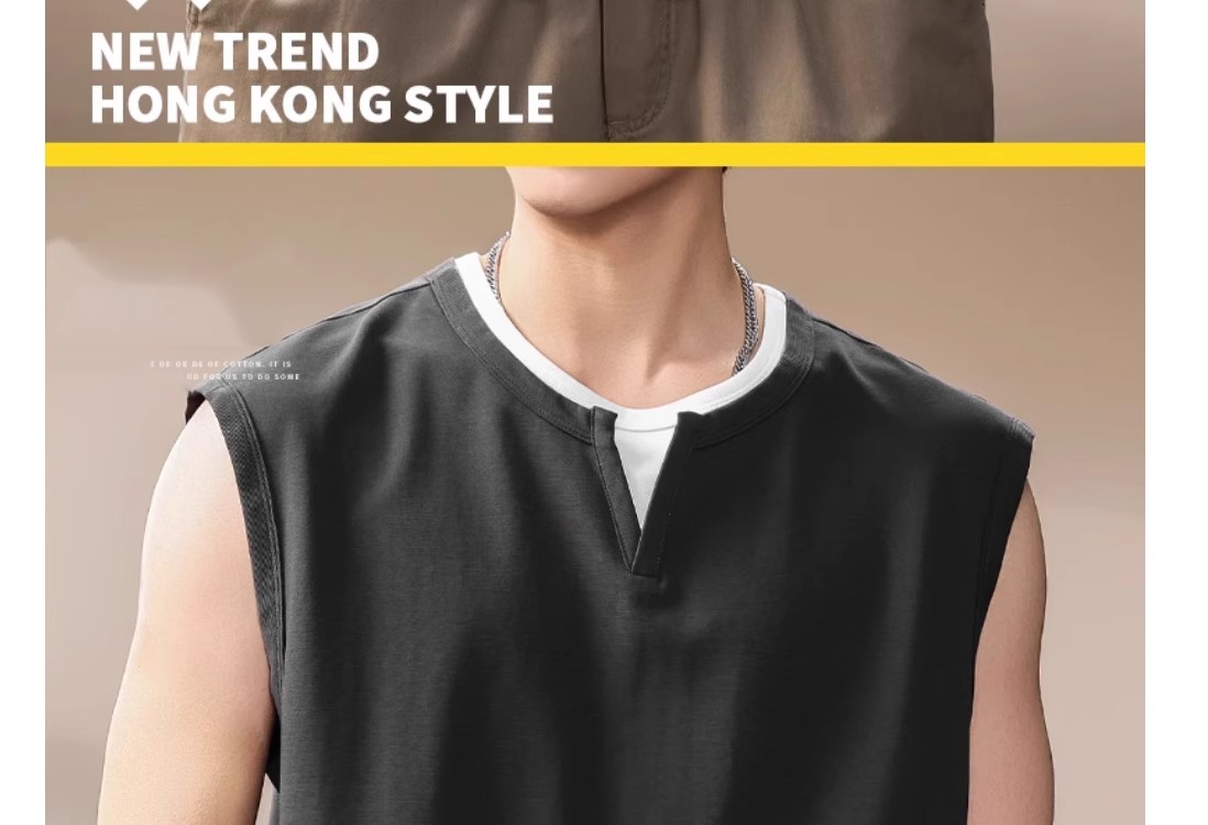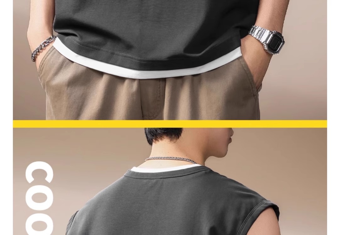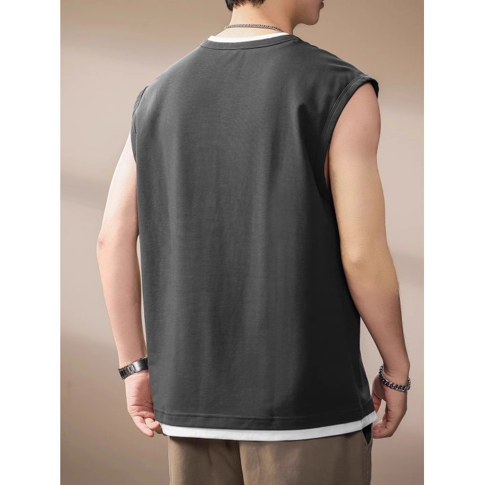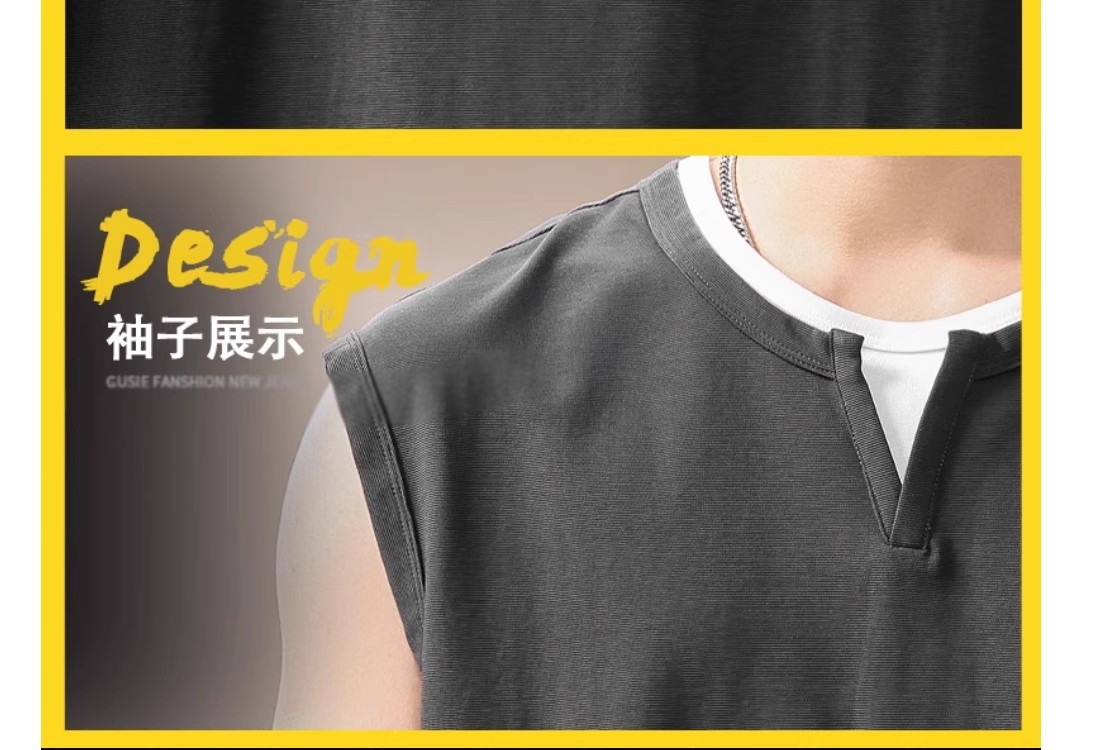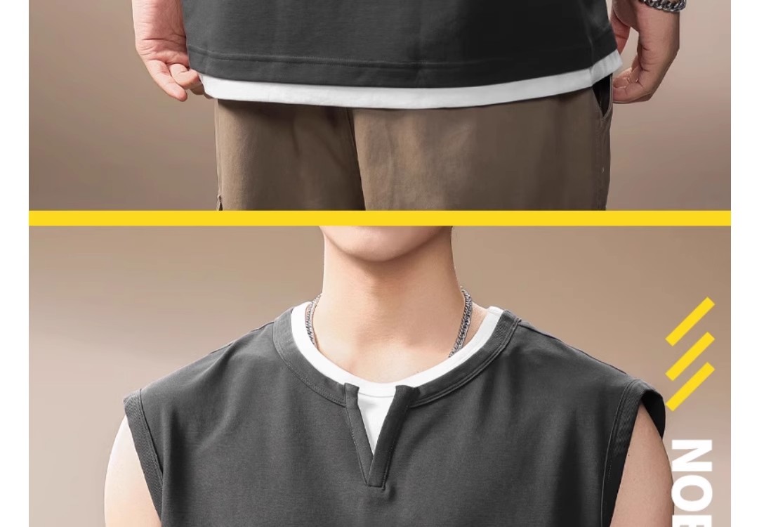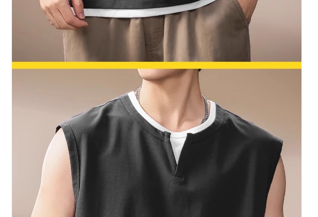 倉石一樹假兩件背心男夏季新款潮牌寬松健身運動無袖T恤休閒上衣